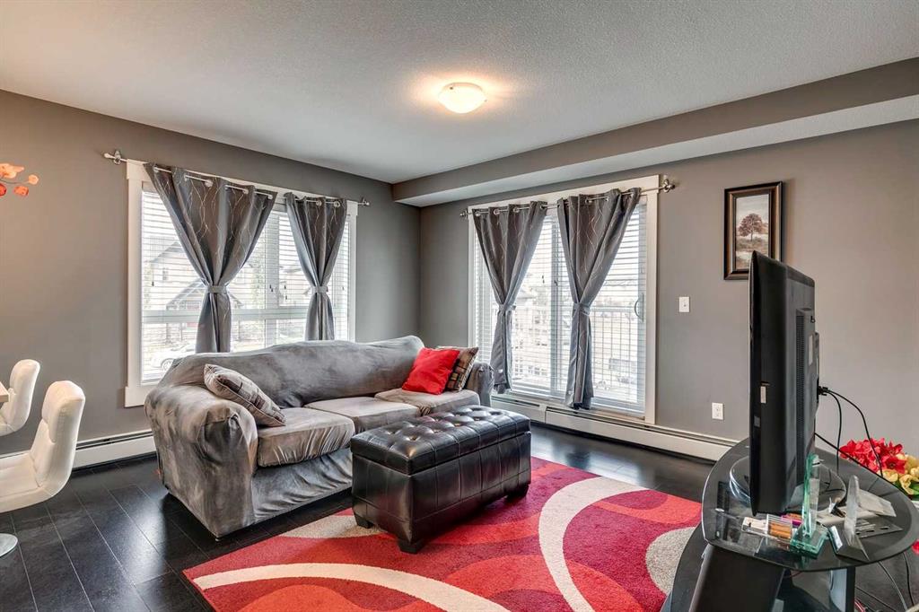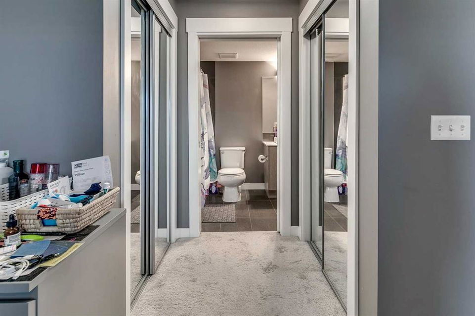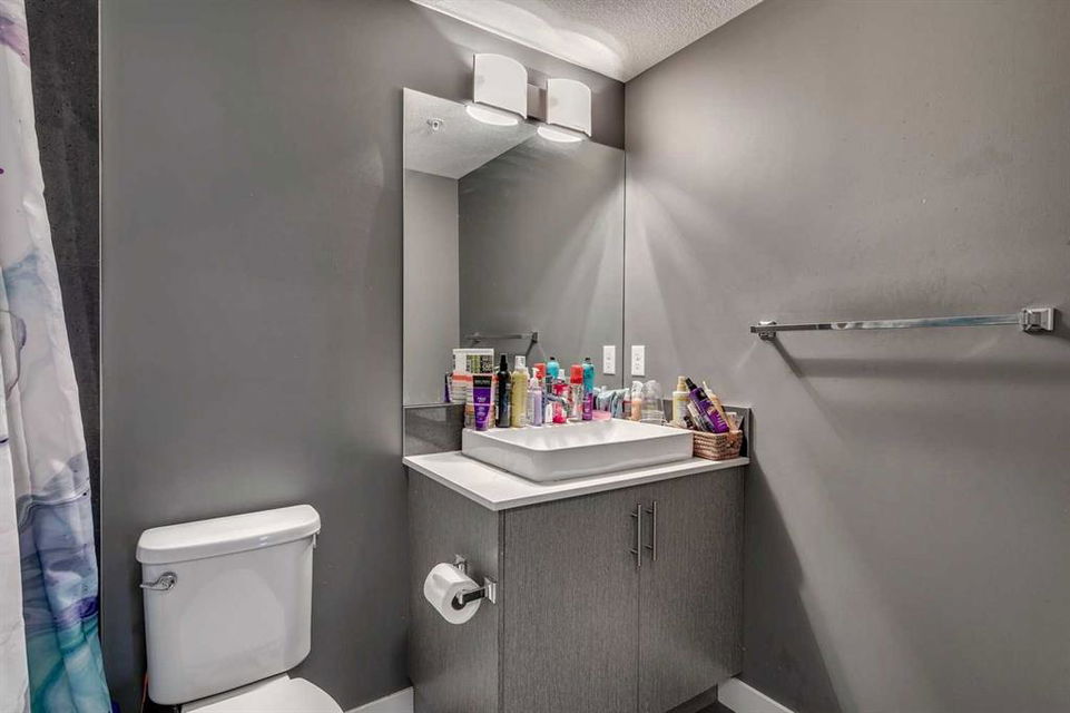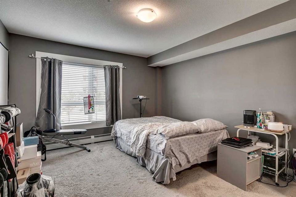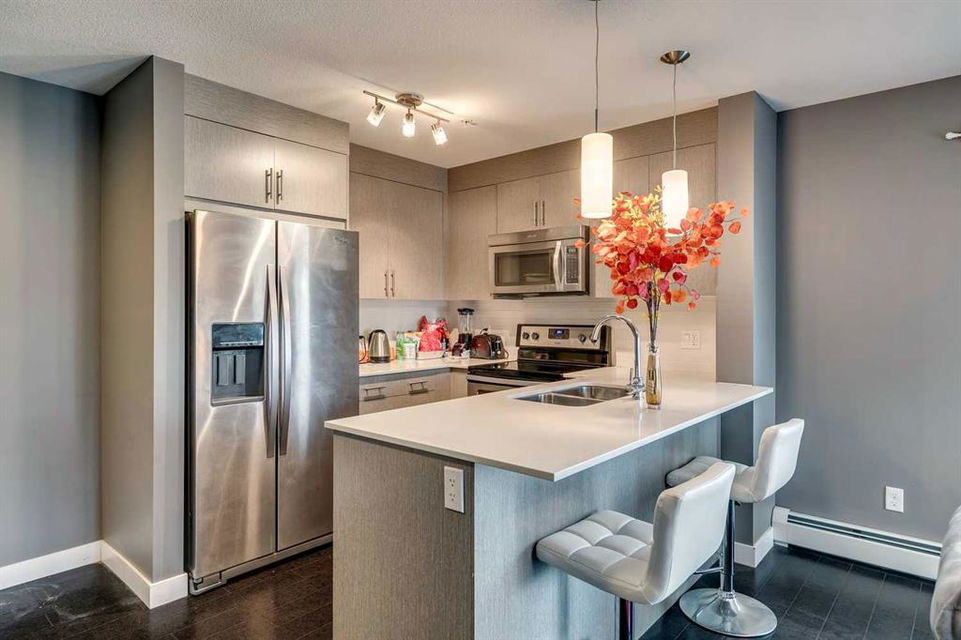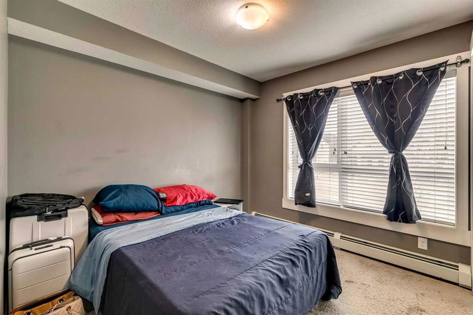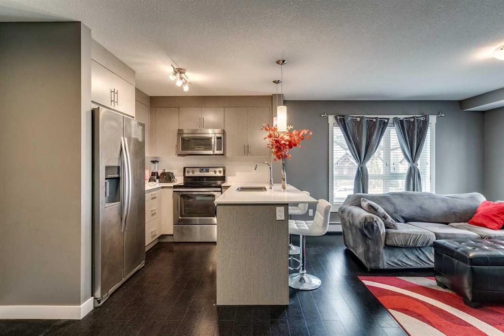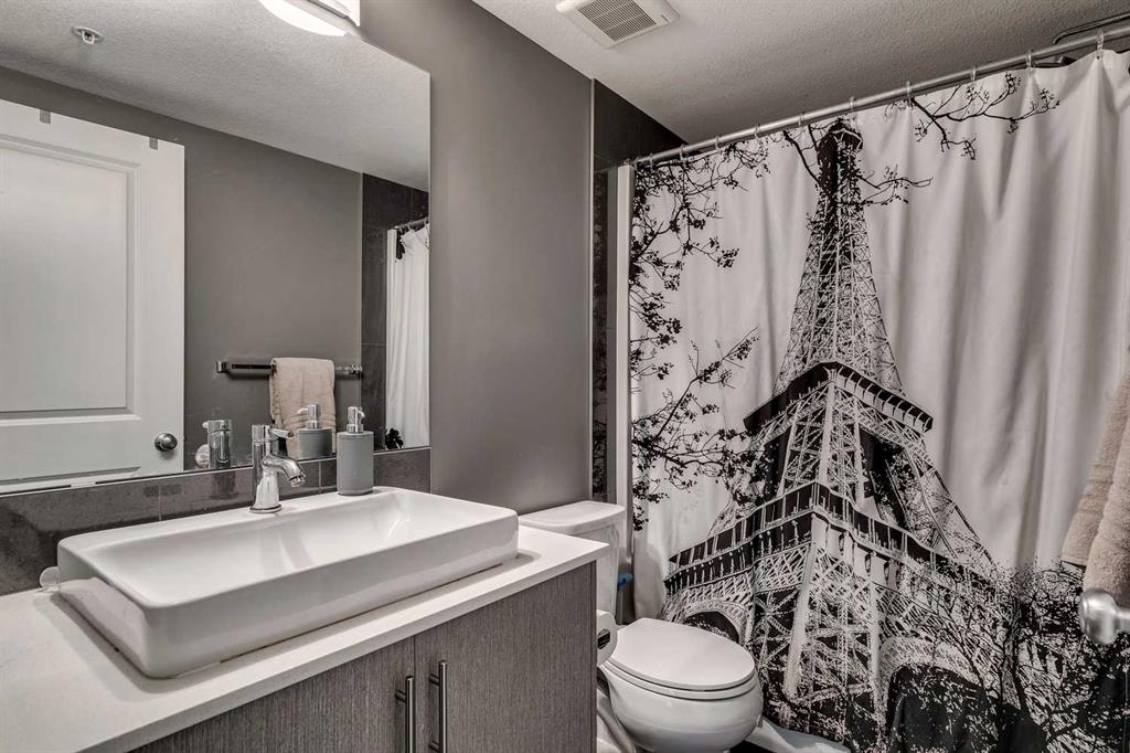 Orchard Sky – Skyview Ranch – #3202, 302 Skyview Ranch Drive NE: Situated on the 2nd FLOOR, this 855 sq ft CORNER UNIT features 2 bedrooms, 2 bathrooms and 2 TITLED parking stalls. This open floor plan includes cork floors throughout the foyer, kitchen, and living room and lots of windows for plenty of natural light. The bright kitchen has stainless steel appliances, a breakfast bar with seating for 2 and a dining area that opens to the living room providing access to the balcony; the primary bedroom has a walk-through closet and 4 pc ensuite with tile floors; a 2nd bedroom and 4 pc main bathroom complete this unit. The entry includes a mirrored closet, built-in desk space, and a stacked laundry room with space for storage. Included with this unit are 2 titled parking spots (one in the underground parkade; the second stall is located on the surface parking lot) and a storage unit in front of the unground parking stall. This a wonderful opportunity to own in popular Orchard Sky! Great location near green space, playgrounds, schools, restaurants, and transit with quick access to Deerfoot Trail (QEII), Stoney Trail, Country Hills Blvd, and a short commute to the airport. Call for more info!