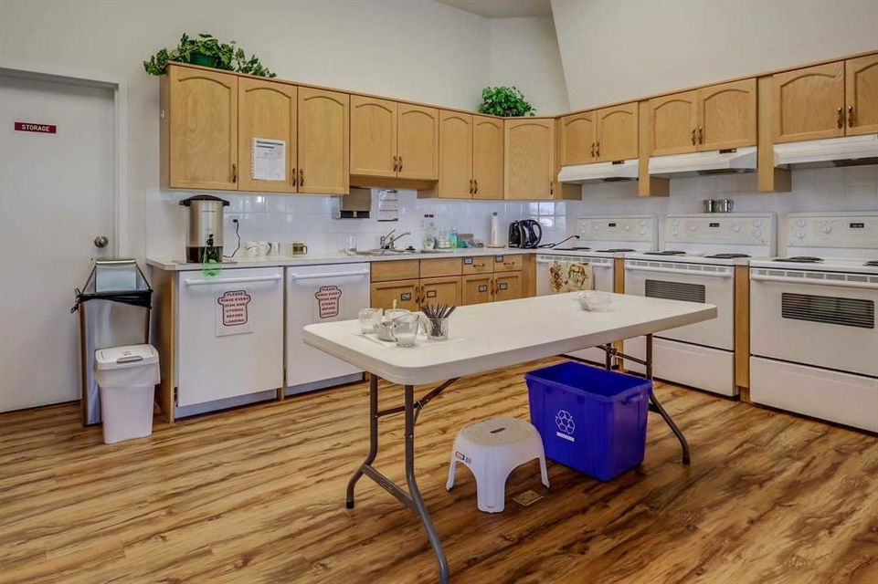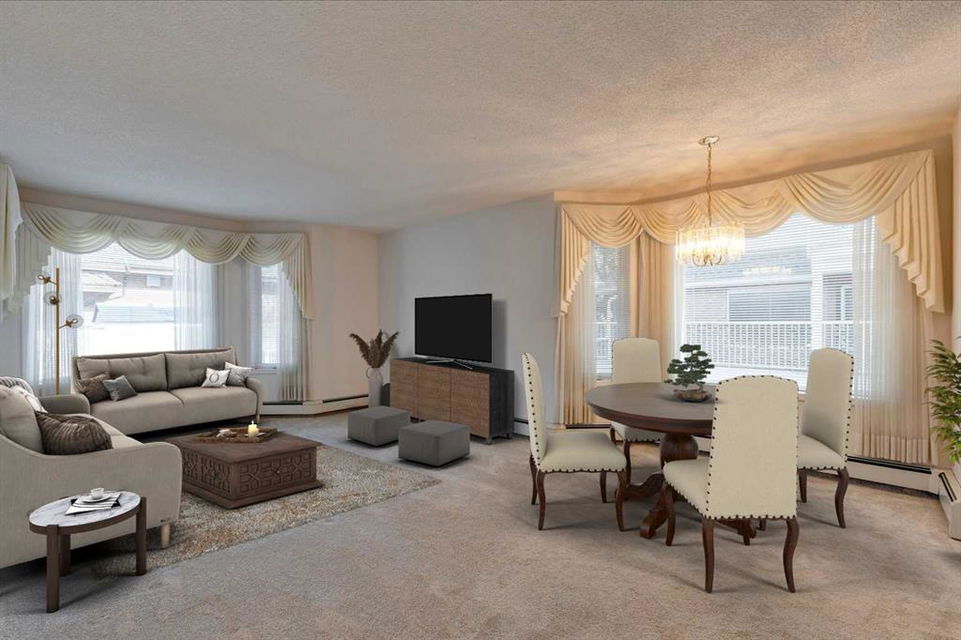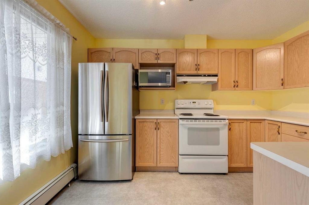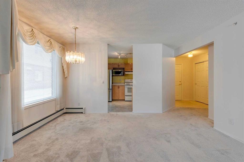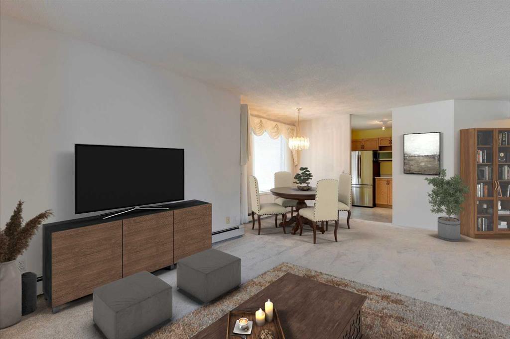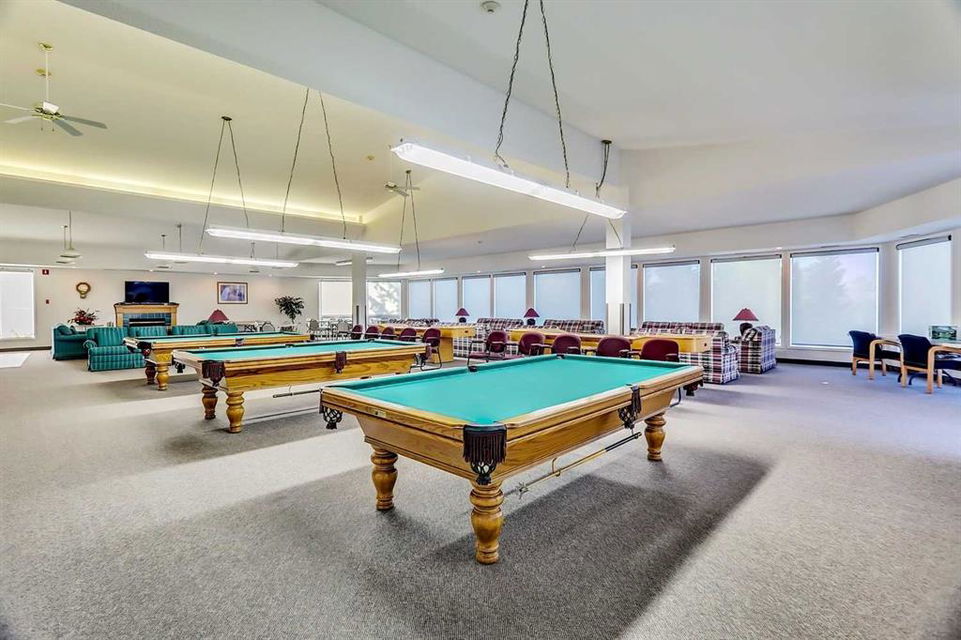 Dreamview Village – Hawkwood – #3213, 3000 Hawksbrow Point NW: This 937 sq ft end-unit is located in sought-after Dreamview Village. The 2 bedroom + 2 bathroom unit has new carpet throughout and includes one titled underground parking stall. This bright, open plan features a kitchen with a dishwasher, microwave, refrigerator, electric stove, and hood fan; an open dining area and living room with access to the extra-large 500+ sq ft private patio with BBQ gas hook up. The large primary bedroom has two closets and a spacious 3 pc ensuite with a glass shower; a 2nd bedroom, a 4 pc main bathroom, and a laundry room with a full-sized washer and dryer and storage complete this unit. Enjoy the views of a beautiful pond with a fountain on your way over to the clubhouse. Dreamview Village is a 55+ building with endless amenities including a guest suite, woodworking shop, library, billiards, clubhouse kitchen and patio, visitor parking & much more! Condo fees include heat, electricity, and water. Located in Hawkwood, conveniently located close to walking paths, easy access to Stoney Trail, John Laurie Blvd, and Crowchild Trail, and just minutes to the Crowfoot LRT station and Dalhouise LRT station. The building and the unit are well-maintained.and easy to show with quick possession available. Some photos have been virtually staged. Call for more info!