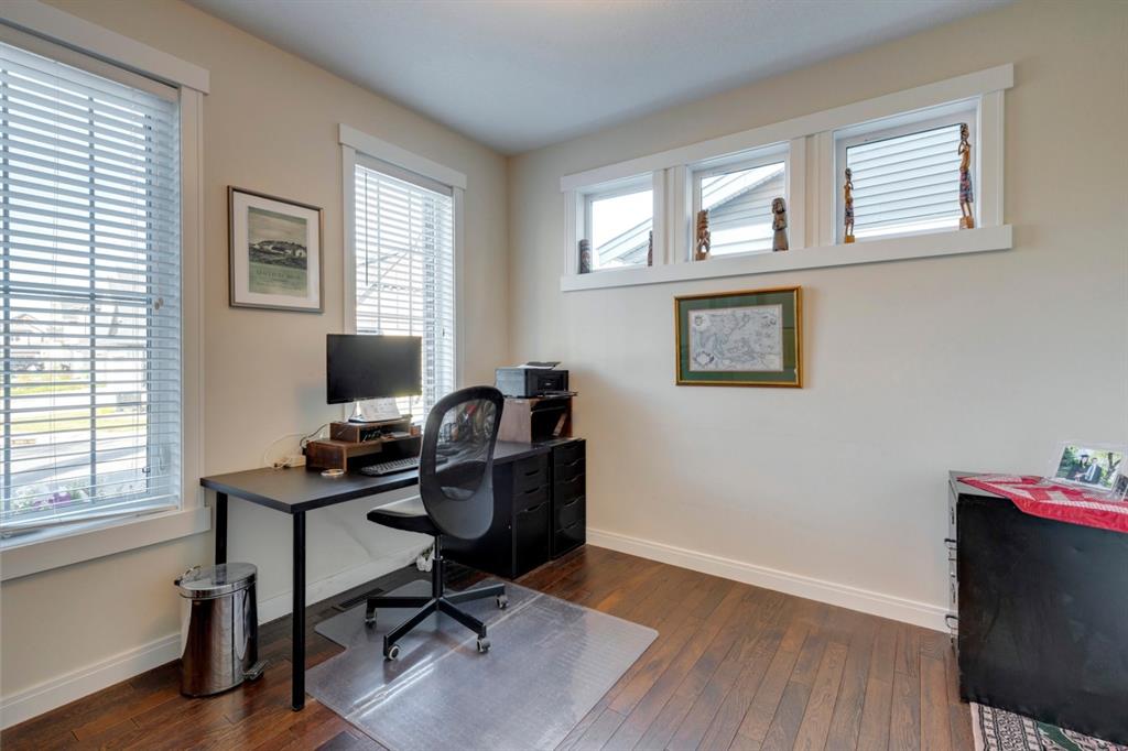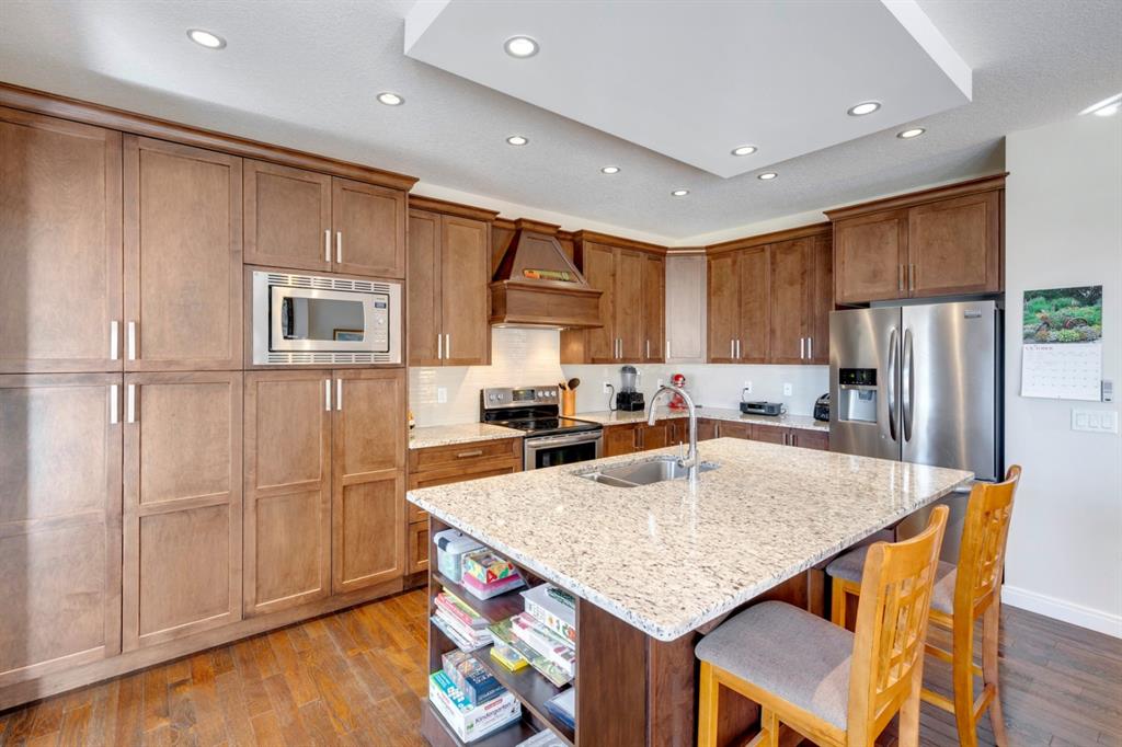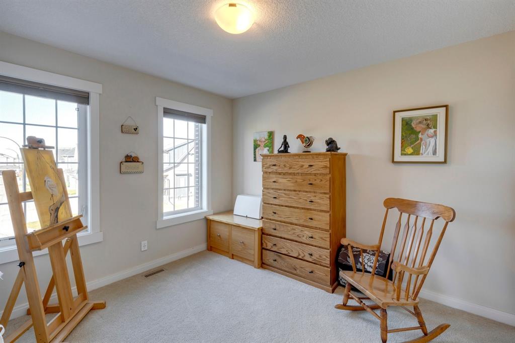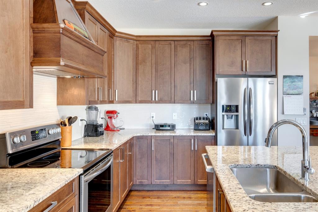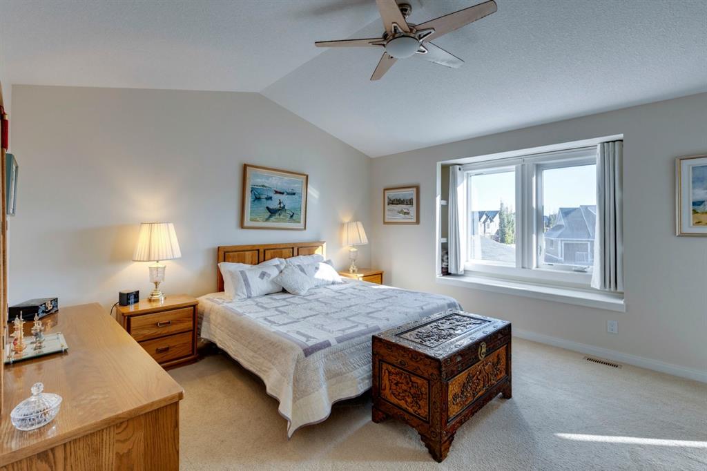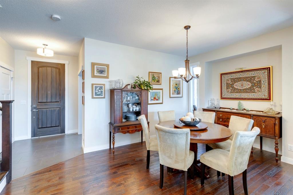Coopers Crossing – 322 Cooperstown Common SW: Welcome to this fully developed 2,076 sq ft home in the sought after community of Coopers Crossing. This well-maintained home features 3 + 1 bedrooms, 2 full bathrooms, 2 half bathrooms, a fully developed lower level & detached double car garage with a paved back lane. The open floor plan features an upgraded kitchen with stainless steel appliances, built-in pantry, island with seating for 3; living room with gas fireplace and patio doors to the backyard/deck; dining room; spacious and bright den; 2-piece powder room and back door/mudroom with closet, hooks, bench and additional laundry hook ups. The upper level has a primary bedroom with vaulted ceilings, upgraded 5 pc ensuite and walk-in closet; two additional bedrooms; bonus room with glass doors to upper deck and 4-piece main bath. The developed lower level has a 4th bedroom, family room, 2-piece bathroom with laundry and workshop which can be converted to a 5th bedroom or additional living space. Great family home with low maintenance landscaping, turf throughout, backyard with garden oasis and 2-tiered deck; west-facing front porch with breathtaking front garden. This immaculate home shows pride of ownership, quality of construction and is steps away from parks, playgrounds, schools and a short drive to Calgary. Call for more info!