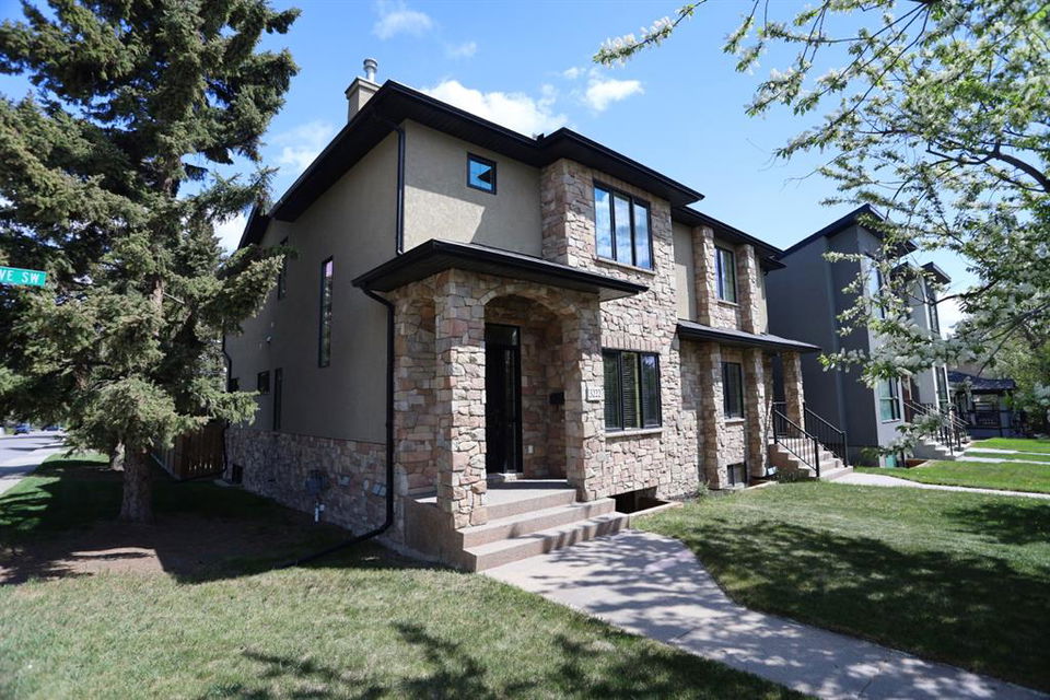 In the exclusive inner city community of Shaganappi is where you’ll find the home of your dreams in this beautifully appointed two storey in this prime location within walking distance to Westbrook LRT & shopping. This elegant semi-detached home enjoys sleek flat ceilings & hardwood floors throughout, 3 bedrooms + den, stunning designer kitchen & private backyard complete with deck, patio & detached 2 car garage. Stylishly decorated & loaded with upgrades, you will love the expansive flow & 9ft ceilings of the main floor, with its spacious & inviting living room with gas fireplace, open concept dining area & fully-loaded chef’s kitchen with 2-toned cabinetry & granite counters, walk-in pantry & upgraded KitchenAid appliances. Head upstairs to 3 perfectly lovely bedrooms highlighted by the South-facing master retreat with recessed ceilings, walk-in closet & enticing jetted tub ensuite with heated tile floors, granite-topped double vanities & separate shower. A family bath & laundry room with LG steam washer & dryer – both with granite counters, round out the 2nd floor. The unspoiled lower level offers tremendous potential for future development – with roughed-in bathroom plumbing & great space for another bedroom & rec room. Additional features include the main floor home office with French door, built-in speakers & Hunter Douglas blinds, built-in bench in the foyer & desk in the kitchen, granite counters in the bathrooms & there’s a sink in the mudroom which makes wiping your puppy’s paws or washing up after gardening so much easier. A truly outstanding home on this beautifully landscaped corner lot with mature flowering trees, ideally close to area schools & amenities, neighbourhood parks, Shaganappi Point golf course & quick easy access to Bow Trail & 17th Avenue.