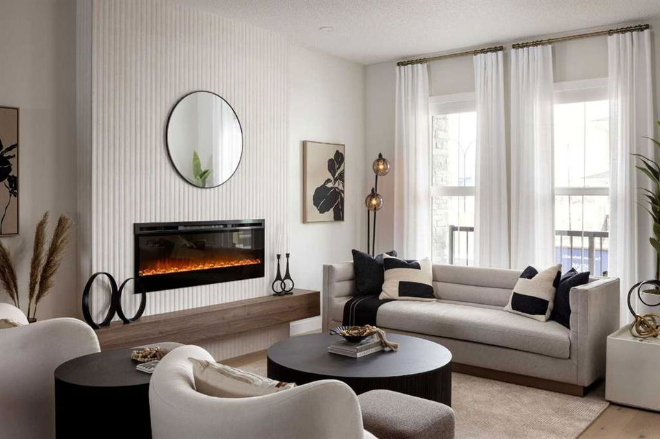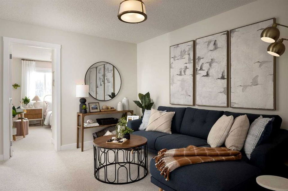 Welcome to the Cascade, a thoughtfully designed duplex built by Shane Homes in the SW community of Sirocco. Currently under construction, this home features 3 bedrooms and 2.5 bathrooms with a functional layout designed for modern living. The open-concept main floor includes a spacious kitchen with a walk-in pantry and central island, flowing into the dining and living areas, ideal for everyday use and entertaining. A side entry and basement rough-ins provide flexibility for potential future development. Upstairs offers three well-sized bedrooms, a primary bedroom with walk-in closet and full ensuite, convenient upper-floor laundry, and a flex room that adds valuable additional living space. Photos are representative of a finished home and are for illustrative purposes only.