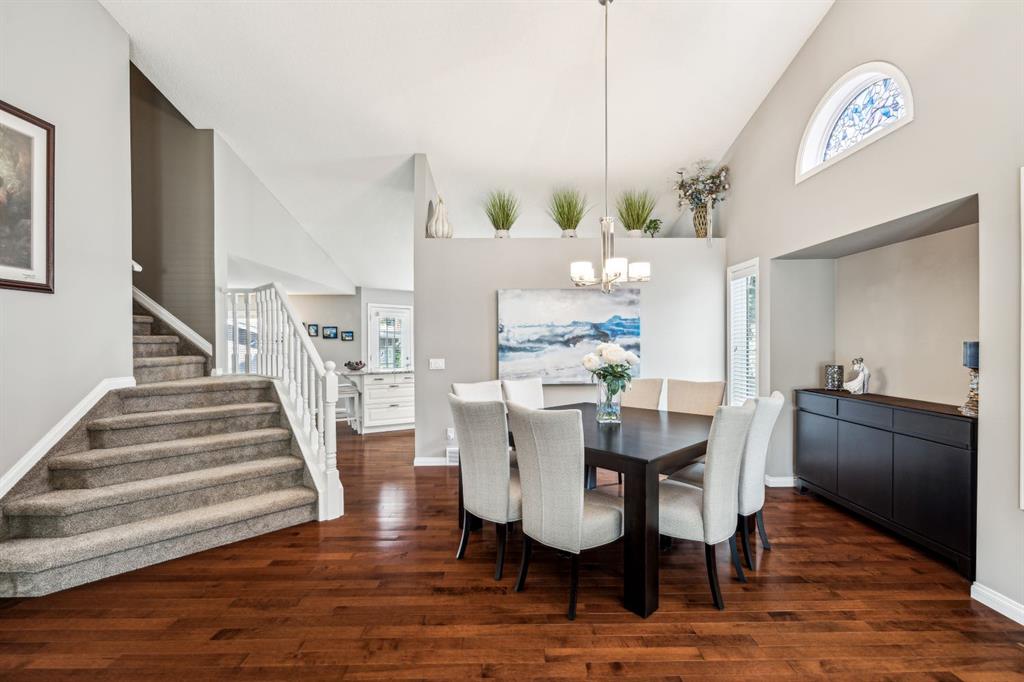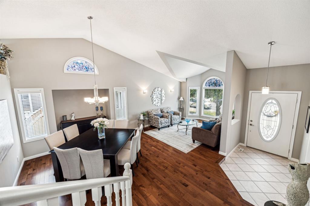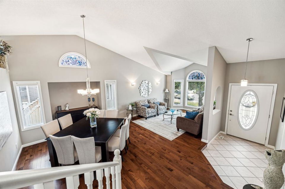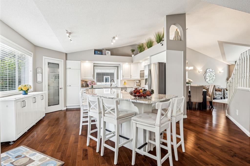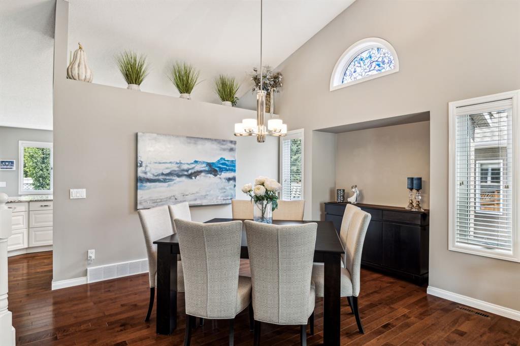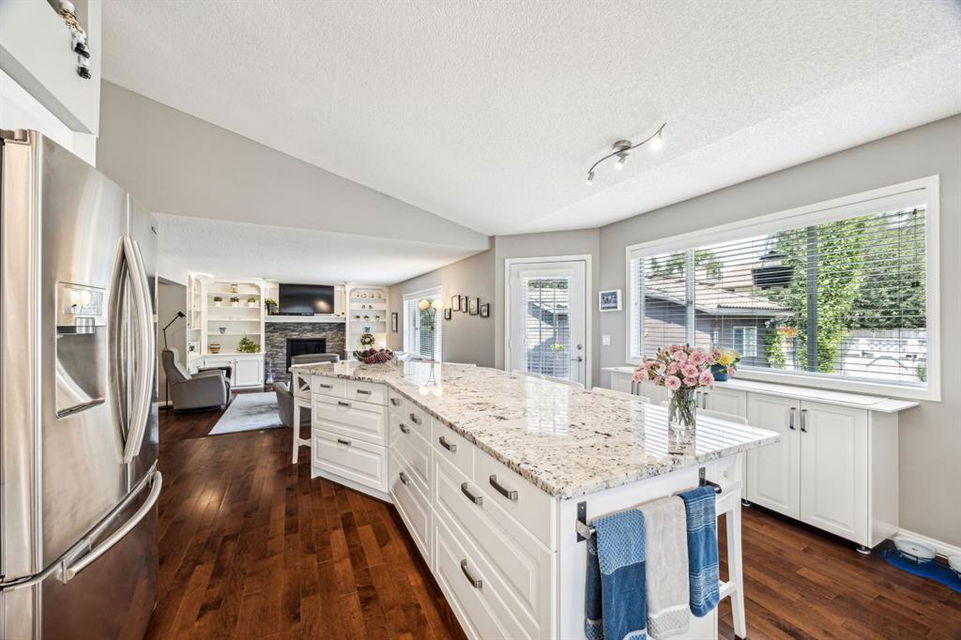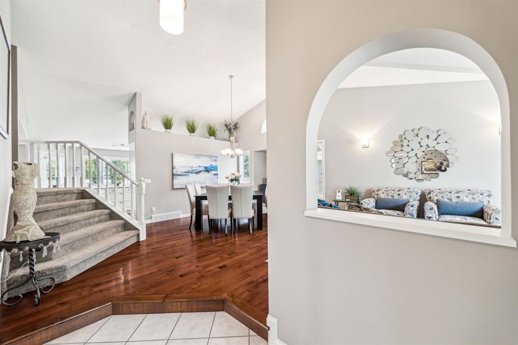 Nestled on a peaceful, tree-lined street, this original owner’s 5-bedroom, 3.5-bath home located in coveted Hawkwood Estates awaits to welcome you with its timeless charm and elegance. Upon entering the front door, you are welcomed with soaring vaulted ceilings that stretch above beautiful hardwood floors. Granite countertops shimmer in the kitchen, centered with an expansive island with room for the whole family, framed by stainless steel appliances, built-ins and pantry. Off the kitchen, a sleek fireplace casts a cozy glow over the open living spaces. Imagine evenings spent in the inviting dining room, or cozy family moments in the heart of the home, where style meets comfort at every turn. The kitchen includes a generously sized eating area and the main floor is completed with fourth bedroom and essential mudroom. Ascend up the open riser staircase onto the second floor, discovering an oasis of relaxation. The primary bedroom is a retreat of its own, with a spacious walk-in closet including custom shelving, an en-suite with custom cabinetry and an expansive shower that beckons you to unwind. The double sinks and quartz countertops add a touch of luxury to your morning routine. Two additional bedrooms and a 4-piece bath complete this floor. Downstairs, a large rec room invites endless possibilities and a fifth bedroom offers privacy for guests. The lower level features a 3-piece bath, multiple storage areas and an oversized mechanical room with space for your own workshop. Last but not least, the fully landscaped yard and poured concrete patio create an incredible space for outdoor living and entertaining, with minimal maintenance. The oversize double front drive garage and an oversized 1.5 car detached garage provide indoor parking for three vehicles plus room for recreational equipment. The shed provides plenty of storage room for all of your yard tools. This home combines thoughtful design with practical convenience and exudes pride of ownership. The house was built to high standards including copper plumbing and has been upgraded extensively. Make this home your reality today.