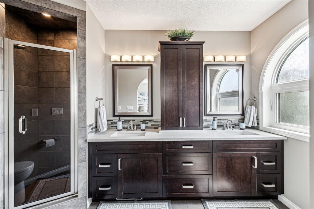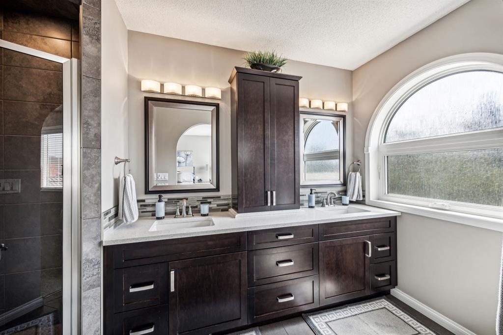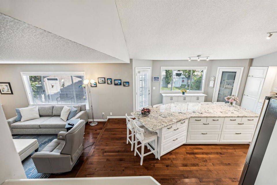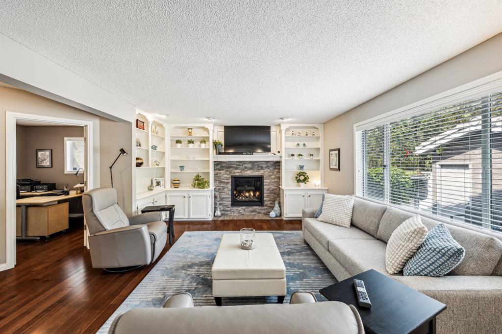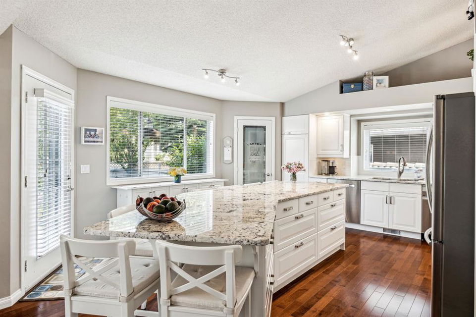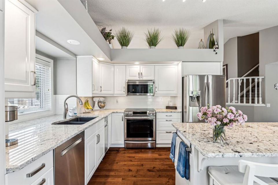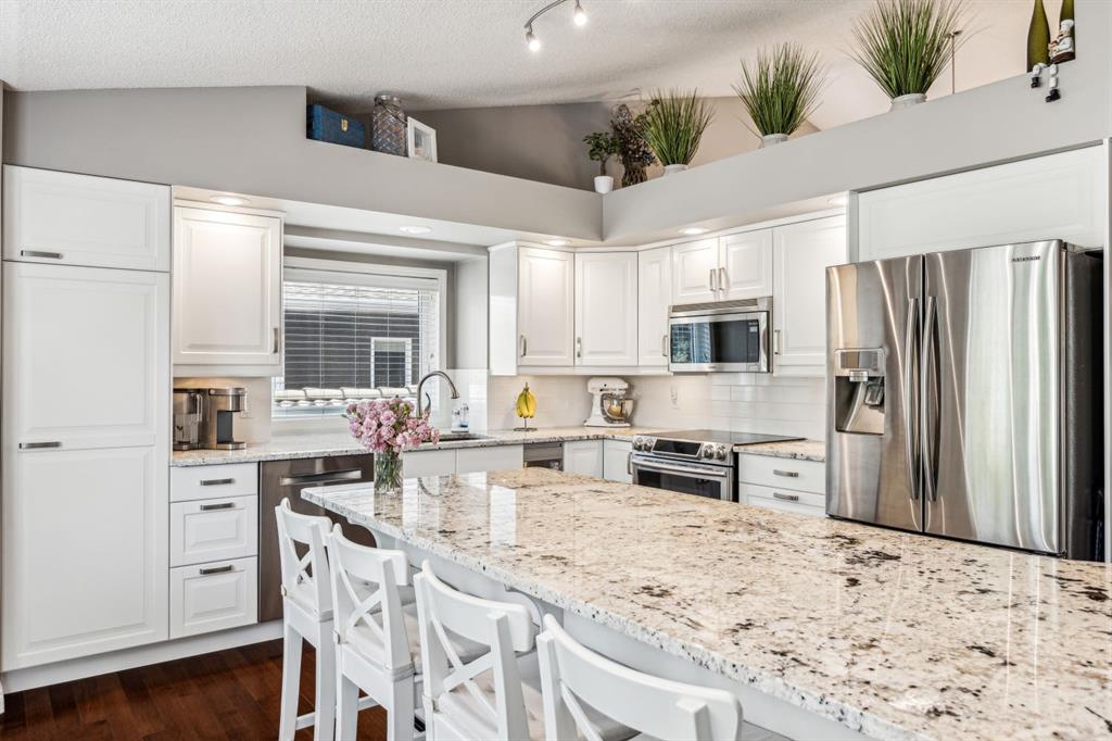 Nestled on a peaceful, tree-lined street, this original owner’s 5-bedroom, 3.5-bath home located in coveted Hawkwood Estates awaits to welcome you with its timeless charm and elegance. Upon entering the front door, you are welcomed with soaring vaulted ceilings that stretch above beautiful hardwood floors. Granite countertops shimmer in the kitchen, centered with an expansive island with room for the whole family, framed by stainless steel appliances, built-ins and pantry. Off the kitchen, a sleek fireplace casts a cozy glow over the open living spaces. Imagine evenings spent in the inviting dining room, or cozy family moments in the heart of the home, where style meets comfort at every turn. The kitchen includes a generously sized eating area and the main floor is completed with fourth bedroom and essential mudroom. Ascend up the open riser staircase onto the second floor, discovering an oasis of relaxation. The primary bedroom is a retreat of its own, with a spacious walk-in closet including custom shelving, an en-suite with custom cabinetry and an expansive shower that beckons you to unwind. The double sinks and quartz countertops add a touch of luxury to your morning routine. Two additional bedrooms and a 4-piece bath complete this floor. Downstairs, a large rec room invites endless possibilities and a fifth bedroom offers privacy for guests. The lower level features a 3-piece bath, multiple storage areas and an oversized mechanical room with space for your own workshop. Last but not least, the fully landscaped yard and poured concrete patio create an incredible space for outdoor living and entertaining, with minimal maintenance. The oversize double front drive garage and an oversized 1.5 car detached garage provide indoor parking for three vehicles plus room for recreational equipment. The shed provides plenty of storage room for all of your yard tools. This home combines thoughtful design with practical convenience and exudes pride of ownership. The house was built to high standards including copper plumbing and has been upgraded extensively. Make this home your reality today.