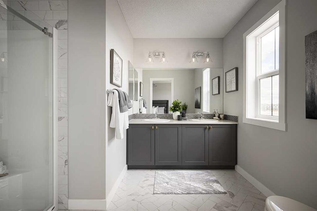 Pre-Construction Opportunity in Cobblestone Creek – Aries II by Shane Homes! The Aries II is a thoughtfully designed home offering both style and functionality. A full-width veranda welcomes you into the foyer with a coat closet. The bright front family room features large windows, while the rear L-shaped kitchen boasts a spacious island and pantry. A mudroom with a coat closet and half bath completes the main floor. Upstairs, enjoy the convenience of a second-floor laundry. Two secondary bedrooms with walk-in closets are separated by a 3-piece bath with a linen closet. The owner’s bedroom includes a walk-in closet, a private 3-piece ensuite, and a cozy sitting area. Photos are representative.