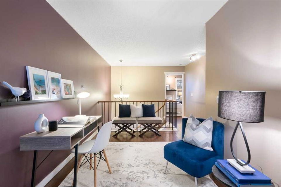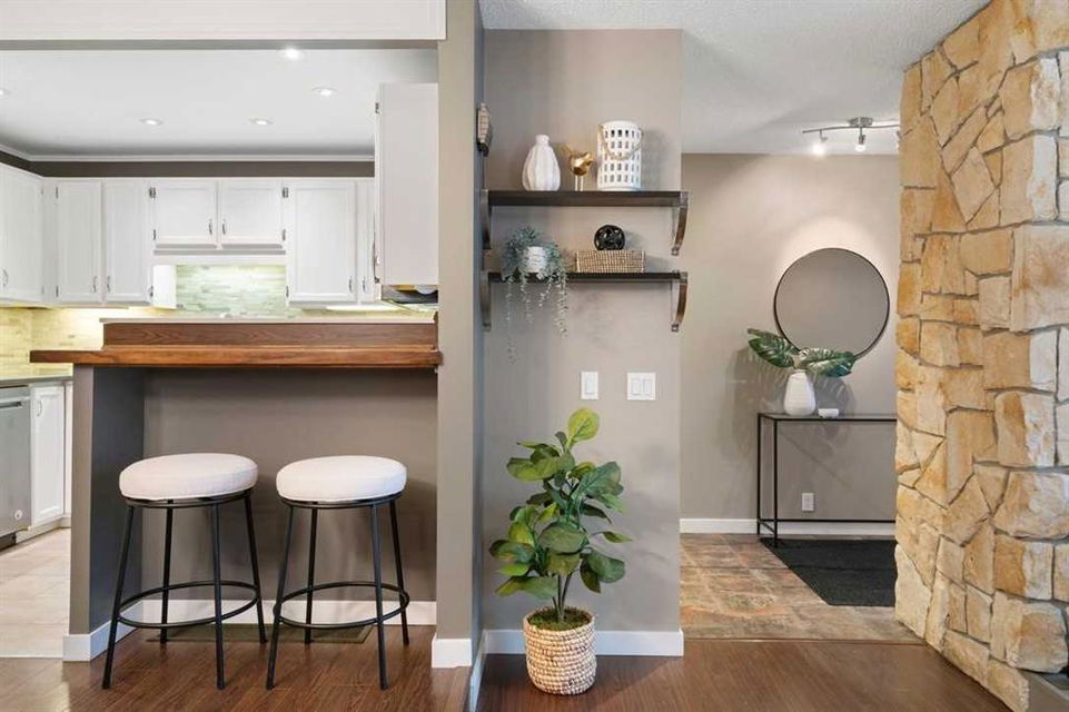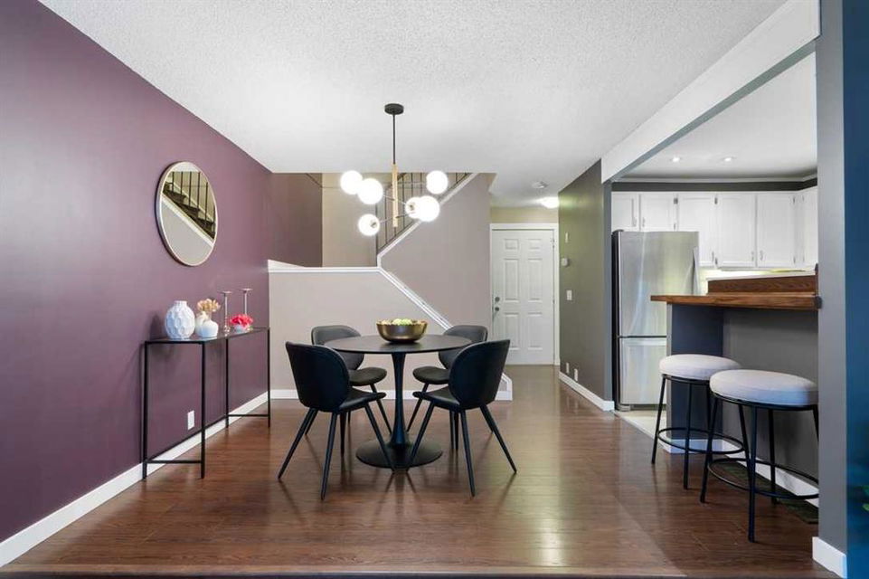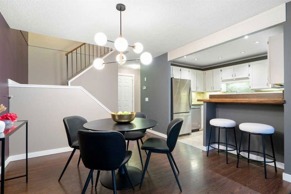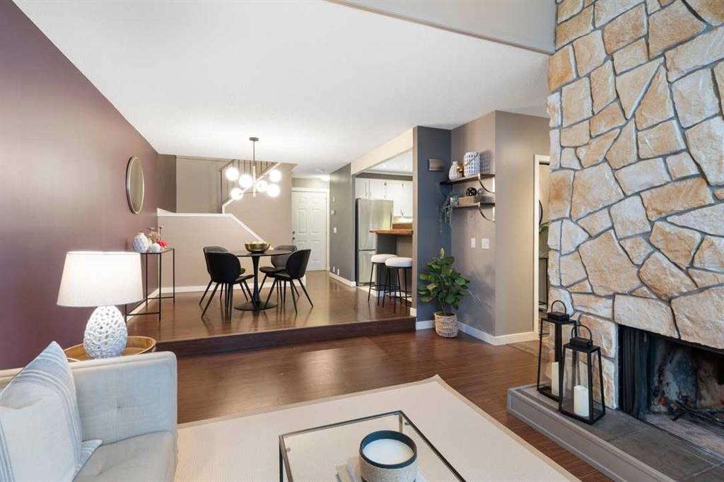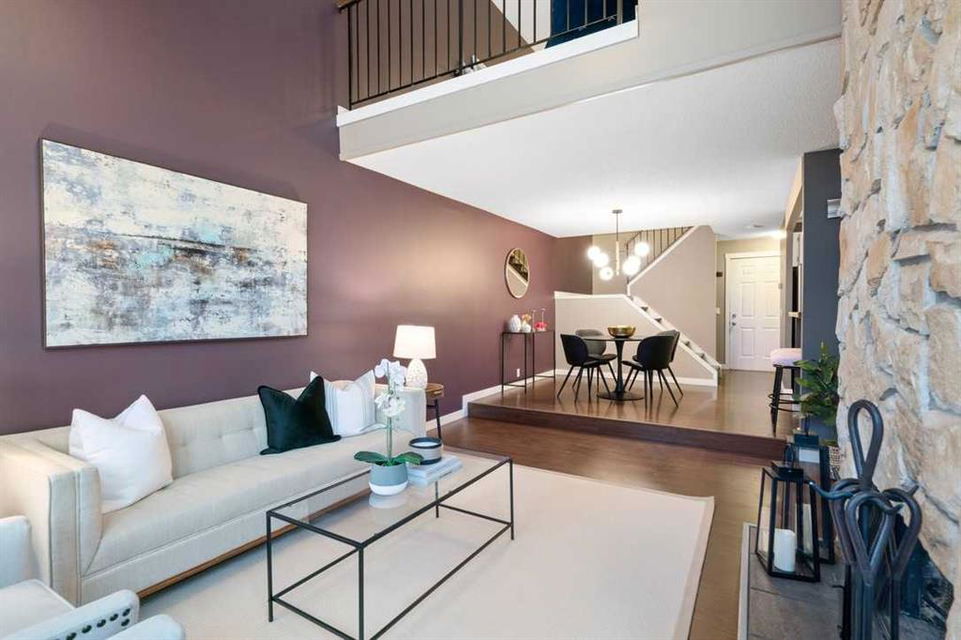 * Don’t miss this stunning townhouse at this weekend’s OPEN HOUSE—Saturday, March 29 & Sunday, March 30, from 2-4 PM! * Welcome to Unit 36 at Berkshire Village – Beddington Heights’ hidden gem! This move-in-ready 2-bed, 2.5-bath townhouse is packed with upgrades and offers 1,353 sq ft of updated living across two bright levels near green spaces and major routes, at the end of a path with minimal foot traffic. Step inside from the fenced wood deck patio into a welcoming foyer with a double coat closet, setting the stage for the impressive area ahead. Vaulted ceilings soar as a wall of windows floods the open-concept main level with natural light, highlighting the beautiful laminate hardwood flooring. The spacious living room is centered around a striking floor-to-ceiling stone-faced wood-burning fireplace, creating a cozy yet sophisticated ambiance. From here, the layout flows effortlessly into the dining area, perfect for entertaining or enjoying everyday meals. Adjacent is the modern kitchen, where quartz countertops, a stone backsplash, stainless steel appliances, and a breakfast bar combine style and functionality —ideal for casual dining or engaging with guests while cooking. At the back, a discreet 2-piece powder room adds convenience, while direct access to the double garage makes unloading groceries easy and houses your vehicles. Ascending the staircase, the sunlit loft—open to below—creates a bright and airy retreat, adaptable as a home office, creative studio, or cozy reading nook. The primary bedroom is a true sanctuary, featuring mirrored wall-to-wall closets and a private 3-piece ensuite. Down the hall, the second bedroom is thoughtfully positioned for privacy and sits steps from the four-piece bathroom, where a deep soaker tub offers the perfect place to unwind. The fully finished broad-loomed lower level extends the living experience even further, featuring a generous recreation room—ideal for movie nights or a home gym, and the deep utility-laundry room combo keeps everything organized. Beyond the home, Centre Street and Deerfoot Trail offer quick 10-minute routes downtown or to the airport, with a bus stop just a short walk away. Daily conveniences, like restaurants, coffee shops, grocery stores, and banks, are just minutes from your door. Nestled by walking and biking trails, as well as parks and off-leash areas, make it a paradise for outdoor enthusiasts and pet owners. This home checks every box! Don’t miss out! Upgrades: Wi-Fi Garage Door Opener (2024), Hose Bib (2024), Window Coverings (2020), Living Room Windows (2019), Kitchen Appliances (2017), Bedroom Windows (2016), Garage Door (2015), Kitchen and Bathroom Renovations (2014), Furnace (2014), Paint (2014), Shingles (2014), Hardwood Laminate Flooring (2013)