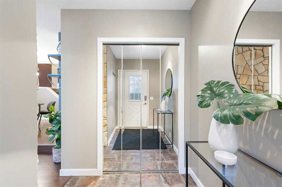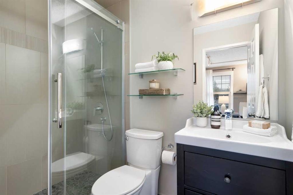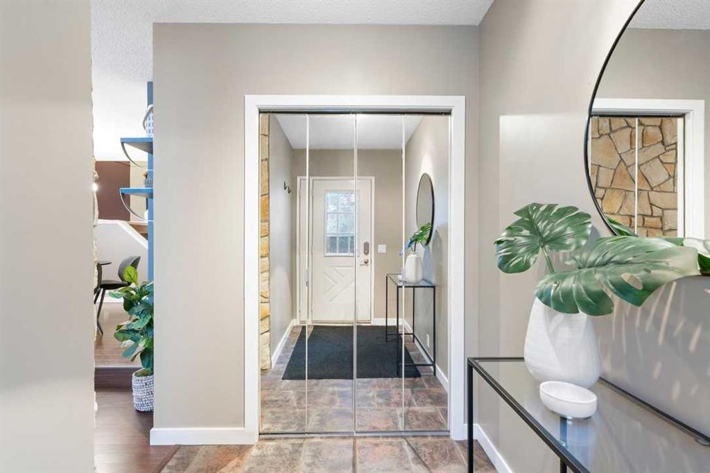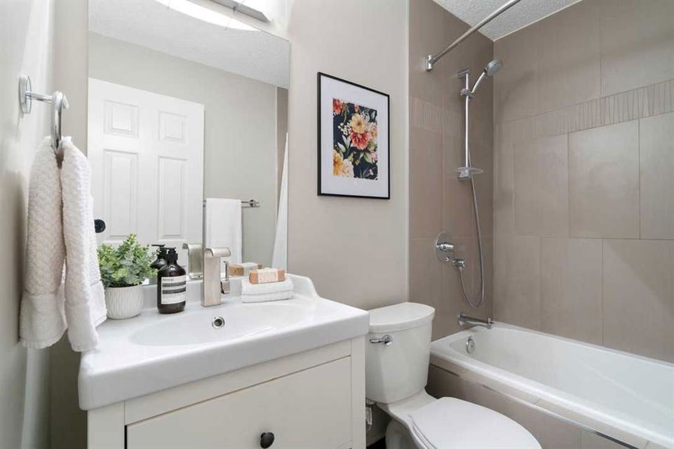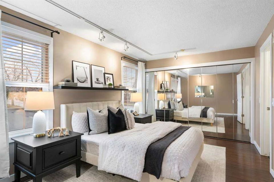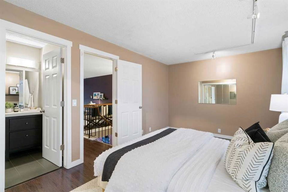 * Don’t miss this stunning townhouse at this weekend’s OPEN HOUSE—Saturday, March 29 & Sunday, March 30, from 2-4 PM! * Welcome to Unit 36 at Berkshire Village – Beddington Heights’ hidden gem! This move-in-ready 2-bed, 2.5-bath townhouse is packed with upgrades and offers 1,353 sq ft of updated living across two bright levels near green spaces and major routes, at the end of a path with minimal foot traffic. Step inside from the fenced wood deck patio into a welcoming foyer with a double coat closet, setting the stage for the impressive area ahead. Vaulted ceilings soar as a wall of windows floods the open-concept main level with natural light, highlighting the beautiful laminate hardwood flooring. The spacious living room is centered around a striking floor-to-ceiling stone-faced wood-burning fireplace, creating a cozy yet sophisticated ambiance. From here, the layout flows effortlessly into the dining area, perfect for entertaining or enjoying everyday meals. Adjacent is the modern kitchen, where quartz countertops, a stone backsplash, stainless steel appliances, and a breakfast bar combine style and functionality —ideal for casual dining or engaging with guests while cooking. At the back, a discreet 2-piece powder room adds convenience, while direct access to the double garage makes unloading groceries easy and houses your vehicles. Ascending the staircase, the sunlit loft—open to below—creates a bright and airy retreat, adaptable as a home office, creative studio, or cozy reading nook. The primary bedroom is a true sanctuary, featuring mirrored wall-to-wall closets and a private 3-piece ensuite. Down the hall, the second bedroom is thoughtfully positioned for privacy and sits steps from the four-piece bathroom, where a deep soaker tub offers the perfect place to unwind. The fully finished broad-loomed lower level extends the living experience even further, featuring a generous recreation room—ideal for movie nights or a home gym, and the deep utility-laundry room combo keeps everything organized. Beyond the home, Centre Street and Deerfoot Trail offer quick 10-minute routes downtown or to the airport, with a bus stop just a short walk away. Daily conveniences, like restaurants, coffee shops, grocery stores, and banks, are just minutes from your door. Nestled by walking and biking trails, as well as parks and off-leash areas, make it a paradise for outdoor enthusiasts and pet owners. This home checks every box! Don’t miss out! Upgrades: Wi-Fi Garage Door Opener (2024), Hose Bib (2024), Window Coverings (2020), Living Room Windows (2019), Kitchen Appliances (2017), Bedroom Windows (2016), Garage Door (2015), Kitchen and Bathroom Renovations (2014), Furnace (2014), Paint (2014), Shingles (2014), Hardwood Laminate Flooring (2013)