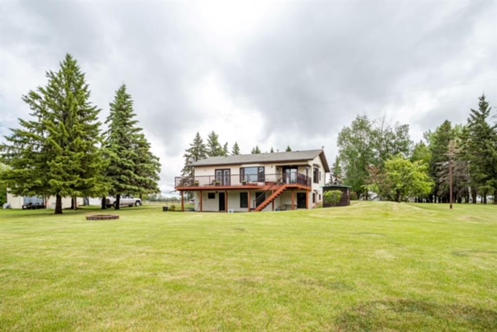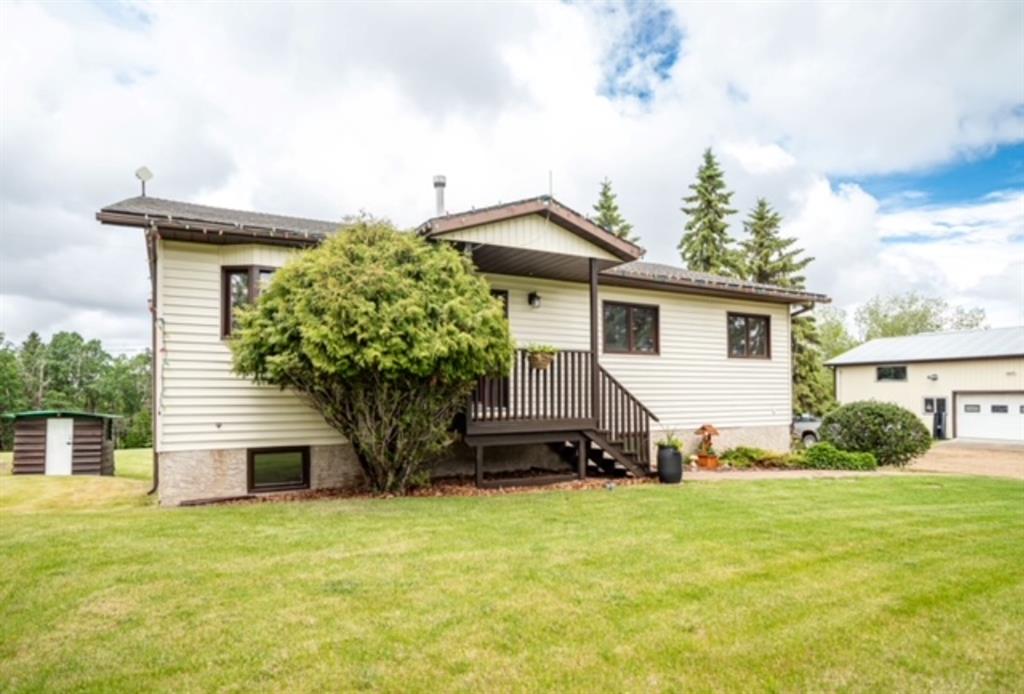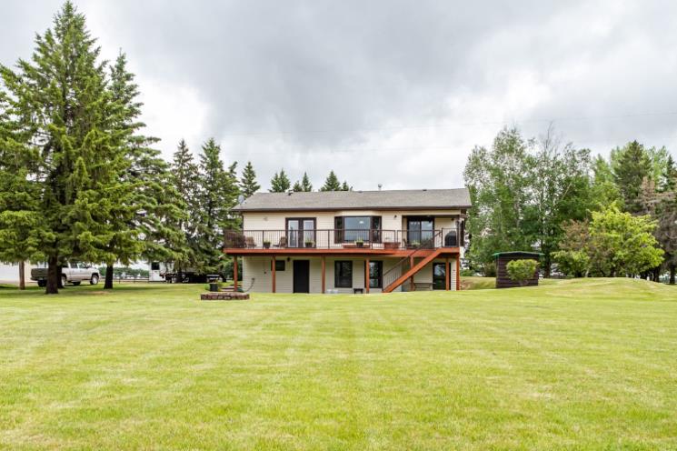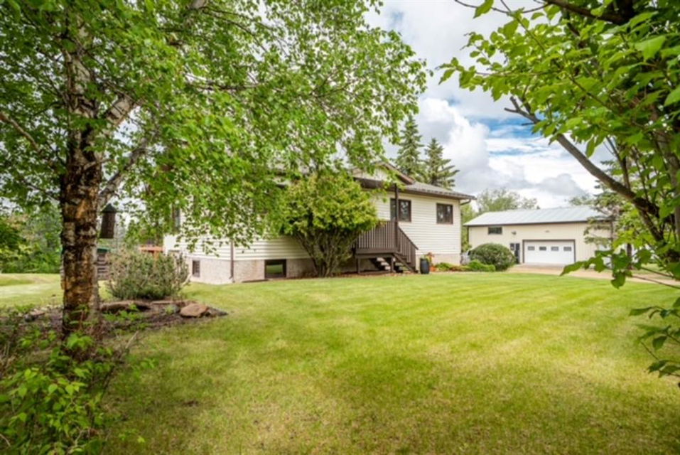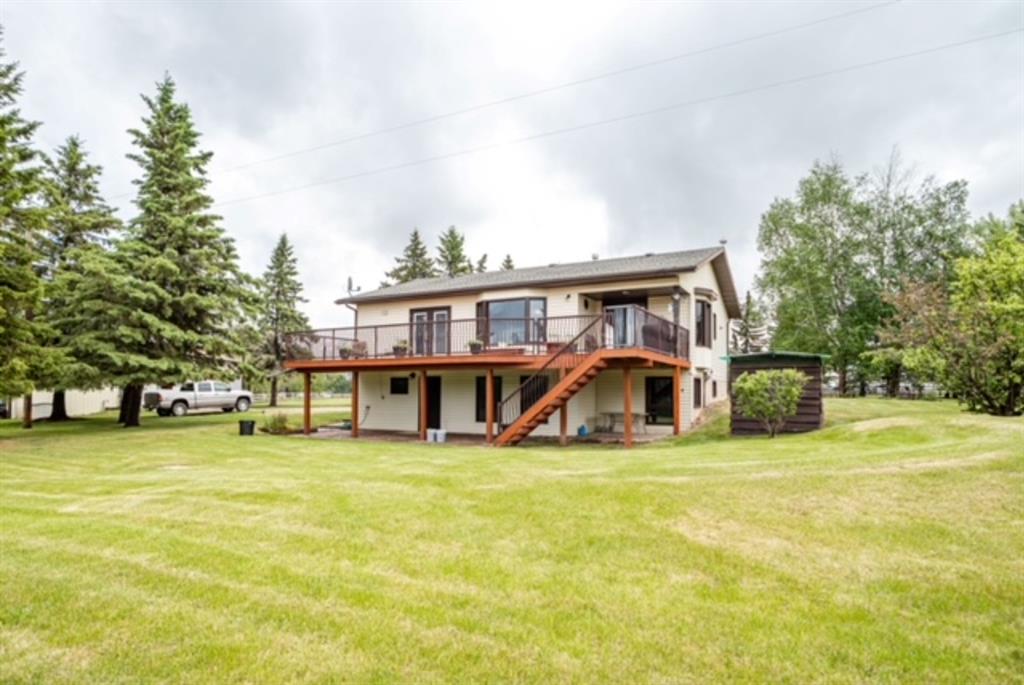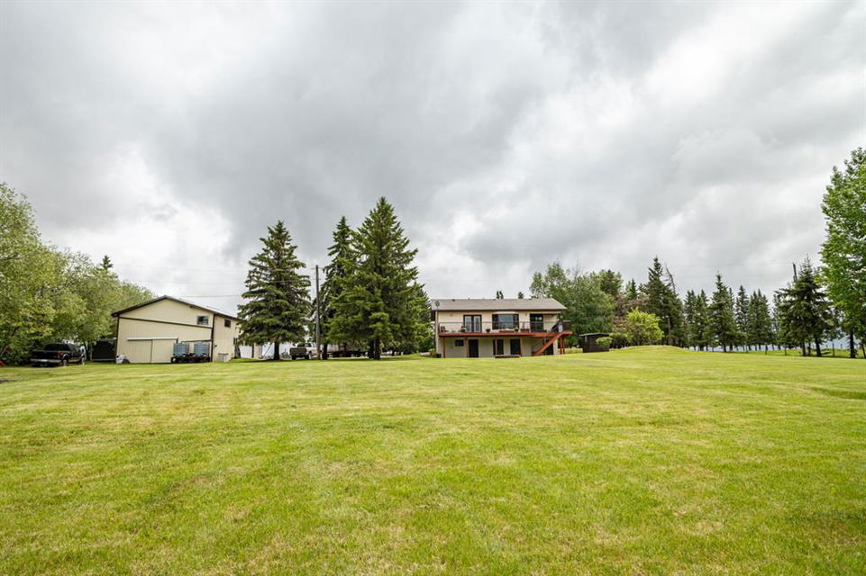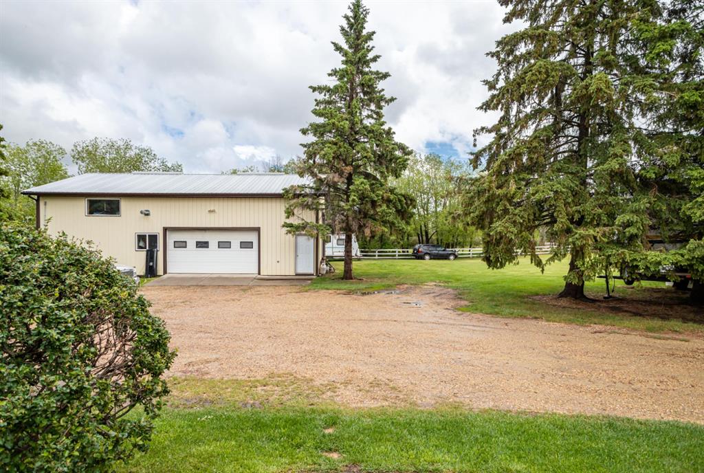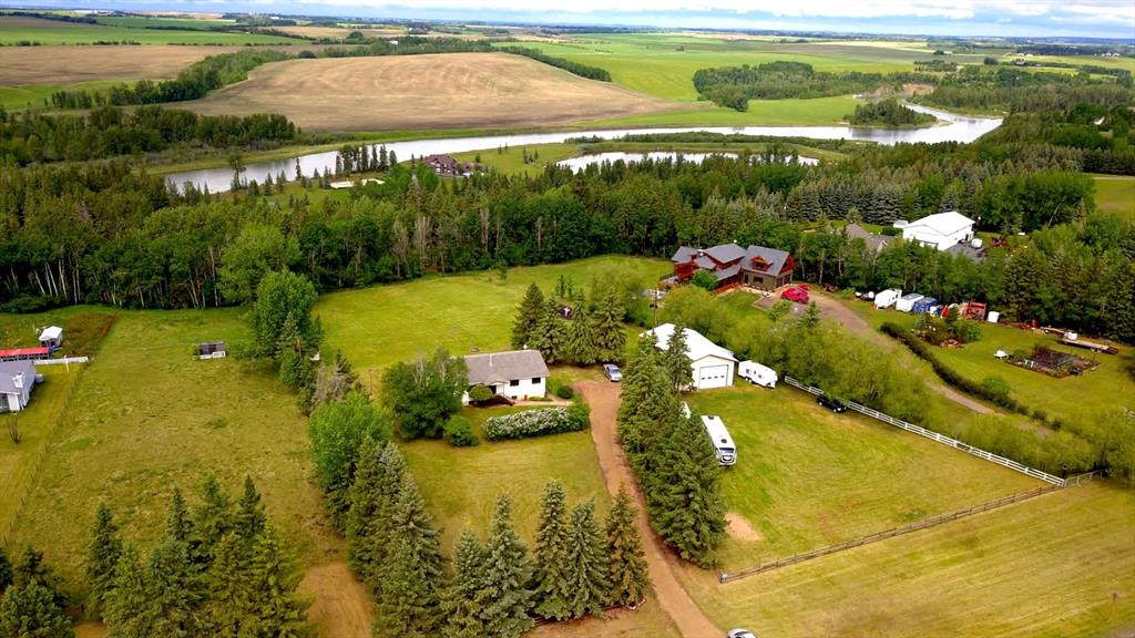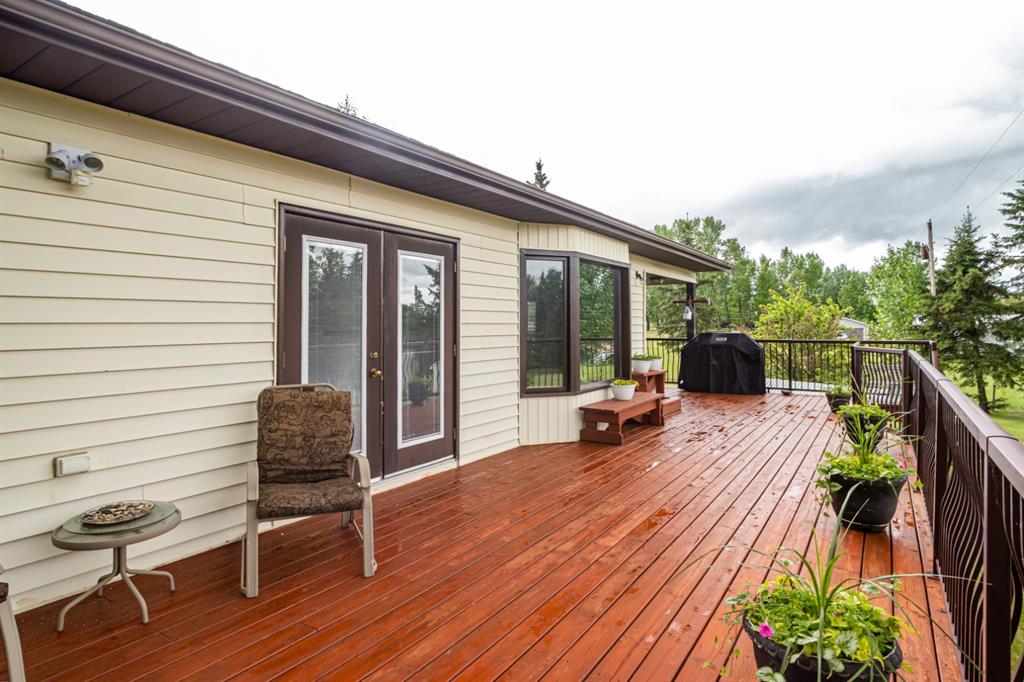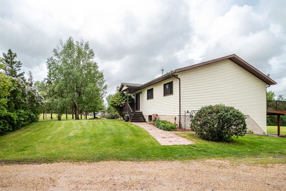 A warm and cozy place to call home! Literally 8 minutes to Red Deer, quick easy and convenient location. This big spacious BUNGALOW has 5 large bedrooms and 2 full bathrooms. Open that front door and you’ll enjoy the privacy and mature trees all around you! Backing on to the Red Deer river! Spacious front covered entrance leads into the kitchen, dining and living room, lots of bayed windows adds additional space. A massive eat up peninsula and a large dining makes for a great space to entertain. There are double sliding glass doors off the dining that leads to a large deck overlooking the back yard. three bedrooms on this level as well MAIN FLOOR LAUNDRY (in front entrance area) The master bedroom has a cheater door to a 5 piece bathroom, as well his/her closets, ceiling fan, and double doors to the large back deck! The FULLY DEVELOPED BASEMENT features two more large bedrooms, a family room, a three piece bathroom with SAUNA! There is a small room with no window currently used as a craft room! Brand NEW septic tank, less than a year old, NEW hot water tank, less than a year old. The detached garage is massive, you’ll admire the space 35X40 HEATED with a small barn attached to the back end (north) There is a large storage room above the garage that would also be ideal for an office or guest house. This home wont last long… LOCATION~LOCATION~ LOCATION
