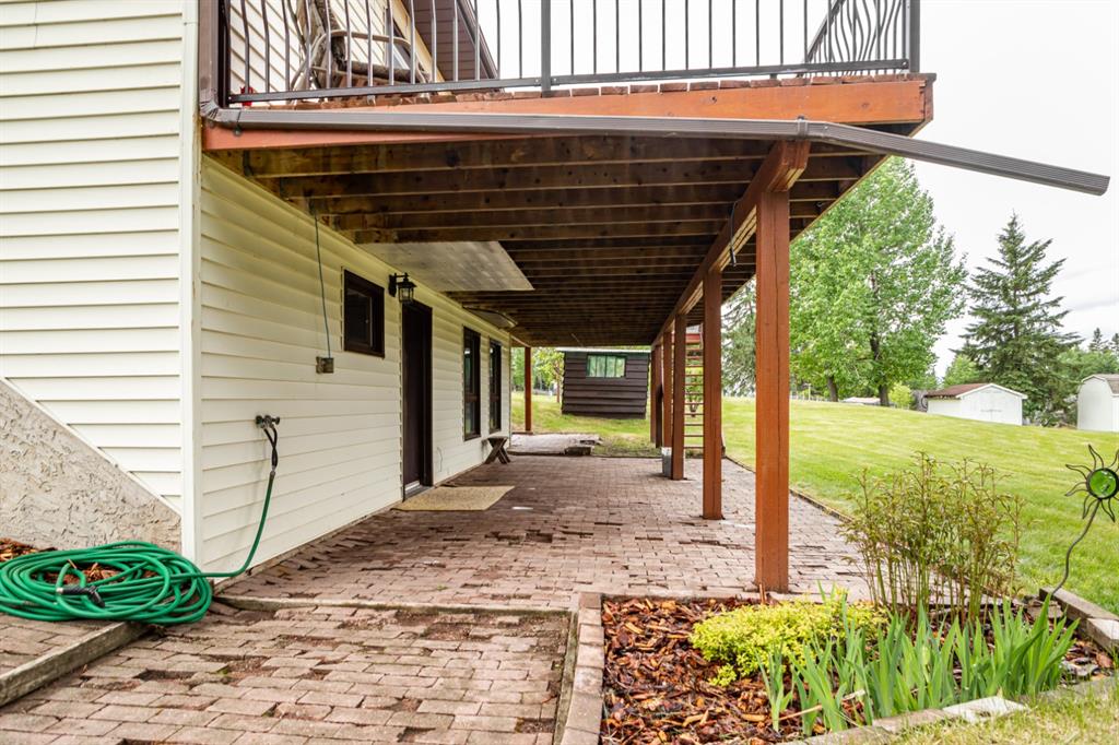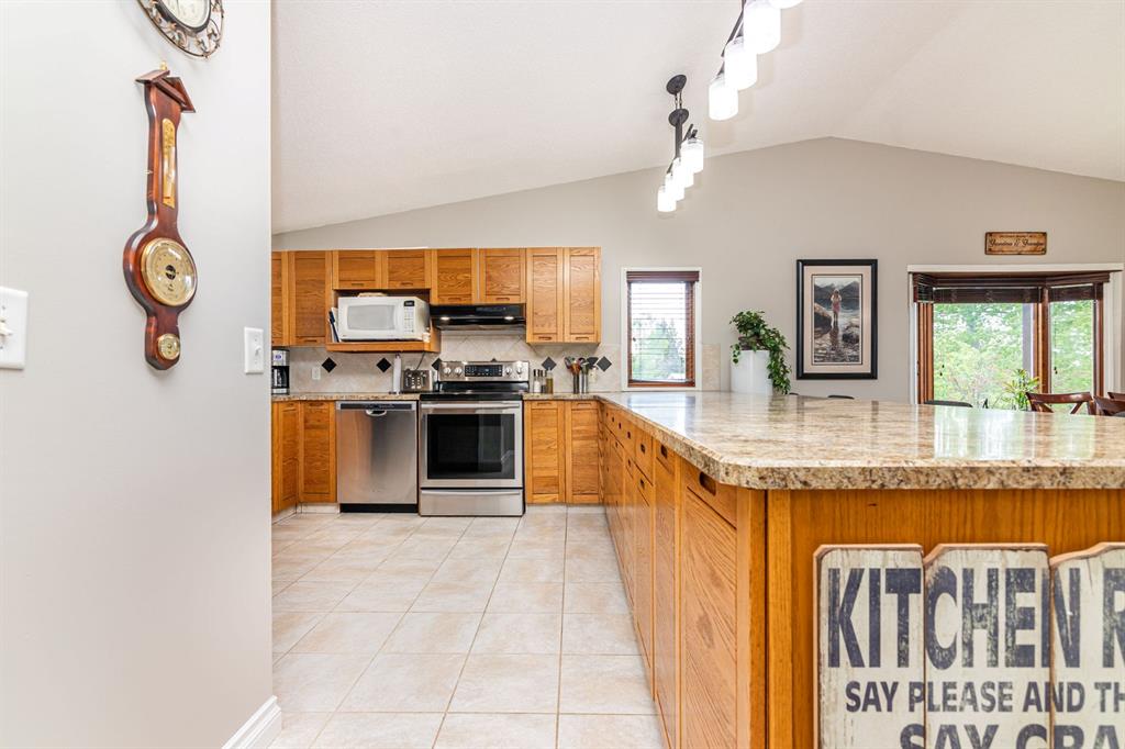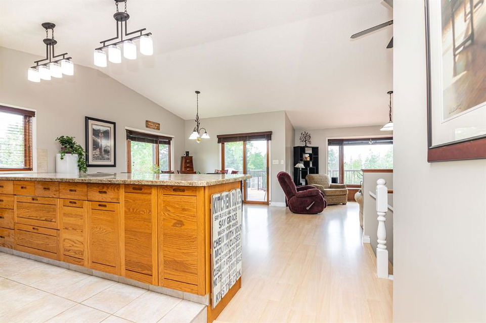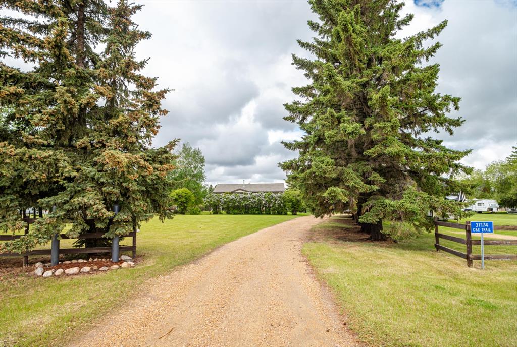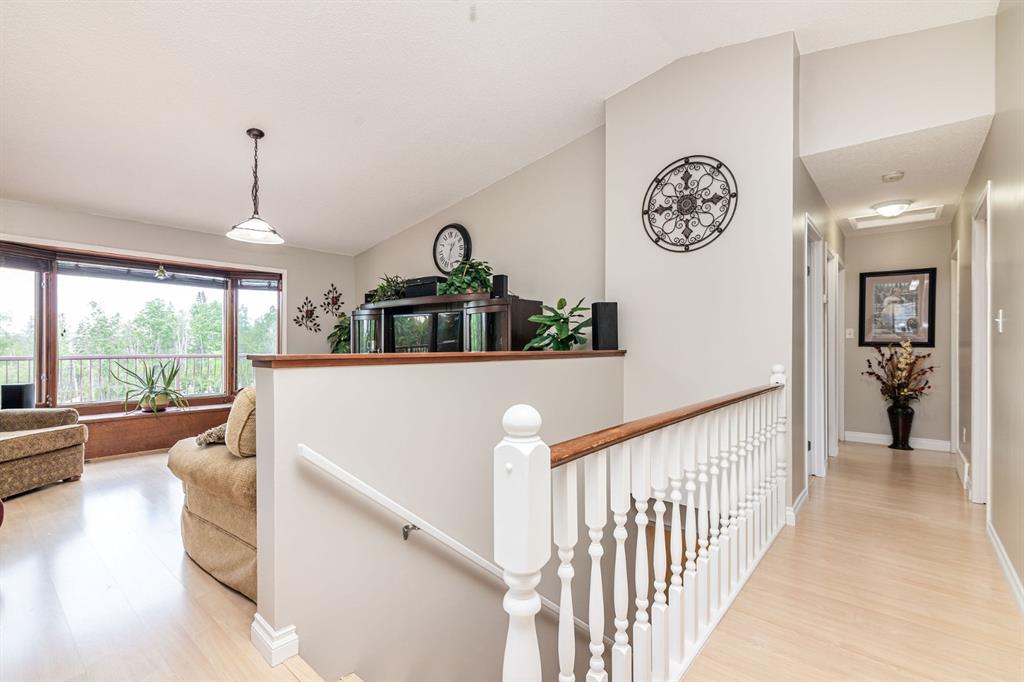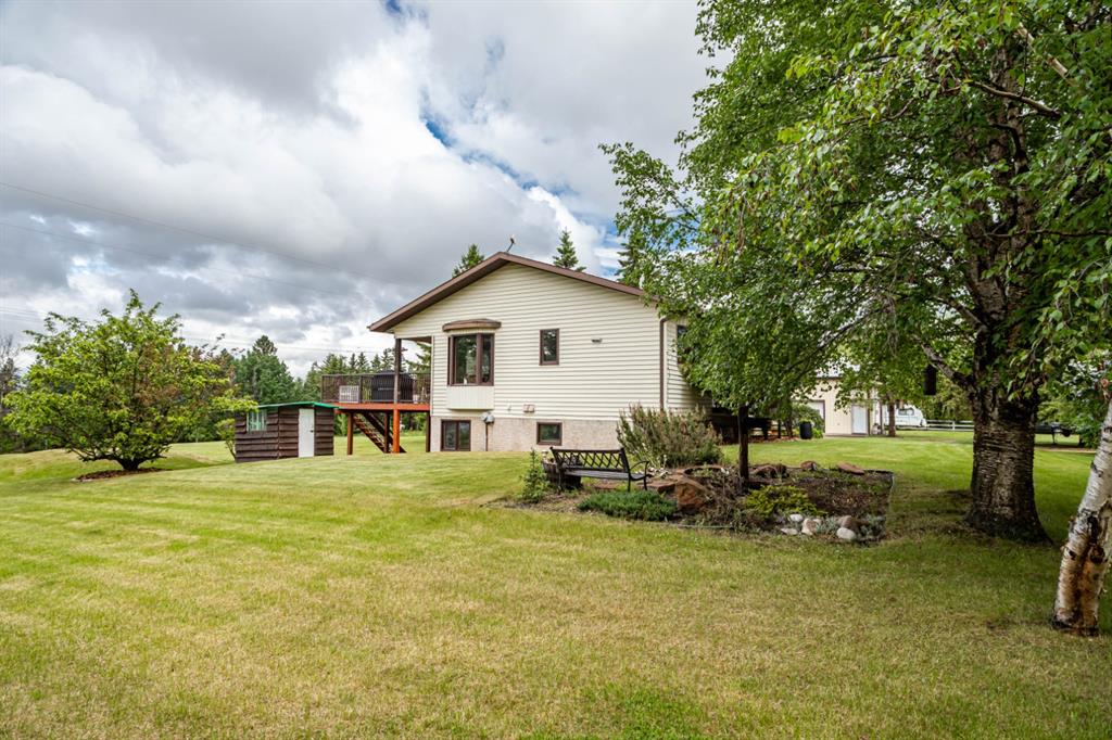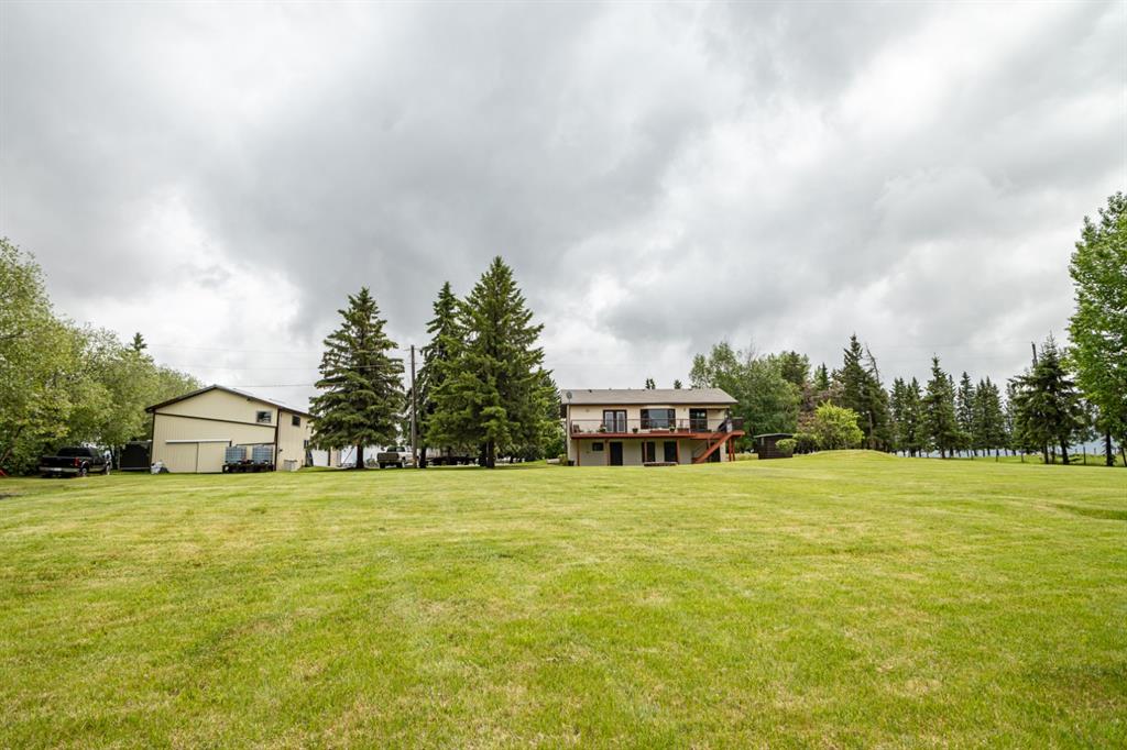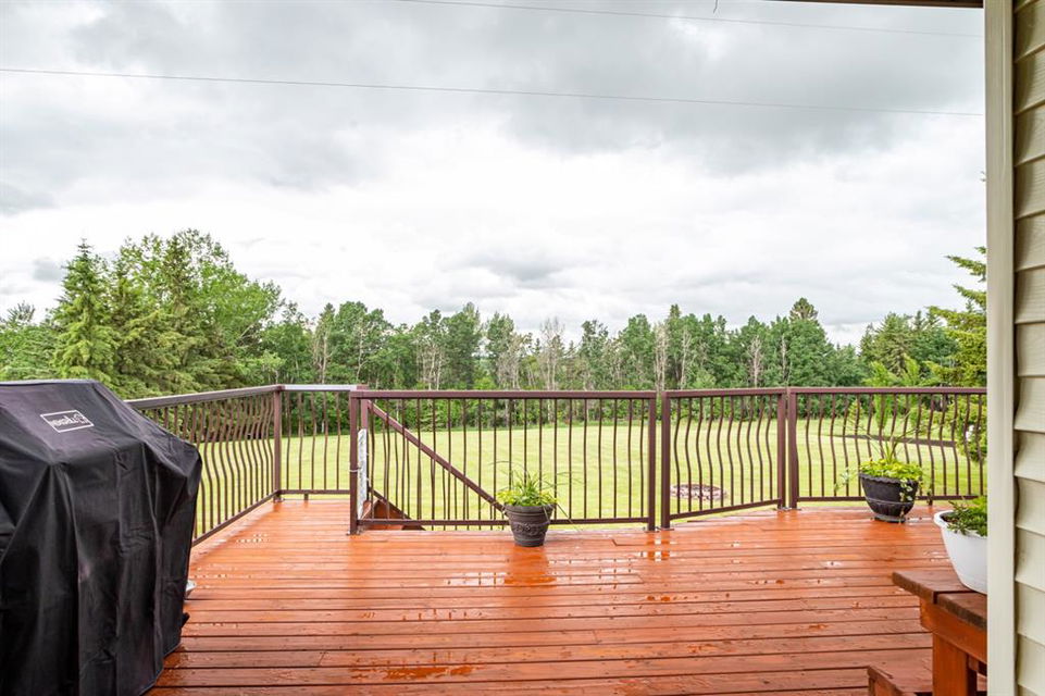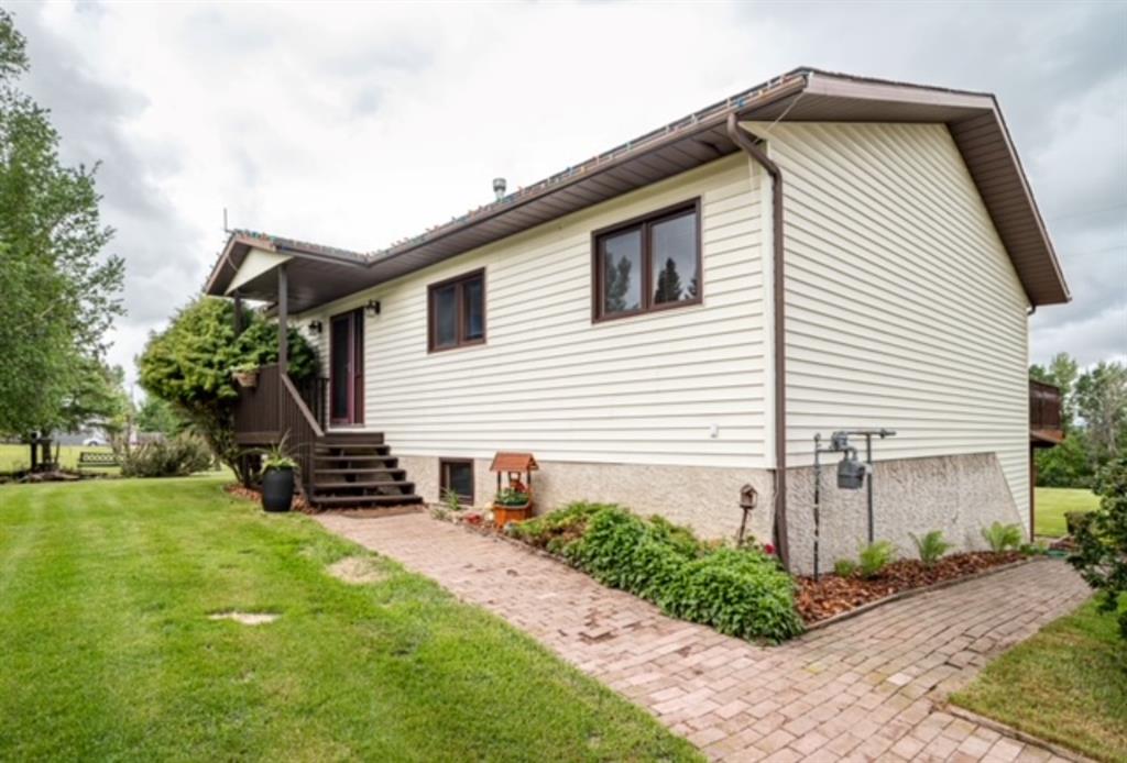 A warm and cozy place to call home! Literally 8 minutes to Red Deer, quick easy and convenient location. This big spacious BUNGALOW has 5 large bedrooms and 2 full bathrooms. Open that front door and you’ll enjoy the privacy and mature trees all around you! Backing on to the Red Deer river! Spacious front covered entrance leads into the kitchen, dining and living room, lots of bayed windows adds additional space. A massive eat up peninsula and a large dining makes for a great space to entertain. There are double sliding glass doors off the dining that leads to a large deck overlooking the back yard. three bedrooms on this level as well MAIN FLOOR LAUNDRY (in front entrance area) The master bedroom has a cheater door to a 5 piece bathroom, as well his/her closets, ceiling fan, and double doors to the large back deck! The FULLY DEVELOPED BASEMENT features two more large bedrooms, a family room, a three piece bathroom with SAUNA! There is a small room with no window currently used as a craft room! Brand NEW septic tank, less than a year old, NEW hot water tank, less than a year old. The detached garage is massive, you’ll admire the space 35X40 HEATED with a small barn attached to the back end (north) There is a large storage room above the garage that would also be ideal for an office or guest house. This home wont last long… LOCATION~LOCATION~ LOCATION