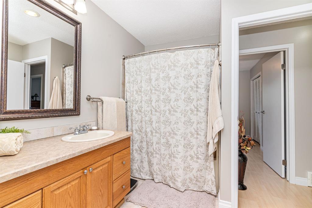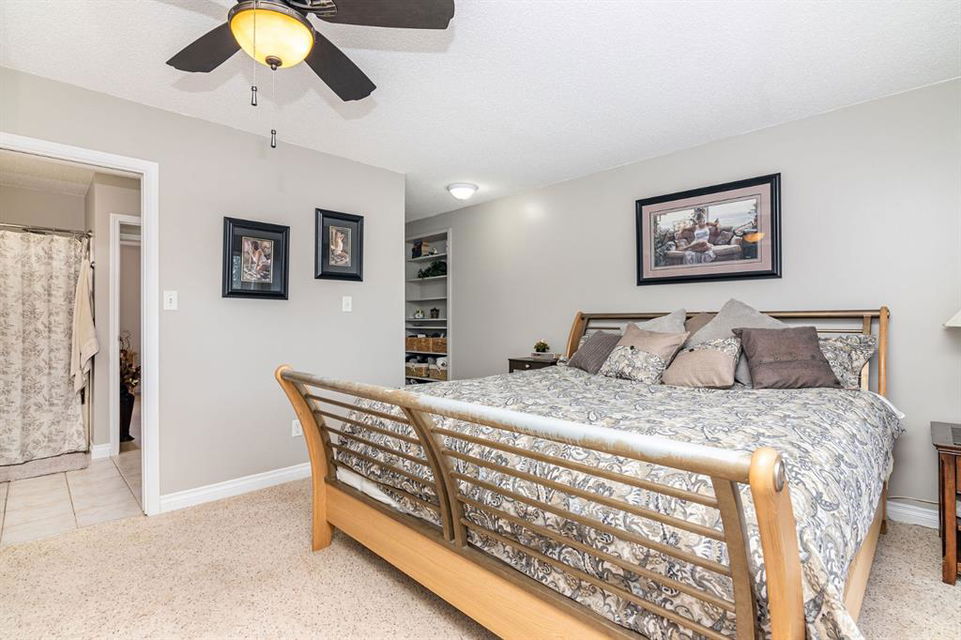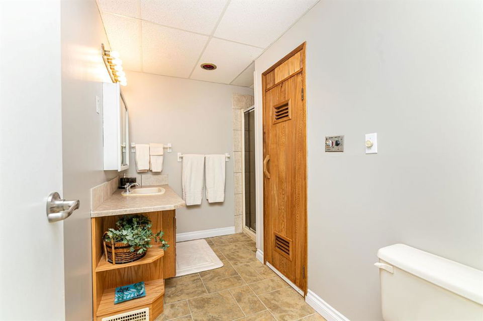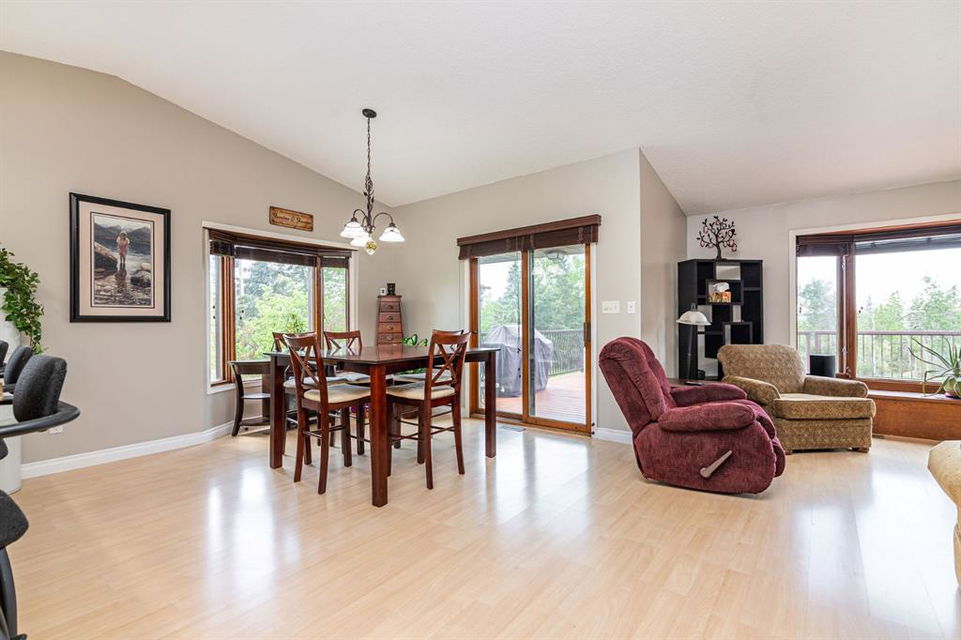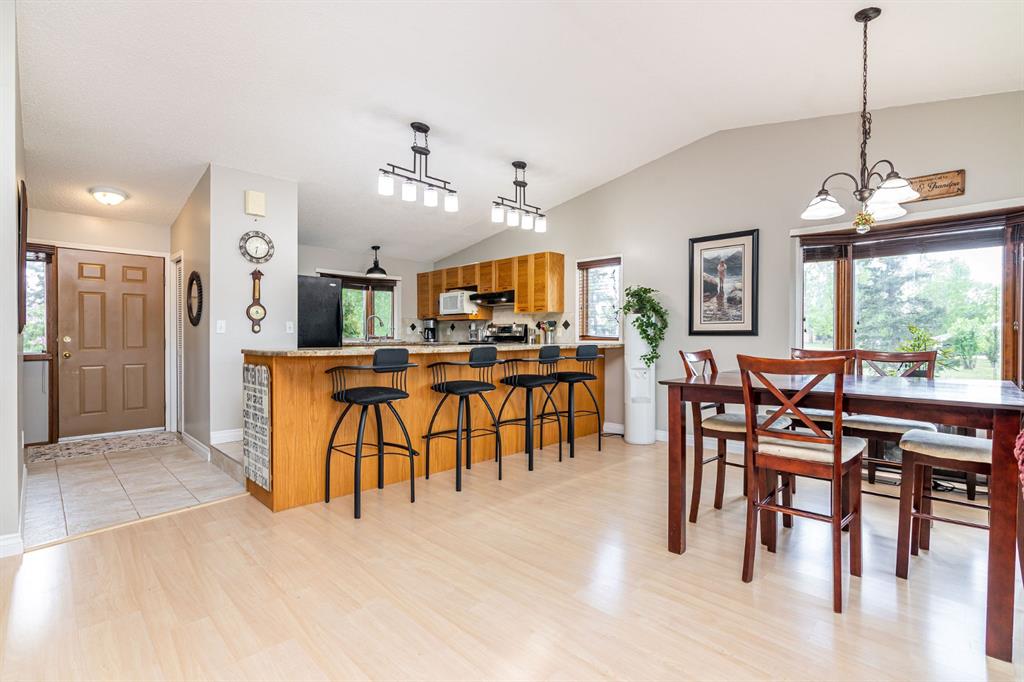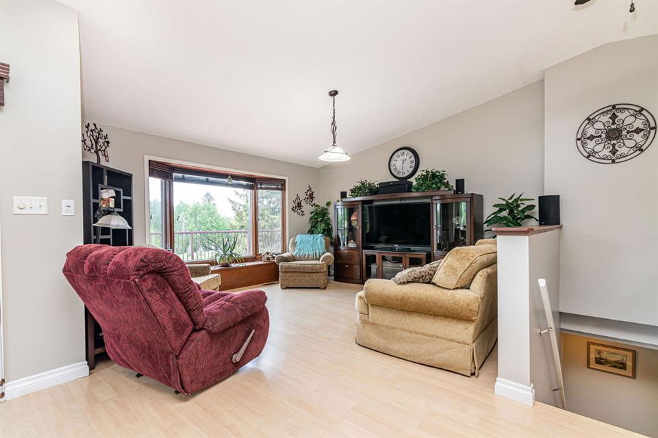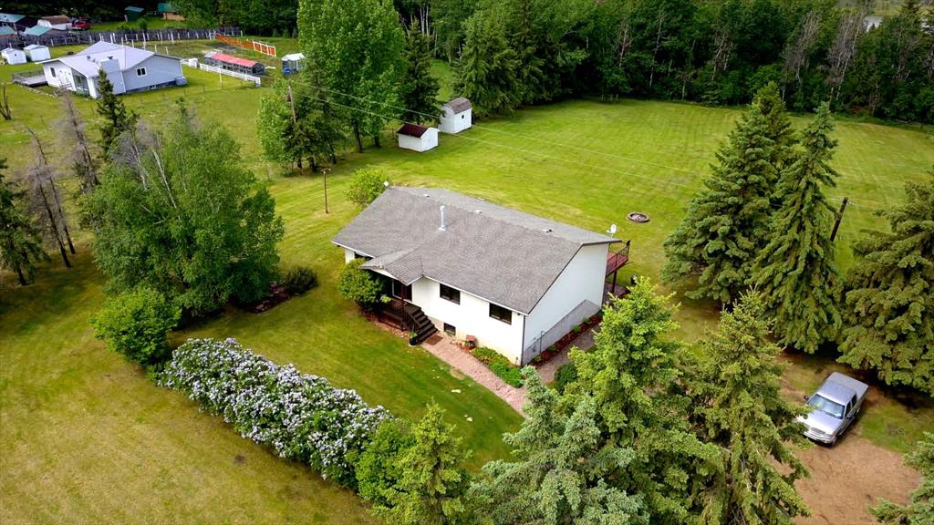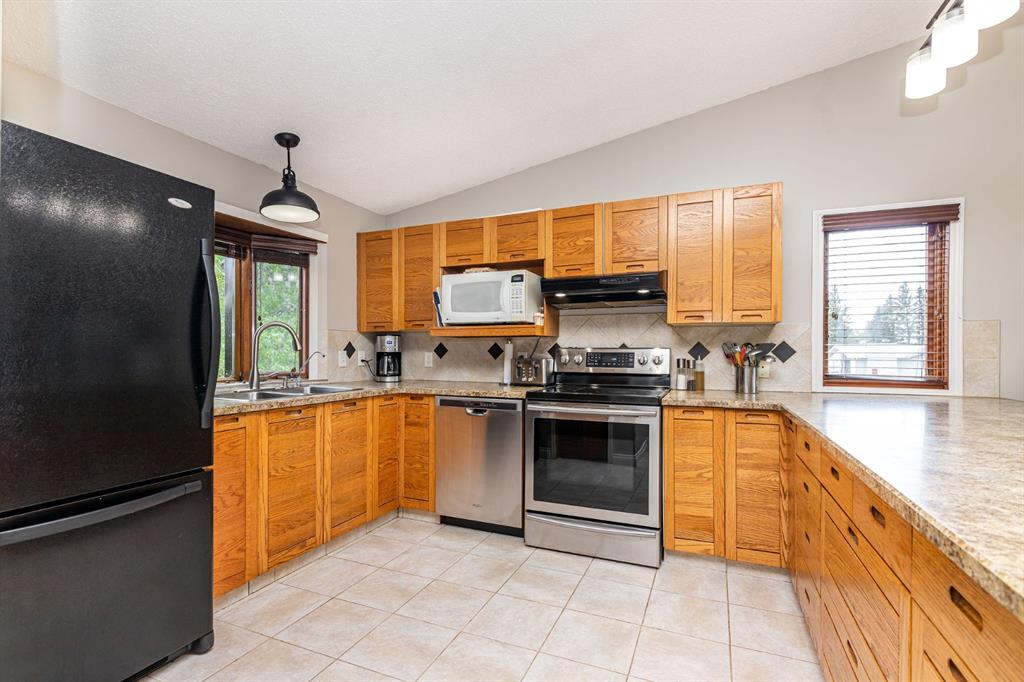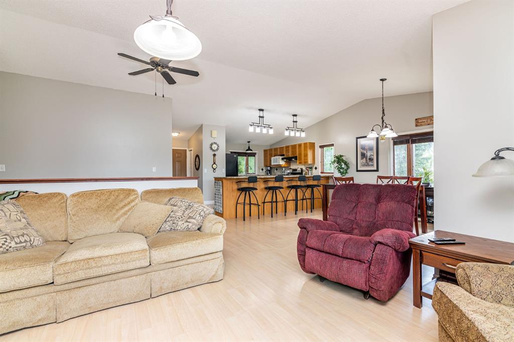 A warm and cozy place to call home! Literally 8 minutes to Red Deer, quick easy and convenient location. This big spacious BUNGALOW has 5 large bedrooms and 2 full bathrooms. Open that front door and you’ll enjoy the privacy and mature trees all around you! Backing on to the Red Deer river! Spacious front covered entrance leads into the kitchen, dining and living room, lots of bayed windows adds additional space. A massive eat up peninsula and a large dining makes for a great space to entertain. There are double sliding glass doors off the dining that leads to a large deck overlooking the back yard. three bedrooms on this level as well MAIN FLOOR LAUNDRY (in front entrance area) The master bedroom has a cheater door to a 5 piece bathroom, as well his/her closets, ceiling fan, and double doors to the large back deck! The FULLY DEVELOPED BASEMENT features two more large bedrooms, a family room, a three piece bathroom with SAUNA! There is a small room with no window currently used as a craft room! Brand NEW septic tank, less than a year old, NEW hot water tank, less than a year old. The detached garage is massive, you’ll admire the space 35X40 HEATED with a small barn attached to the back end (north) There is a large storage room above the garage that would also be ideal for an office or guest house. This home wont last long… LOCATION~LOCATION~ LOCATION