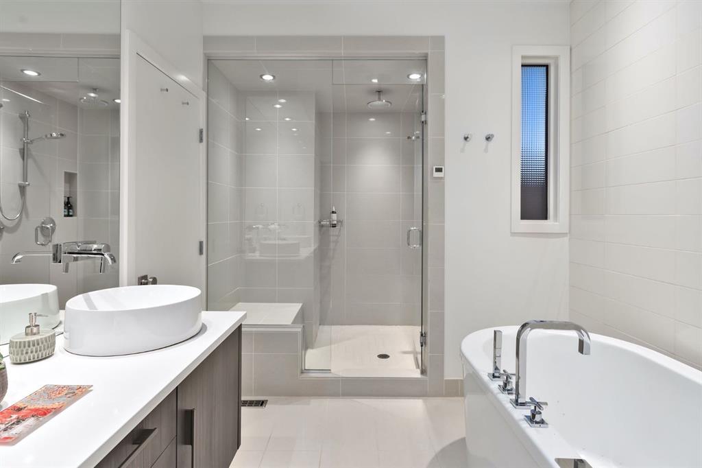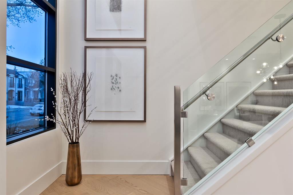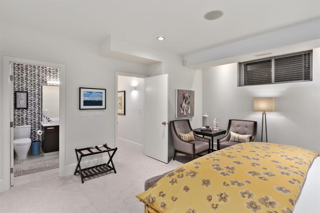 This stunning renovated contemporary 2-storey luxury home has over 3,280 sq ft of total living space and sits on a full-size lot designed with exceptional & sophisticated taste that will be sure to leave a lasting impression. One of the most anticipated homes to come to market, this executive home stands out from all the rest & offers an amazing location, exceptional finishings, & beautiful exterior spaces. This home was completely overhauled, stripping the property down to a blank canvas & meticulously rebuilding it using only the finest materials available. Over $350,000 was spent in the last year on an upscale renovation, including a new kitchen & foyer, new stucco exterior, new two-ply SBS roof w/new membrane, gutters & flashing, herringbone wood & lux Godfrey Hirst carpet flooring, primary bedroom suite, adding an additional bedroom, basement upgrades & more. Upon entry, you are greeted with exceptional details of designer features, soaring vaulted foyer, 10 ft flat painted ceilings, stunning hardwood flooring, front dining room w/ a custom designer slatted wall partition, upgraded Herman Miller lighting, huge windows, bright + open contemporary living area with soothing 2-way gas fireplace, patio doors extending out onto your luxurious deck, custom lighting, gas fireplace, BBQ area & seating to enjoy a quiet night or host your guests while enjoying the wonderful quiet surrounds with access to your fully insulated heated oversized 2-car garage with epoxy floors for the car aficionado! Back inside, entertain in your show-stopper NEW kitchen with custom cabinetry, Wolf, Sub-Zero, & Miele appliances, waterfall Dekton leathered stone countertops, coffee station, large pantry, 2-piece powder room, storage closet, mudroom, and full glass rail staircase complete the main floor. The upper floor hosts a spacious master suite with soaring vaulted ceilings w/ remote shades, spacious walk-in closet with custom organizers, a luxurious spa ensuite w/oversized 10 mm glass steam shower, jetted soaker tub, modern fixtures, gorgeous vanity, in-floor heat, storage & modern tile work. Across the hall is a large second + third or office w/large walk-in closets, 5pc Jack + Jill washroom, laundry room w/custom cabinetry & great storage.The fully finished basement is an entertainer’s dream space that hosts a recreation area, glass wine storage area, full bar, high-end sound system, 3pc washroom, huge guest bedroom w/ a large window, additional storage, upgraded H/E mechanical room, full control 4 smart home system, reverse osmosis water system & in-floor basement heating. Opportunity Knocks! Especially living in one of the trendiest communities of inner-city Calgary on the doorstep of Sandy Beach/River Park & some of the best eateries, lounges, pubs, Altadore cultural scene, greenery, pathways, biking & sought-after schools. Come enjoy the quiet setting, ample parking & a block from the off-leash dog park! A must-see, Call today!