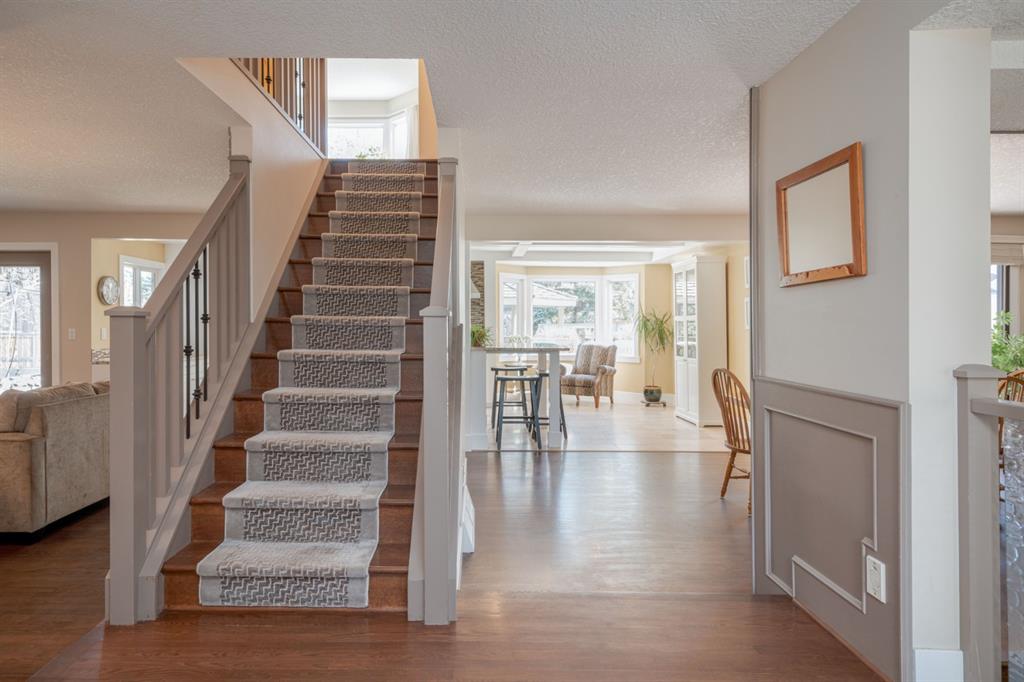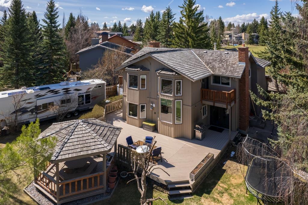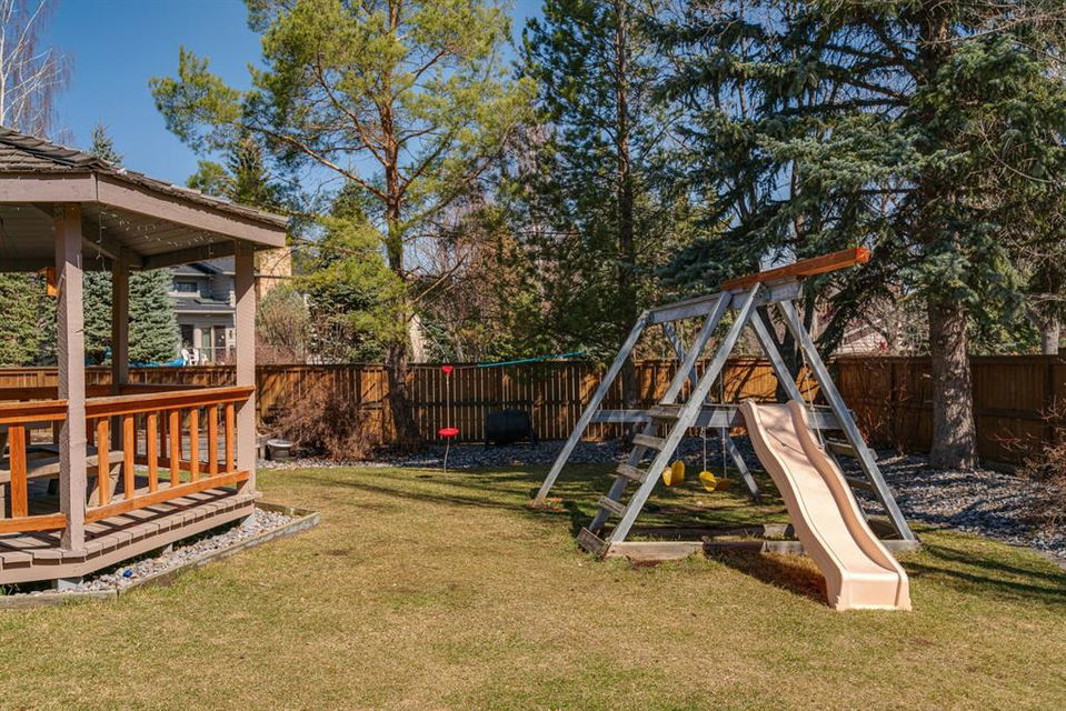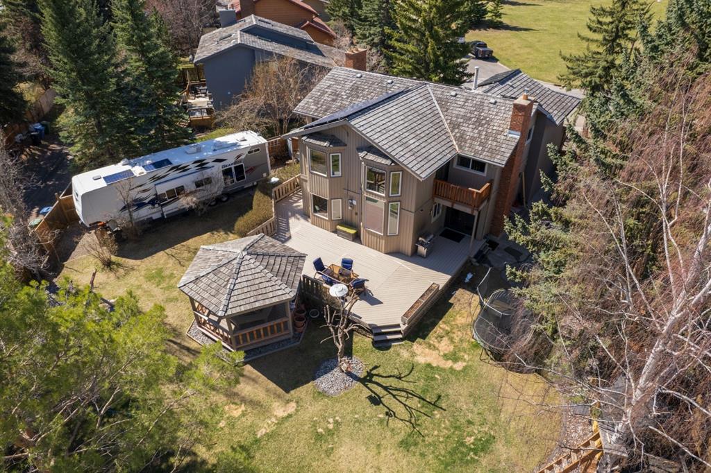 Welcome to this beautifully renovated home on one of the most sought-after streets in Oakridge Estates, with a huge pie lot (10,753 sqft), overlooking a large greenspace. This family friendly home has over 4100+ sqft home of functional living space. A large front foyer leads you to a sunken living room with fireplace, elegant dining room for special occasions and patio doors leading to a wrap around deck. The open concept kitchen is flooded with natural light and overlooks the very private backyard with lots of room for the kids to play! The chef’s kitchen has everything you’re looking for, with granite counters, gas range, wall mounted pot filler, stainless steel appliances and huge island for entertaining. The main floor is complete with a family room, fireplace, patio doors, 2-piece bathroom and mudroom. The upper-level floor features a master suite with sitting area, 3rd fireplace, balcony and ensuite with a soaker tub overlooking the backyard. There are two additional bedrooms, an office w/ balcony (that could be used as a bedroom), family bathroom, laundry, and a large bonus room with built-ins. A fully developed basement includes two rooms, 3-piece bathroom and lots of storage. The yard must be seen to be believed- complete with wrap around deck, mature trees, playhouse, garden, swing set, RV parking and a gazebo. As a bonus there are $30,000 worth of solar panels to help with your energy use. This is the perfect family home!