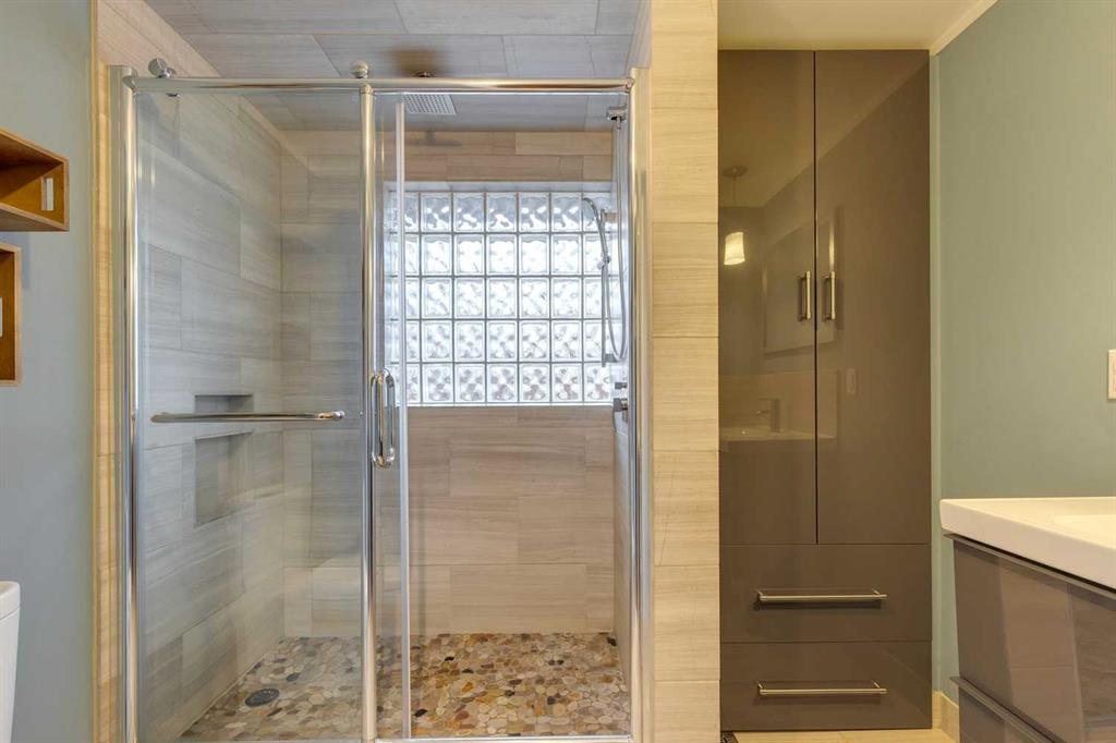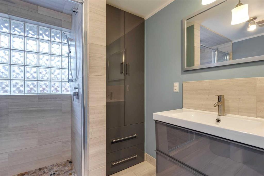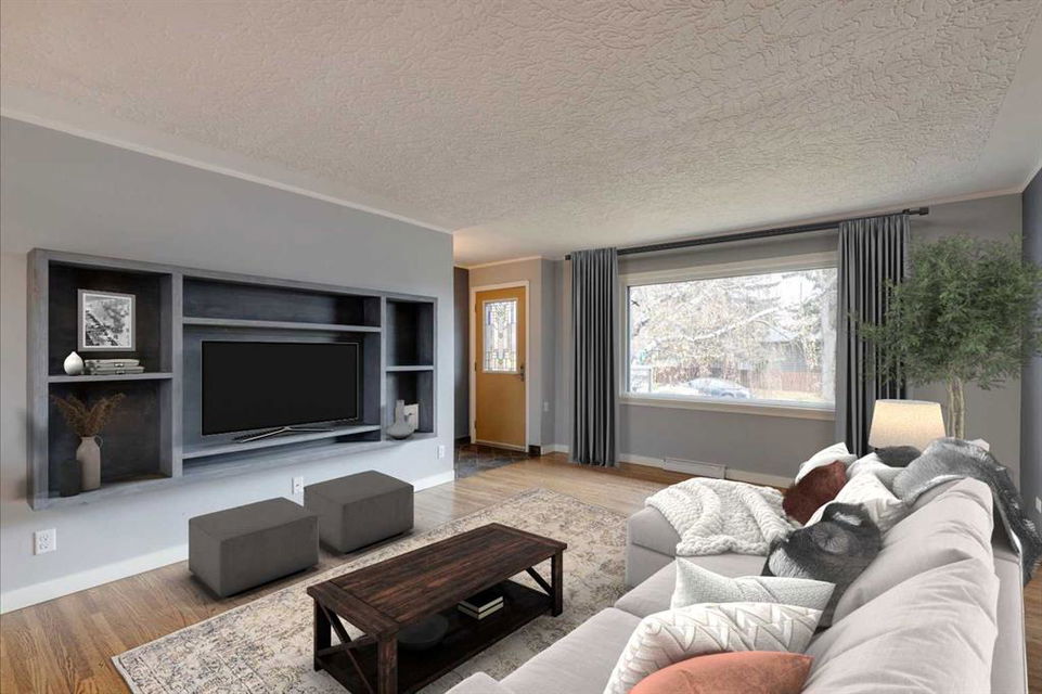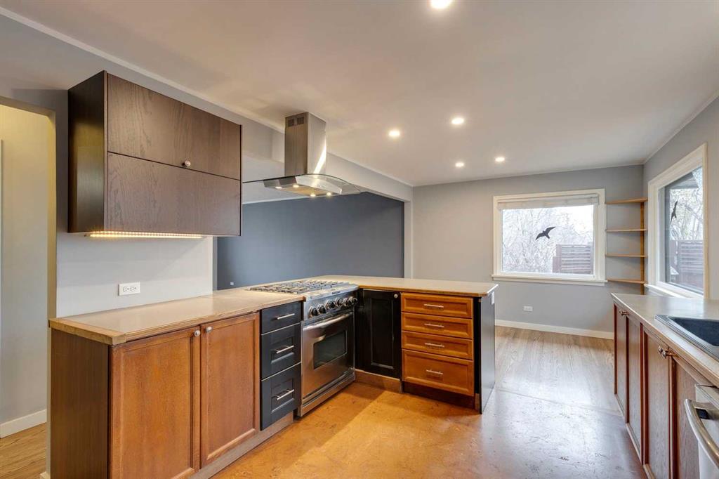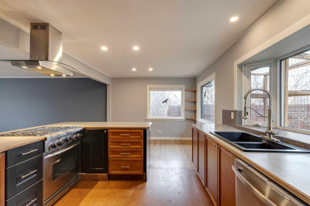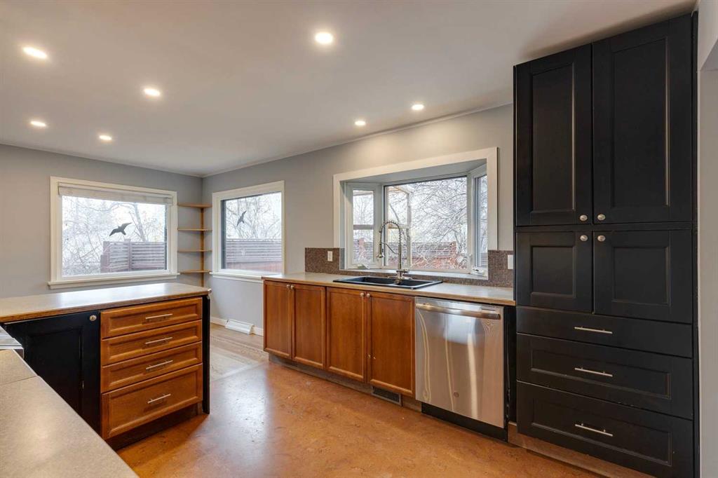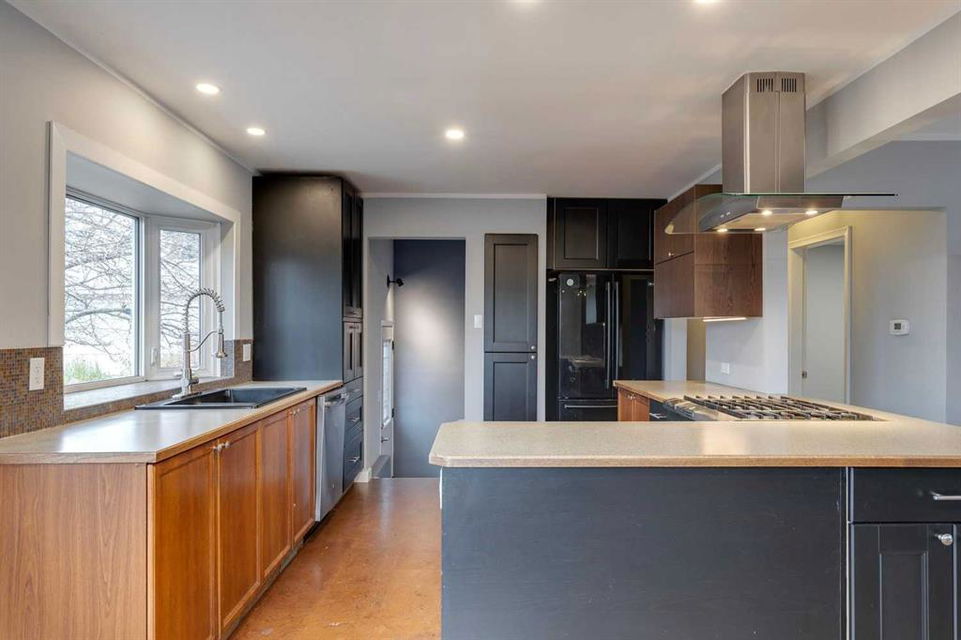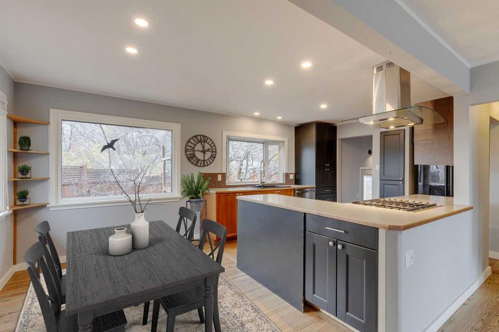 Thorncliffe – 403 Hawthorn Drive NW: Welcome to this 1,209 sq ft bungalow situated on a corner lot in the desirable community of Thorncliffe. This home features 2 + 2 bedrooms and 3 full bathrooms, a single attached garage, and a driveway. The open main floor has an entry with hooks, a bench, and storage; the living room has a large window allowing plenty of natural light; the updated island kitchen has cork floors, a refrigerator, hood fan, dishwasher, and high-end Kitchen-Aid gas range, a built-in pantry and a bright, south-facing bay window over the kitchen sink and a separate dining area. The spacious primary bedroom has a walk-through closet and a renovated 3 pc ensuite with a large glass shower, heated floors and linen storage; an additional large bedroom, and a 3 pc bathroom with a soaker tub. The lower level has a spacious rec room, family room, 2 additional bedrooms, and laundry with sink. The large, beautiful pie lot is fully landscaped with mature trees and gardens and a gorgeous, private backyard with a large stone patio. Many upgrades and improvements over the years including R-24 insulation in the basement, R-60 insulation in the attic, roof and hot water tank. Situated in northwest Thorncliffe, this home is close to plenty of amenities including transit, schools, shopping, green spaces, playgrounds, and parks including an off-leash dog park. The community of Thorncliffe provides easy access to major roadways such as 14th Street, McKnight Boulevard, and Centre Street. Call for more info!