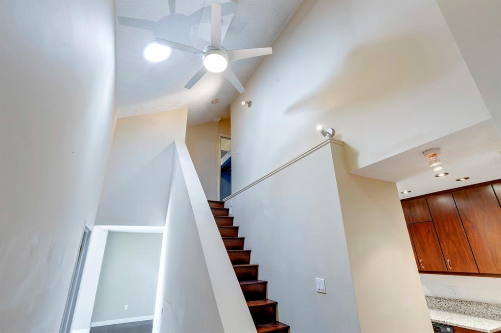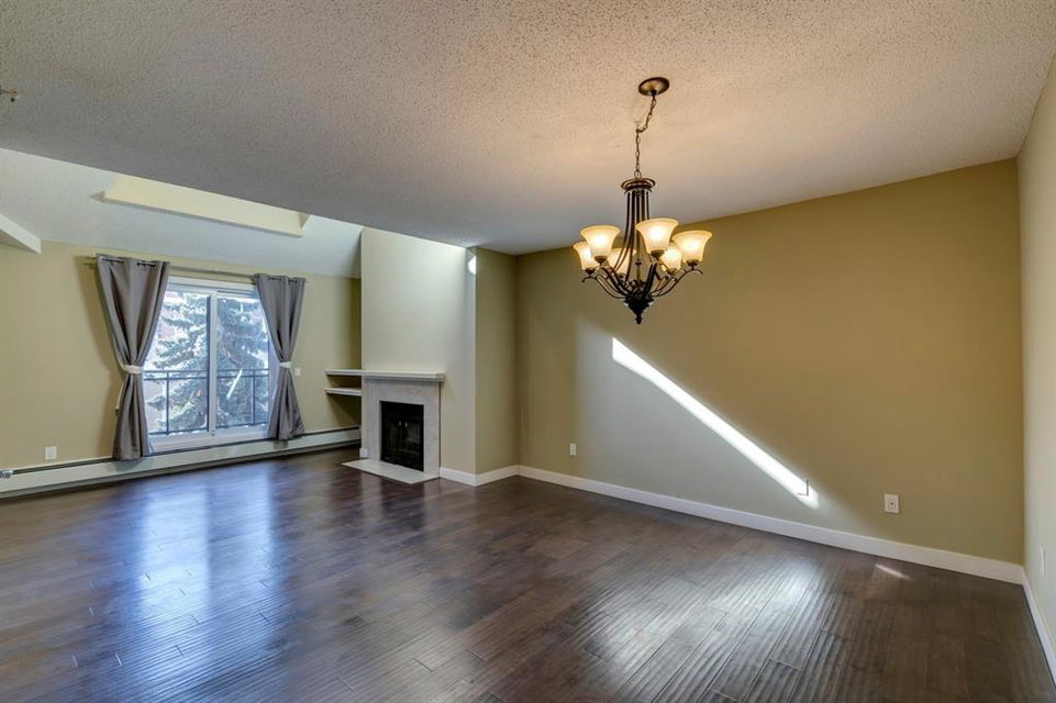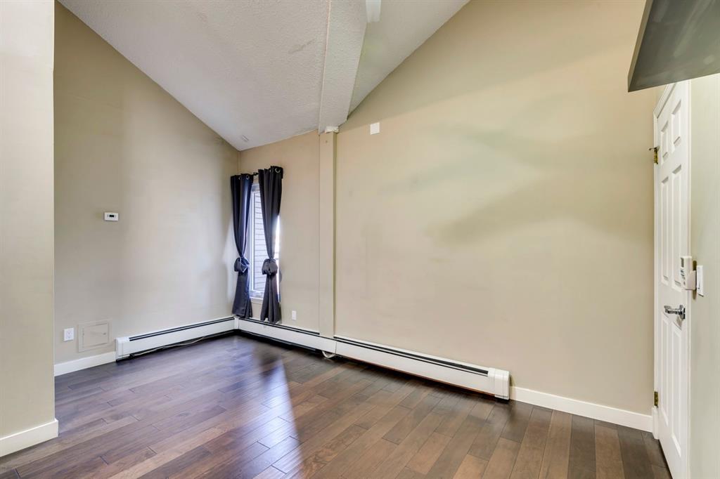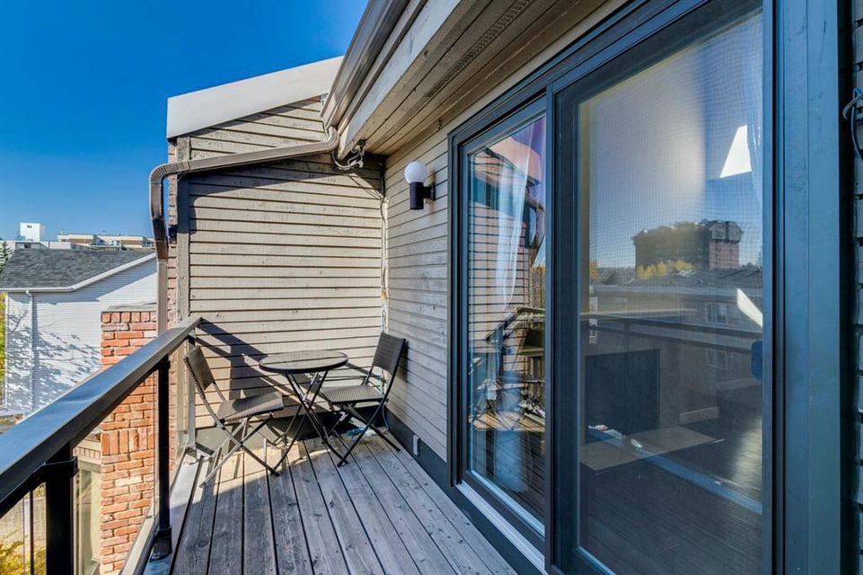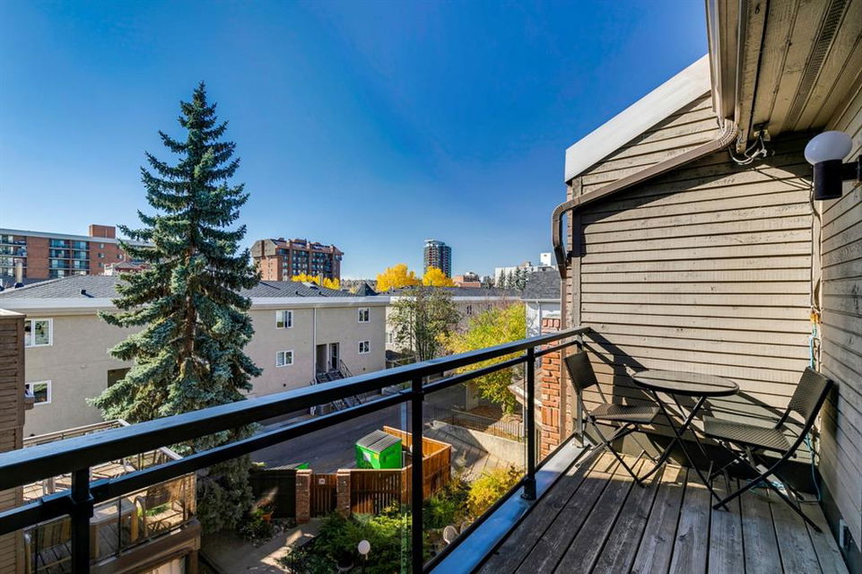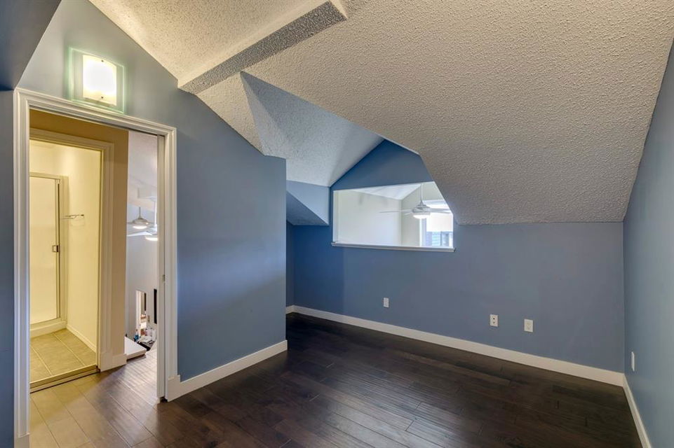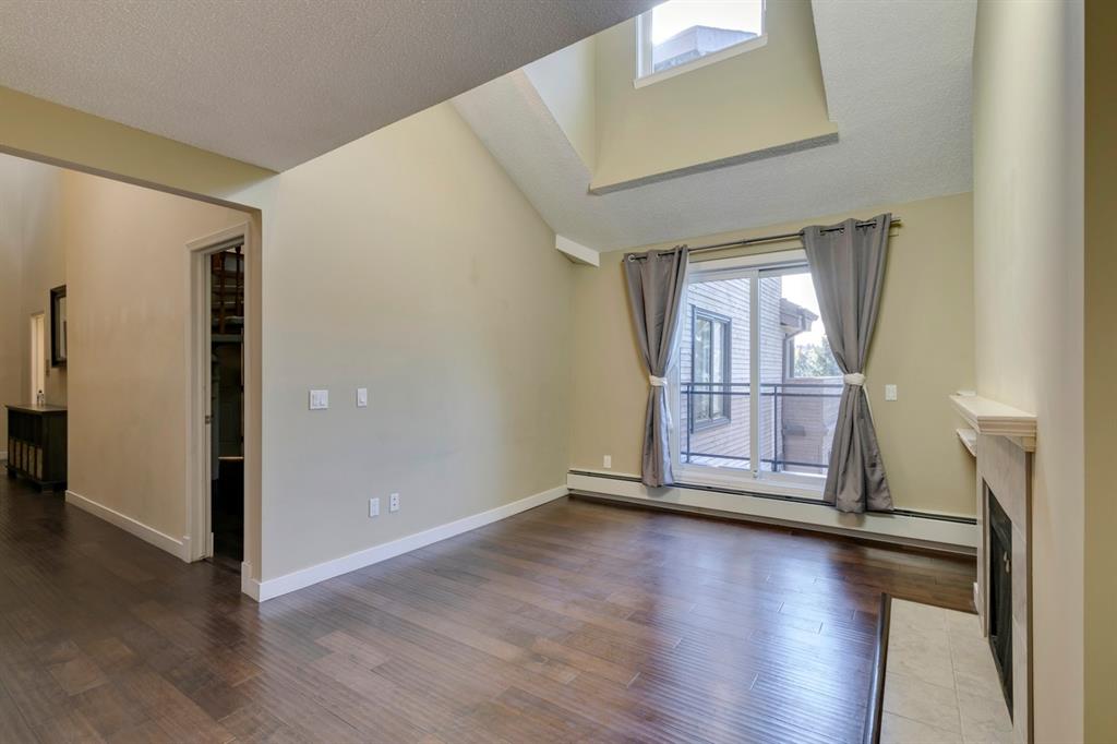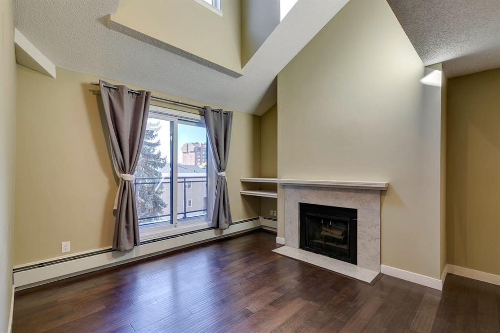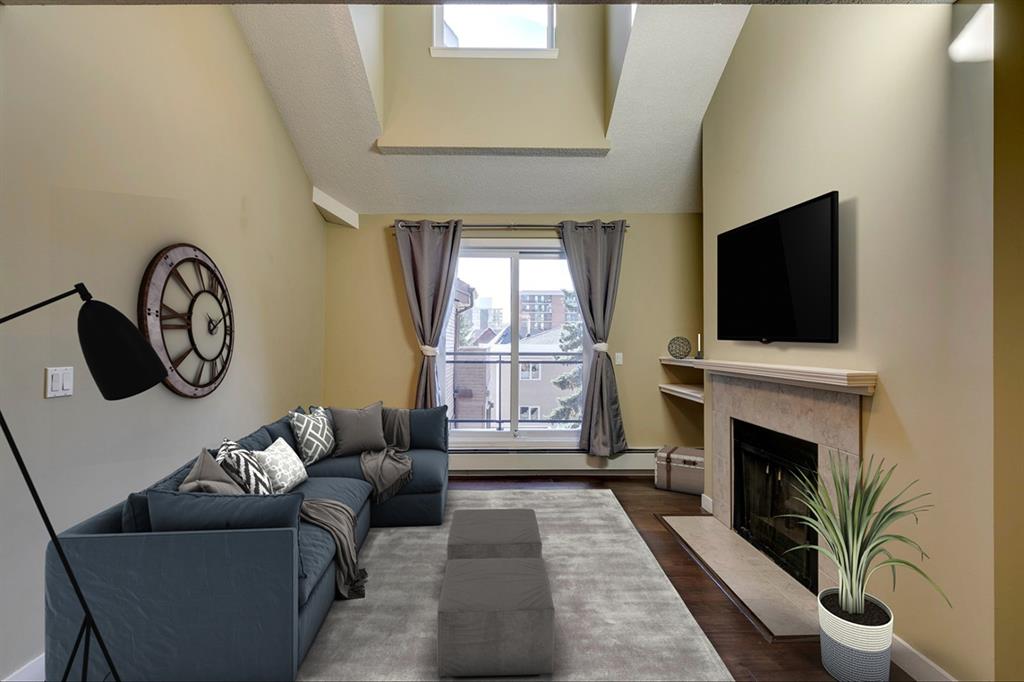 Beltline – #405, 1111 13 Avenue SW: Welcome to this renovated, 1,247 sq ft 2 bedroom + 2 bathroom top floor apartment. This unique unit features a spacious, vaulted entryway and a second-floor loft. The main floor has hardwood floors throughout; a galley kitchen with granite countertops, stainless steel appliances and ample storage; open dining room and living room with wood-burning fireplace and access to the south-facing deck; the primary bedroom has a spiral staircase to the loft/den; 4 pc main bathroom/ensuite with granite counter tops, soaker tub and stacked laundry. The upper level features a second bedroom which can also be used as a den and 3 pc bathroom. Enjoy this bright, top floor penthouse complete with skylights and solar tubes to enhance the natural light. The Montage features: an elevator, heated, underground parking, bike storage and a storage locker for each unit. Located in the heart of the beltline close to all amenities, a short walk to downtown, 17th Avenue, schools, and playgrounds. Call for more info!