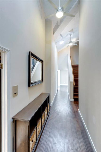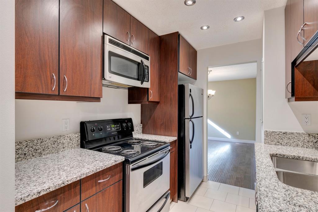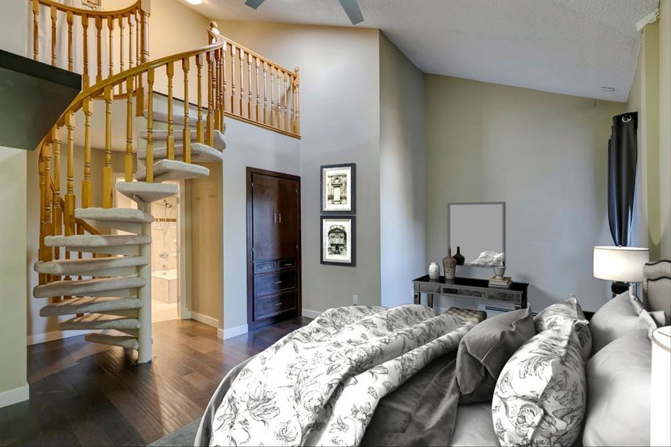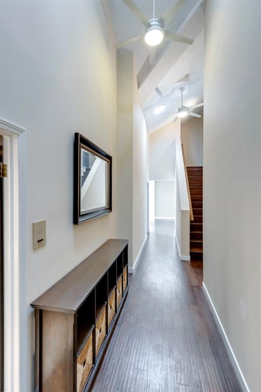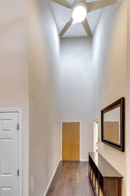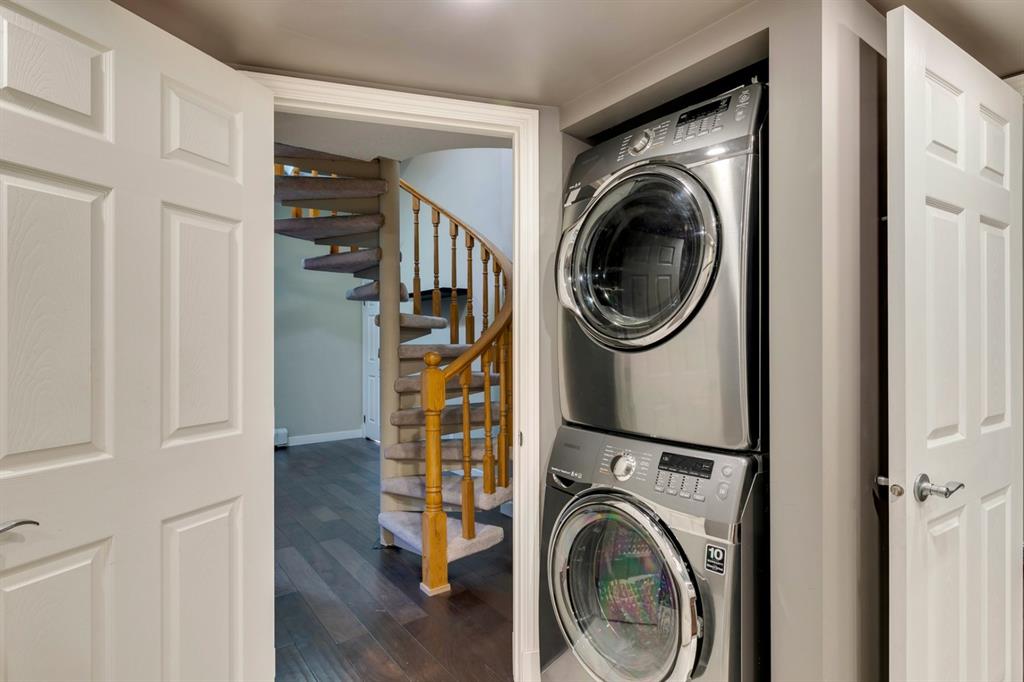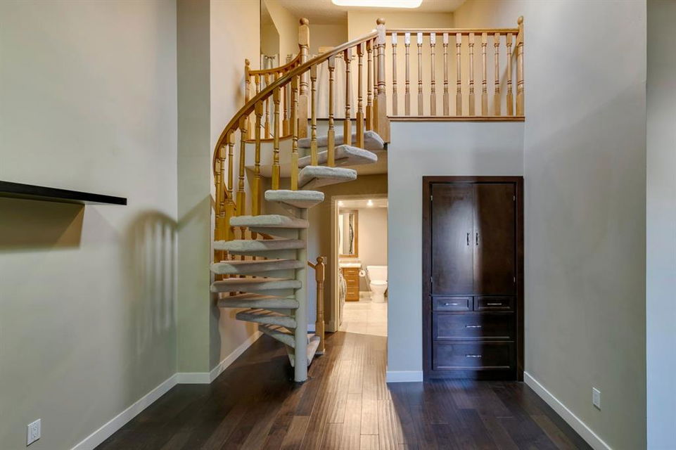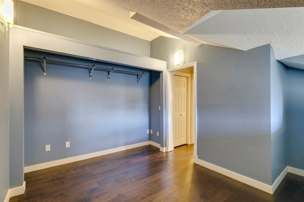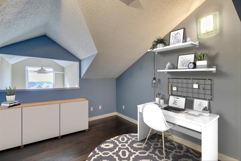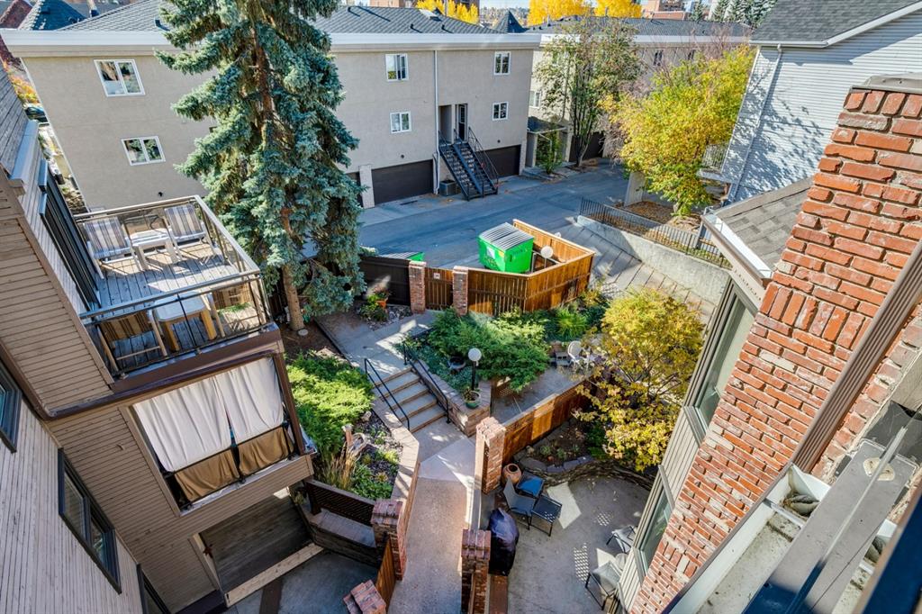 Beltline – #405, 1111 13 Avenue SW: Welcome to this renovated, 1,247 sq ft 2 bedroom + 2 bathroom top floor apartment. This unique unit features a spacious, vaulted entryway and a second-floor loft. The main floor has hardwood floors throughout; a galley kitchen with granite countertops, stainless steel appliances and ample storage; open dining room and living room with wood-burning fireplace and access to the south-facing deck; the primary bedroom has a spiral staircase to the loft/den; 4 pc main bathroom/ensuite with granite counter tops, soaker tub and stacked laundry. The upper level features a second bedroom which can also be used as a den and 3 pc bathroom. Enjoy this bright, top floor penthouse complete with skylights and solar tubes to enhance the natural light. The Montage features: an elevator, heated, underground parking, bike storage and a storage locker for each unit. Located in the heart of the beltline close to all amenities, a short walk to downtown, 17th Avenue, schools, and playgrounds. Call for more info!