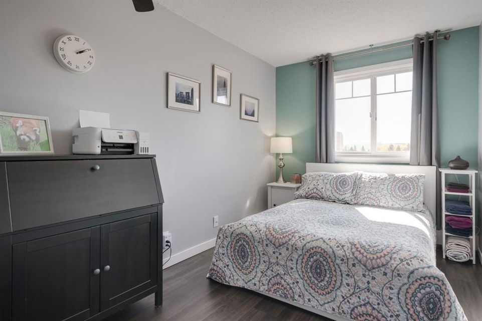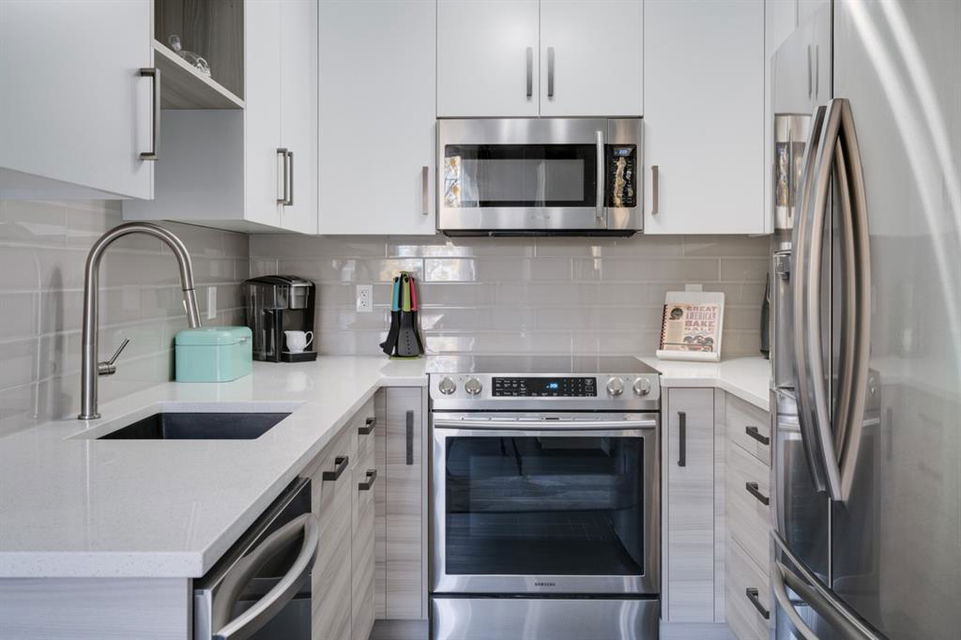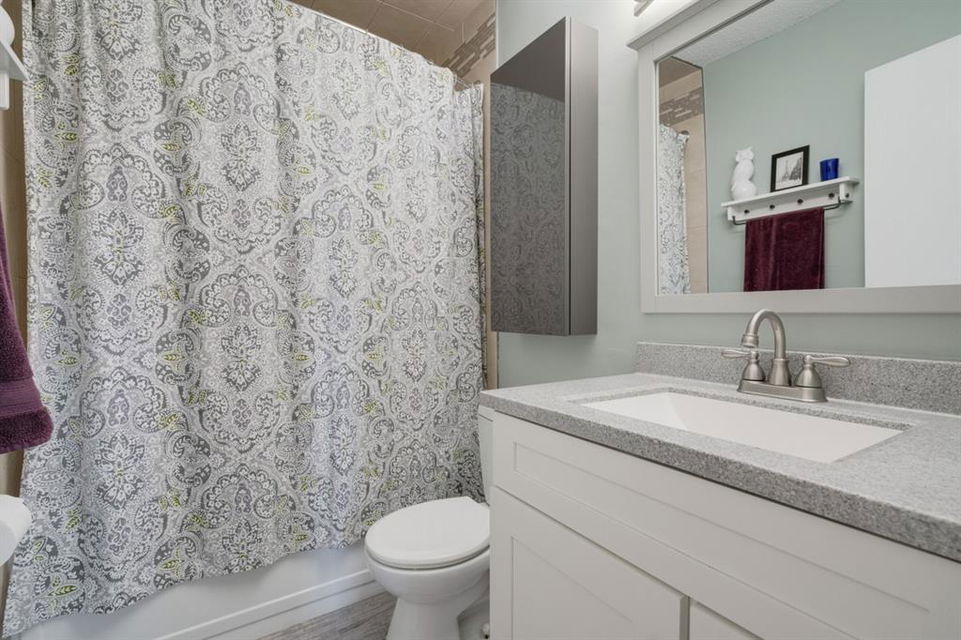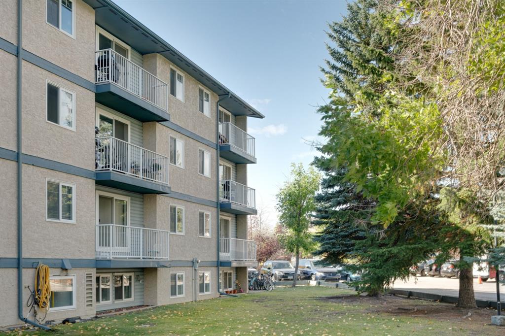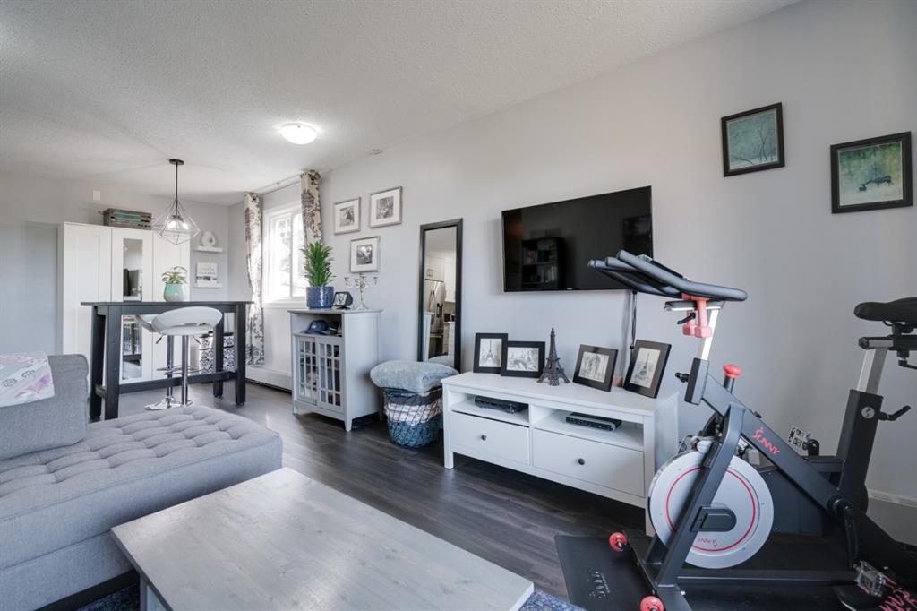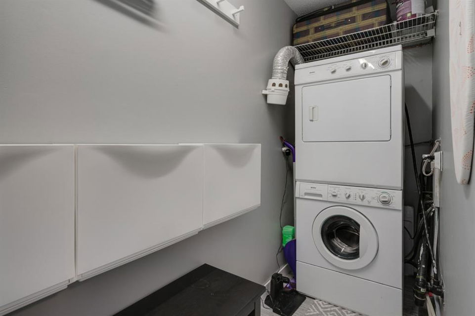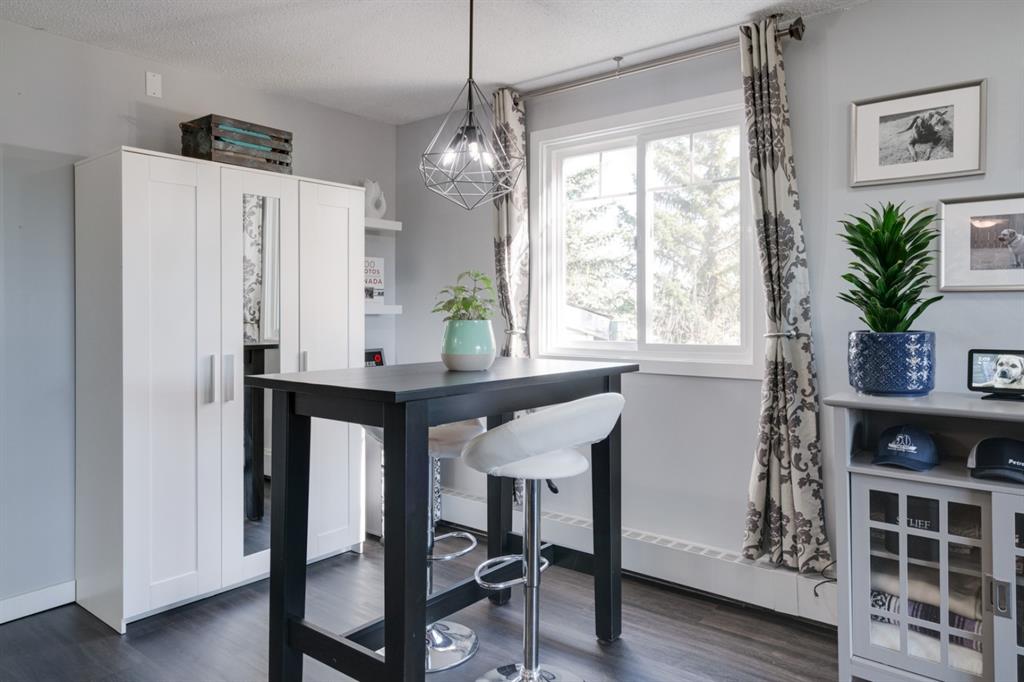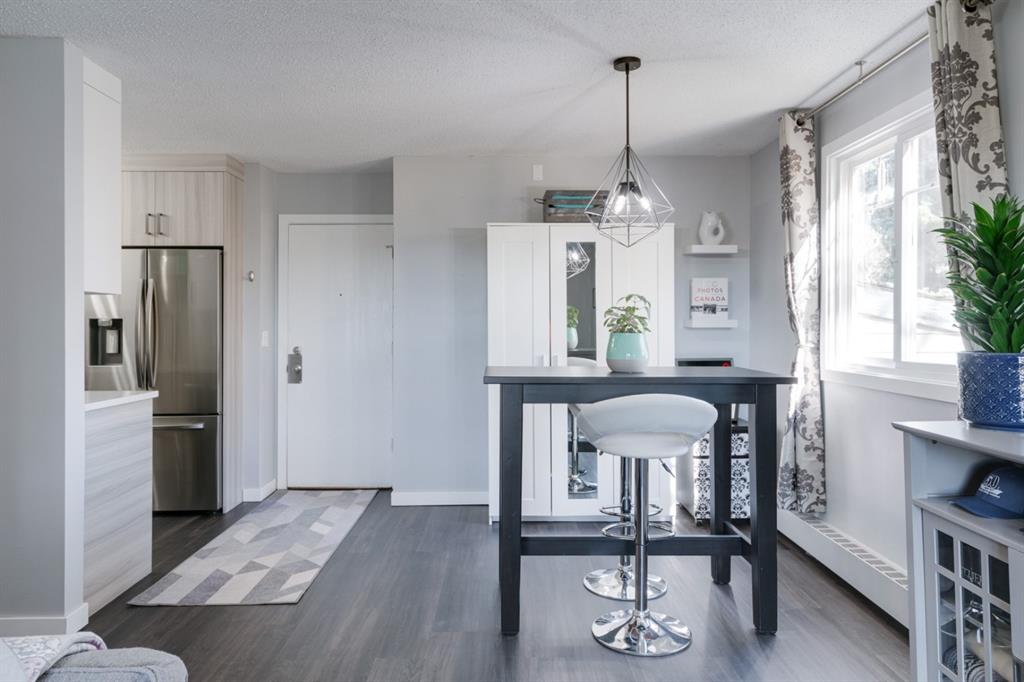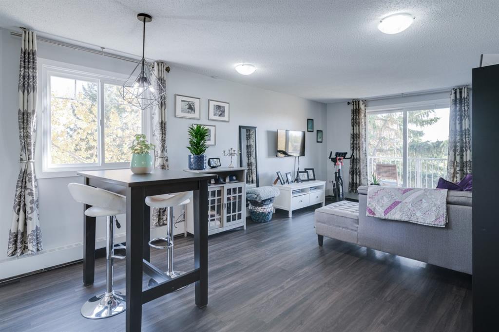 Dalhousie – #408D, 5601 Dalton Drive NW: Welcome to this FULLY RENOVATED 2 bedroom + 1 bathroom TOP floor CORNER unit in Sunflower Garden Court. The 753 sq ft unit features vinyl plank flooring throughout, a fully custom Denca kitchen with custom cabinetry, NuGranite sink, quartz countertop, Samsung stainless steel appliances; dining area, living room with SW facing balcony overlooking Dalton Park, master bedroom, additional bedroom, 4 pc renovated bathroom, RARE IN-SUITE LAUNDRY room which doubles as additional storage. This unit has it all! Turn-key, immaculate and shows pride of ownership. Over $30,000 was spent renovating the unit in recent years. Recent improvements to the complex include a new roof installed in 2013 and new windows and doors in 2014. This home is located close to the University of Calgary, Dalbrent Shopping Centre, Northland Mall, Shaganappi Trail, Crowchild Trail and transit. Call for more info!