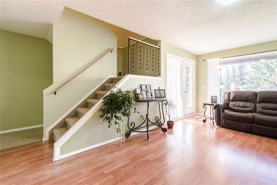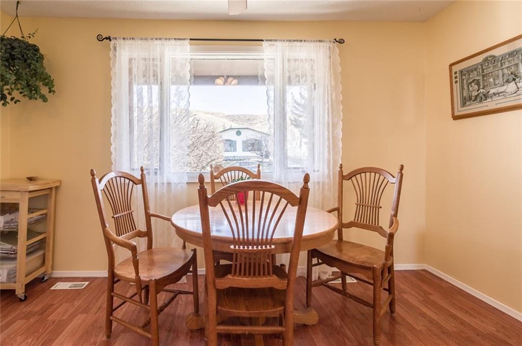 Check out this great INVESTMENT PROPERTY or perfect for first time home buyers!! This great property is located on a quiet street, surrounded by mature trees & close to playground! Main floor includes separate kitchen & dining area, spacious living room with abundance of windows allowing all the natural light to filter in. Step outside from living room to your south exposure backyard, large raised deck is a great area to BBQ & entertain family & friends, offering great views & sunshine all day long. Low maintenance backyard includes newer fence, great storage area under deck & fire pit. Upstairs are 2 good sized bedrooms & 4 piece bathroom. Basement is fully finished with 3rd bedroom & 4 piece bathroom. Plenty of parking out front with potential of garage must be approved by Town of Cochrane. Great area to live, close to all amenities, playgrounds, school & Historic downtown! Call today to book your private showing!