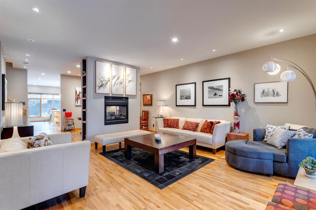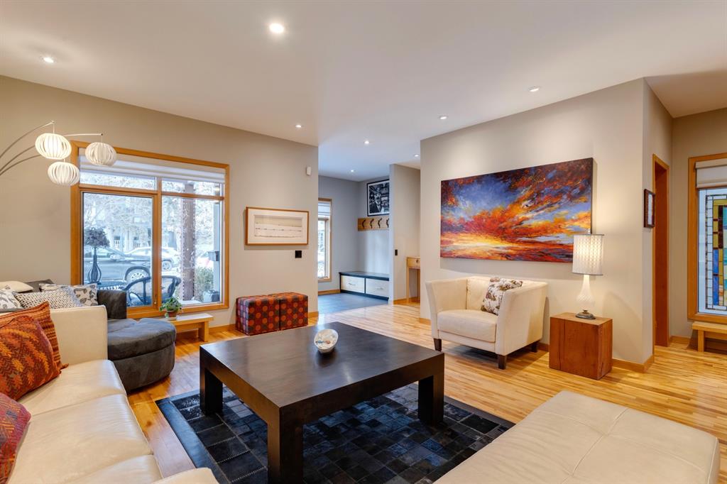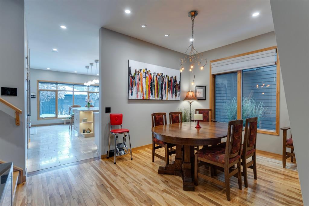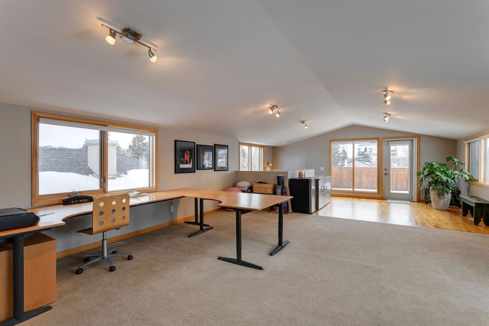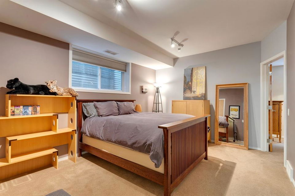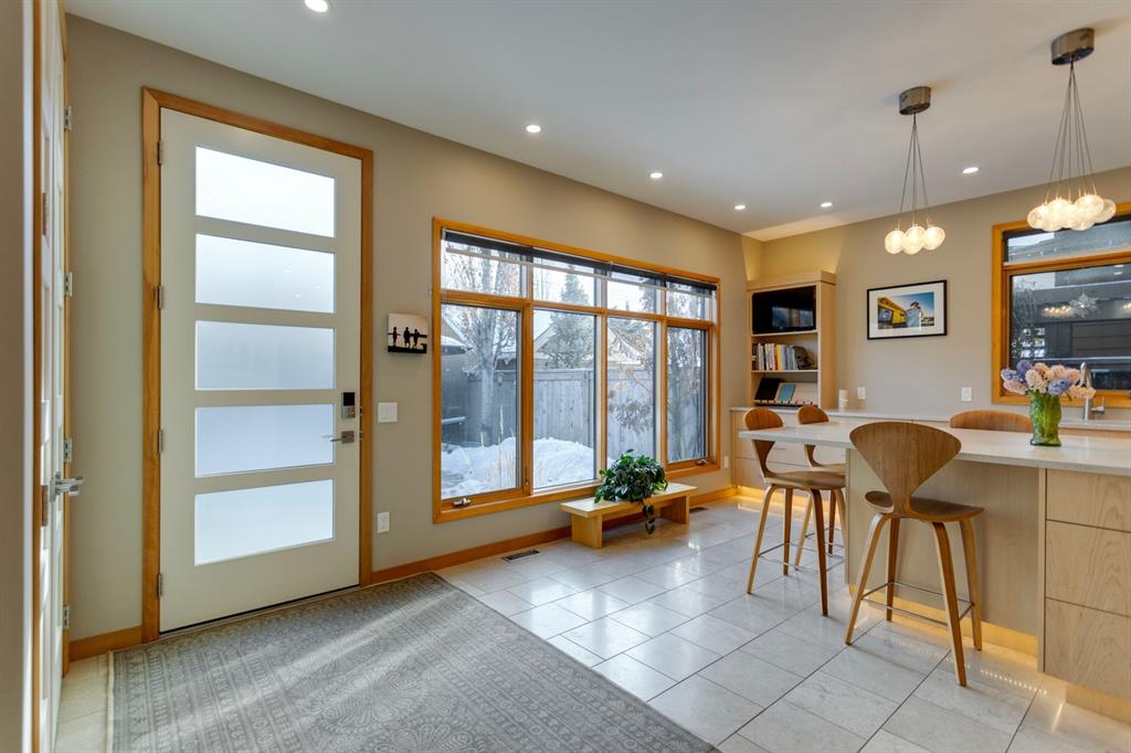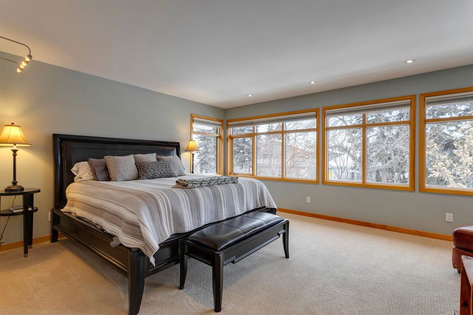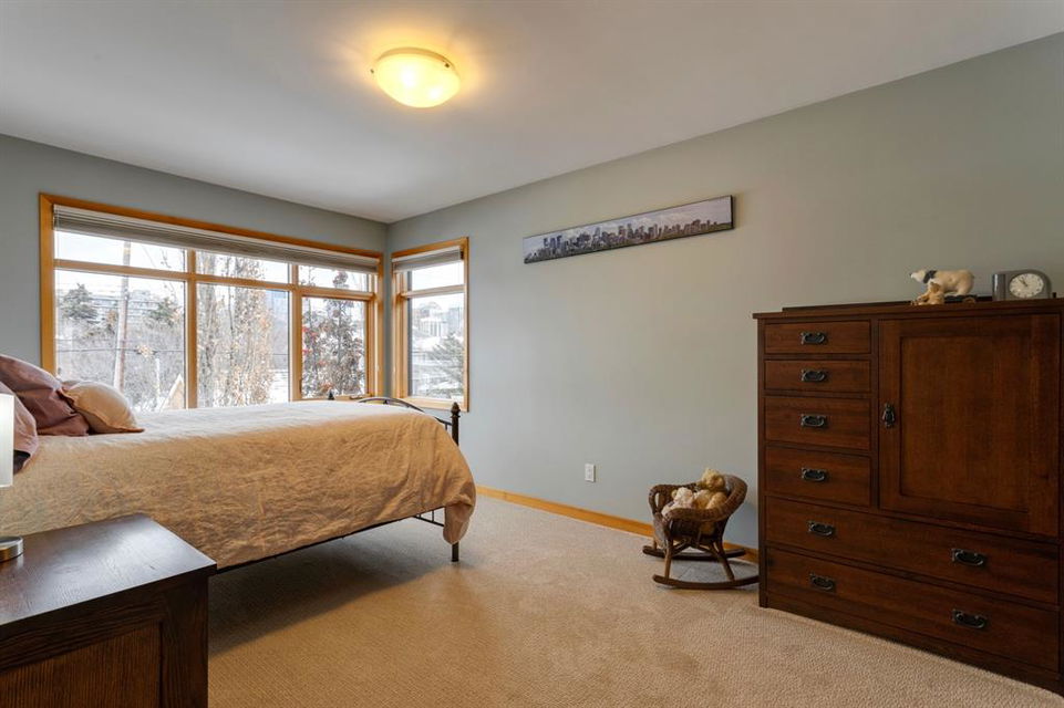 Hillhurst – 410 11A Street NW: Look no further than this immaculately maintained, 2.5-storey home with over 4,100 sqft of development located on one of the most desirable streets in the heart of Kensington. This home has a total of 5 bedrooms and 3.5 baths. Step inside and be greeted by the living room and formal dining room, both separated by a 2-sided fireplace. The heart of the home is the stunning, renovated kitchen that features a large island with seating for 4, quartz countertops, and a suite of high-end stainless steel appliances including a Wolf gas range, hood fan, and convection steam oven, as well as a Kitchen-Aid refrigerator and Blomberg dishwasher. Also on the main floor, you’ll find a serene meditation/quiet room and a large half bath for your guests’ convenience. The 2nd level includes a spacious, bright primary bedroom with a seating area, walk-in closet, 5 pc ensuite with heated floors, dual sinks, and dual shower heads; 2 additional bedrooms – 1 with a walk-in closet; 4 pc main bathroom with a claw tub; and a spacious laundry room with a sink, folding table, and plenty of storage. The 3rd level features a spacious loft area that can be used as a bonus room, office, or workout area with a wet bar and a balcony overlooking the backyard with downtown views. The fully developed lower level boasts a massive wet bar with 2 Sub-Zero wine fridges, a beverage fridge, tons of storage cupboards and cork floor; a rec room with tray ceilings; 2 additional bedrooms and a 4 pc bath with heated floors. Additional features of the home include a heated double-car garage, low-maintenance landscaping, built-in speakers throughout, and a 30’ x 125’ lot located on a quiet, tree-lined street. You’ll be just a short walk from Kensington’s shops & restaurants and minutes from downtown, the Bow River pathway, schools, and parks. Don’t wait, call for more info and schedule your private showing today!