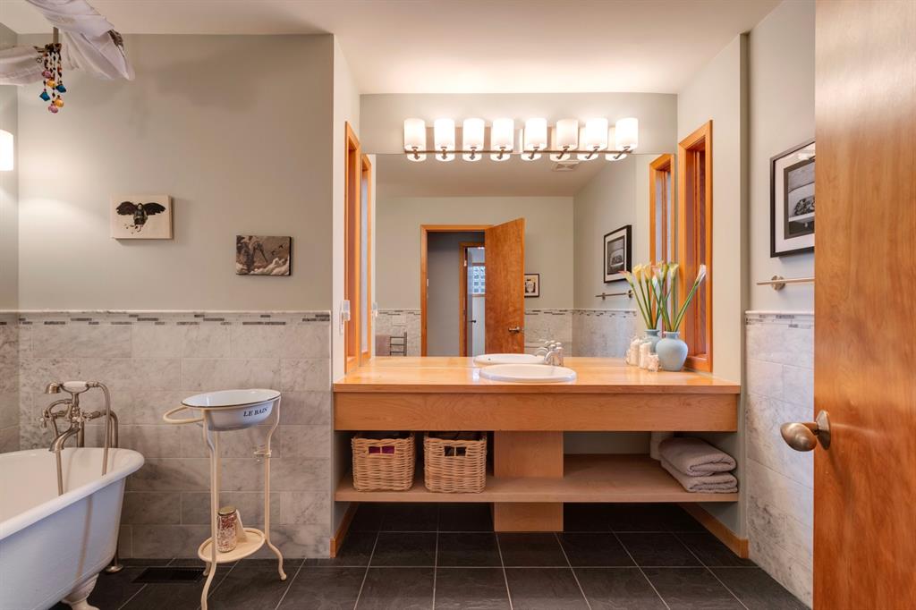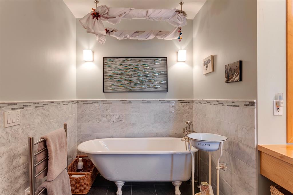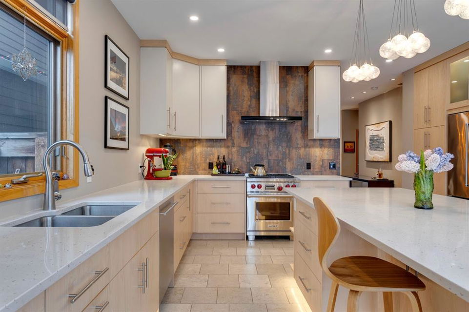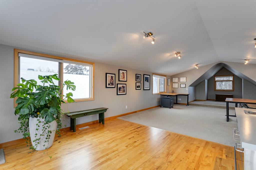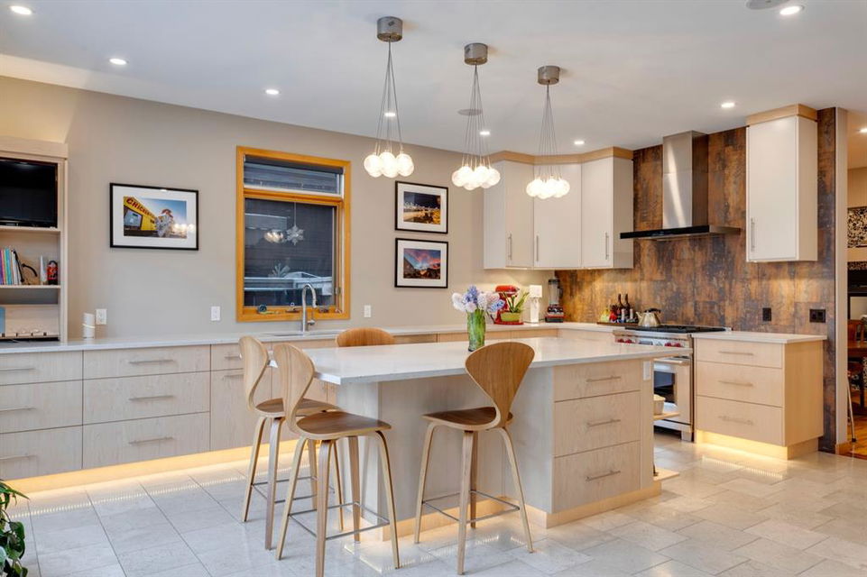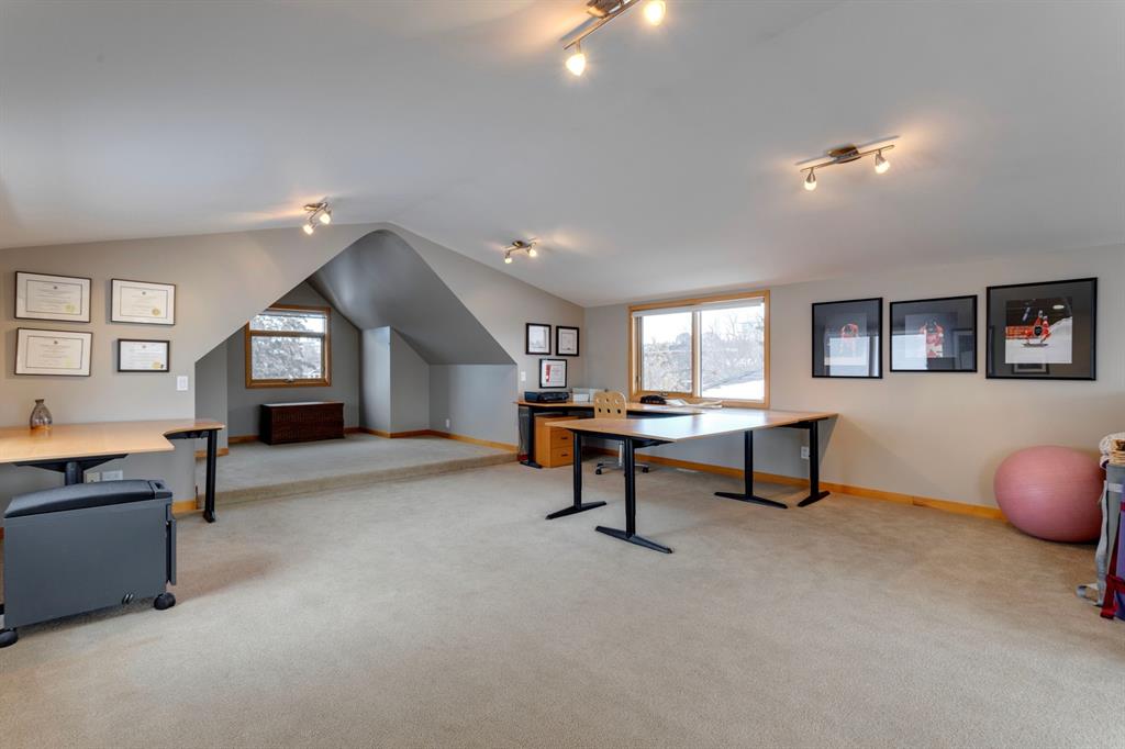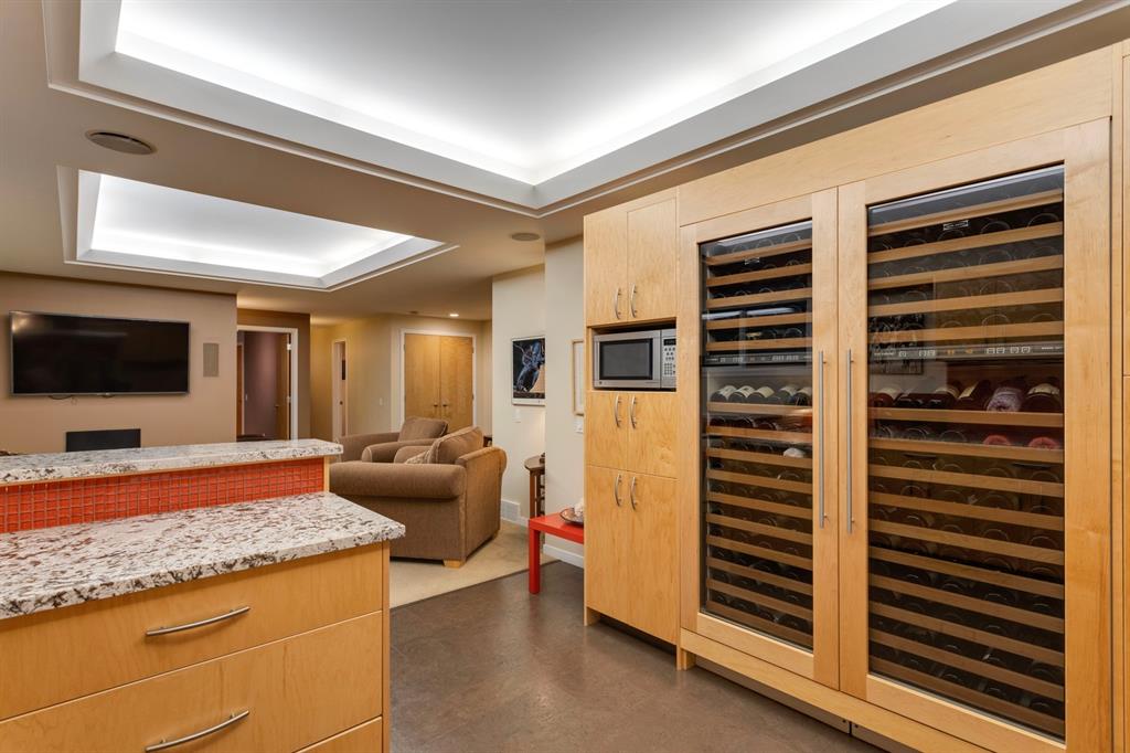 Hillhurst – 410 11A Street NW: Look no further than this immaculately maintained, 2.5-storey home with over 4,100 sqft of development located on one of the most desirable streets in the heart of Kensington. This home has a total of 5 bedrooms and 3.5 baths. Step inside and be greeted by the living room and formal dining room, both separated by a 2-sided fireplace. The heart of the home is the stunning, renovated kitchen that features a large island with seating for 4, quartz countertops, and a suite of high-end stainless steel appliances including a Wolf gas range, hood fan, and convection steam oven, as well as a Kitchen-Aid refrigerator and Blomberg dishwasher. Also on the main floor, you’ll find a serene meditation/quiet room and a large half bath for your guests’ convenience. The 2nd level includes a spacious, bright primary bedroom with a seating area, walk-in closet, 5 pc ensuite with heated floors, dual sinks, and dual shower heads; 2 additional bedrooms – 1 with a walk-in closet; 4 pc main bathroom with a claw tub; and a spacious laundry room with a sink, folding table, and plenty of storage. The 3rd level features a spacious loft area that can be used as a bonus room, office, or workout area with a wet bar and a balcony overlooking the backyard with downtown views. The fully developed lower level boasts a massive wet bar with 2 Sub-Zero wine fridges, a beverage fridge, tons of storage cupboards and cork floor; a rec room with tray ceilings; 2 additional bedrooms and a 4 pc bath with heated floors. Additional features of the home include a heated double-car garage, low-maintenance landscaping, built-in speakers throughout, and a 30’ x 125’ lot located on a quiet, tree-lined street. You’ll be just a short walk from Kensington’s shops & restaurants and minutes from downtown, the Bow River pathway, schools, and parks. Don’t wait, call for more info and schedule your private showing today!