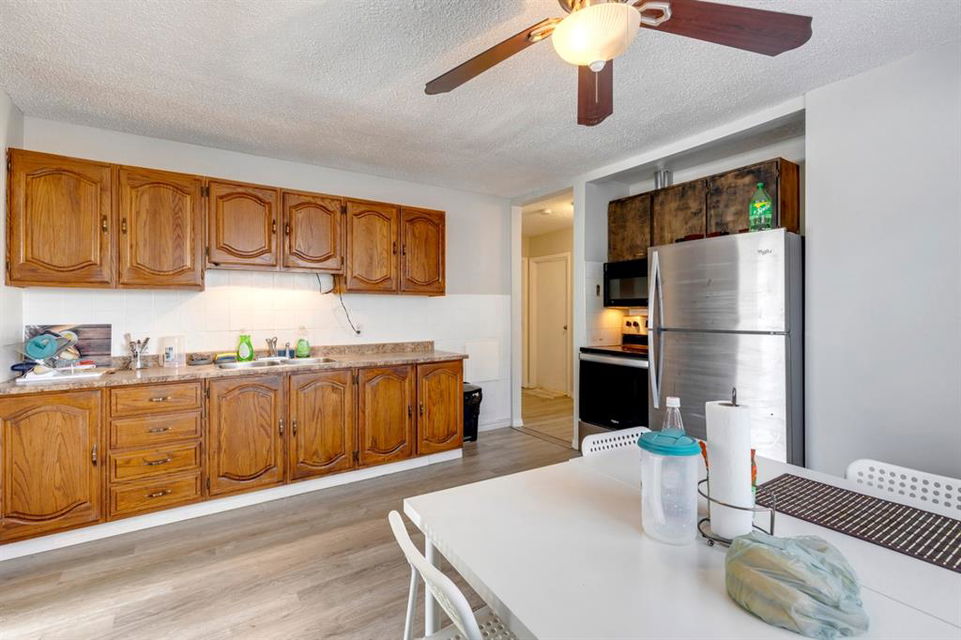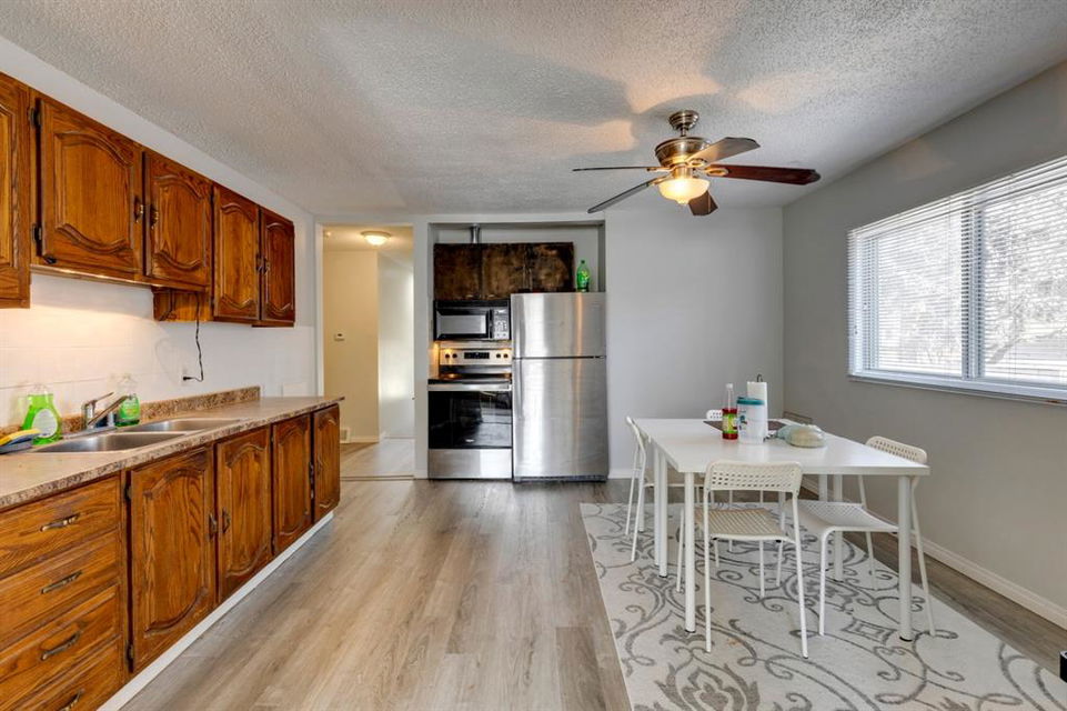 Tuxedo Park – 424 32 Avenue NW: INVESTOR ALERT/FIRST TIME HOME BUYER/CASH COW! Welcome to this 1,309 sq ft bungalow with a total of 7 bedrooms & 4 full bathrooms situated on a 50’ x 120’ lot. The main floor features new grey wall paint, new vinyl plank flooring throughout; living room with bright, south facing window; a spacious eat-in kitchen with stainless steel appliances & ample room for a good-sized dining table; 4 large bedrooms – one with main floor laundry in the closet; two 4 piece bathrooms. The fully developed lower level features 2 illegal suites with shared all-in-one washer/dryer laundry and shared side entrance. The illegal 2 bedroom basement suite, features a kitchen, living room and a renovated 4 pc bathroom. The illegal 1 bedroom basement suite features a family room with cabinets, sink & refrigerator; renovated 4 piece bathroom. The backyard features a patio, storage shed, a heated oversized double car garage and parking for 2 in the rear gravel pad. There is also 1 parking spot at the front of the home on the cement parking pad. Features of this home include: 2 furnaces, a newer hot water tank, interconnected wired smoke/CO detectors in each living area, basement bedrooms have egress windows, newer screen doors, roof on home/garage in 2013. This home provides exceptional revenue income and a great ROI; ideal for the first-time buyer (Live up, Rent Down) or investor as a holding property for future redevelopment with monthly income of $3,475. Located just minutes to downtown, with quick access to Highway 1 & Deerfoot Trail, close to transportation, schools & parks. Call for more info!