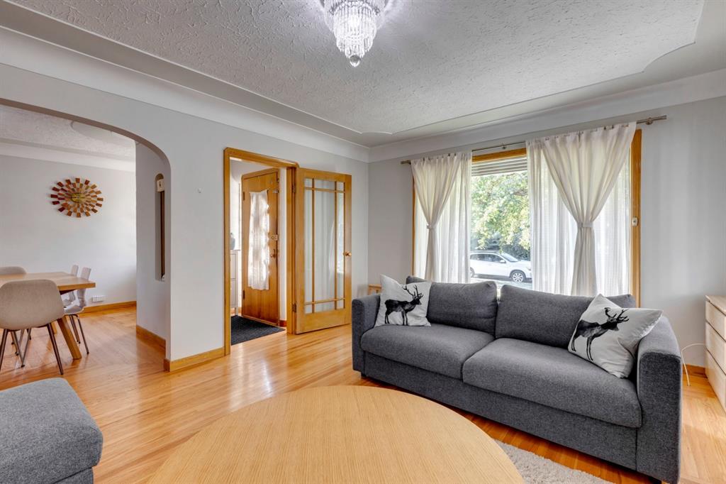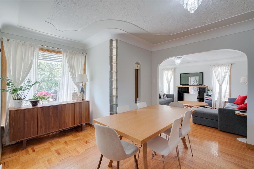 Winston Heights – 428 19 Avenue NE: Welcome to this solid 1,112 sq ft bungalow situated in a prime, inner-city location on a full size 50’ x 125’ RC-2 lot with a south facing front yard. Custom built with many upgrades and built-ins. The main floor features a kitchen with corner windows and eat-in area; separate dining room, living room, primary bedroom, additional bedroom and 4 pc bathroom. There is also ample storage including a separate closet, built-in storage in the dining room and hallway. Upgrades include beautiful hardwood floors on the main floor, 100 amp panel, 90’s furnace, and roof shingles updated less than 10 years ago. The partially developed lower level has 2 additional (illegal) bedrooms, 3 pc bathroom, laundry and cold room storage. The treed, landscaped and fenced yard has a front driveway with curb cut and room for 4 cars in the long driveway. The former single garage was removed last year. This home is located in Winston Heights – just minutes to downtown, close to Centre Street, Highway 1 and 2 for transportation, steps away from major bus routes, parks, schools and restaurants. Enjoy this great home, plan for renovations or future infill development. Call for more info!