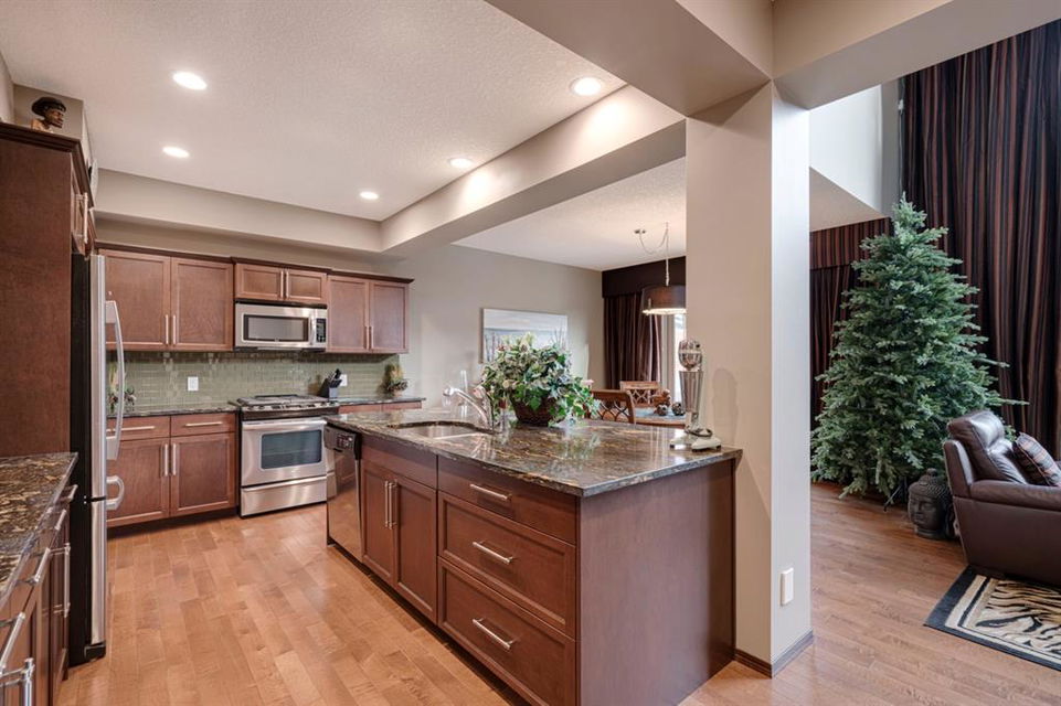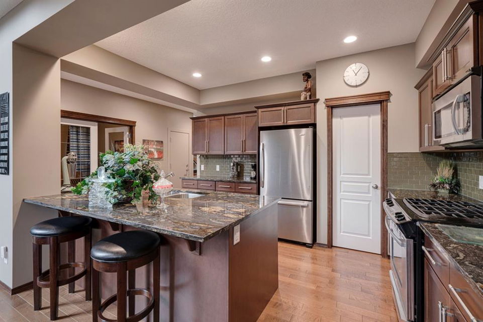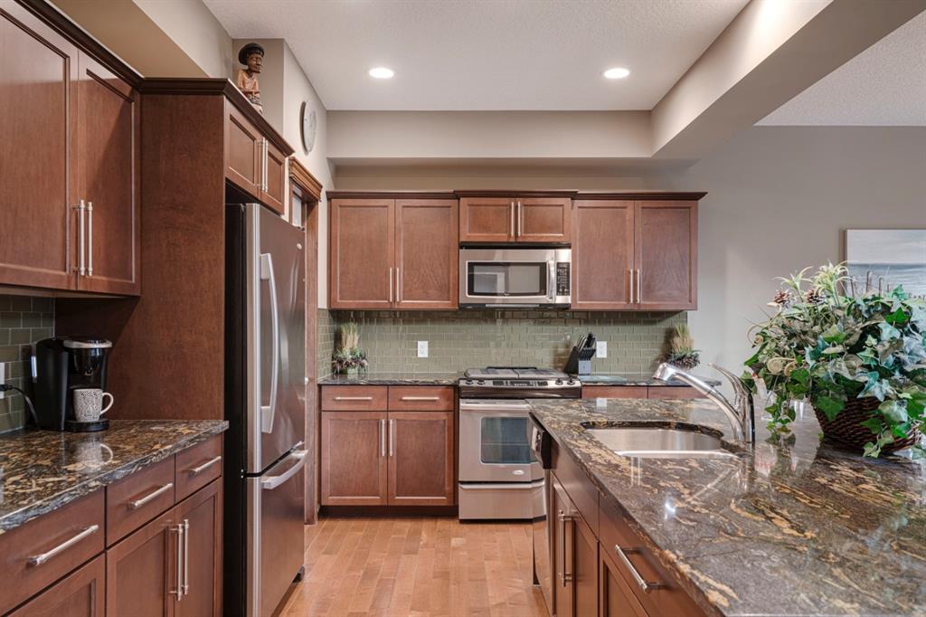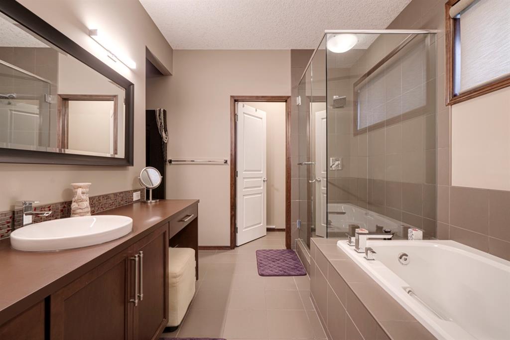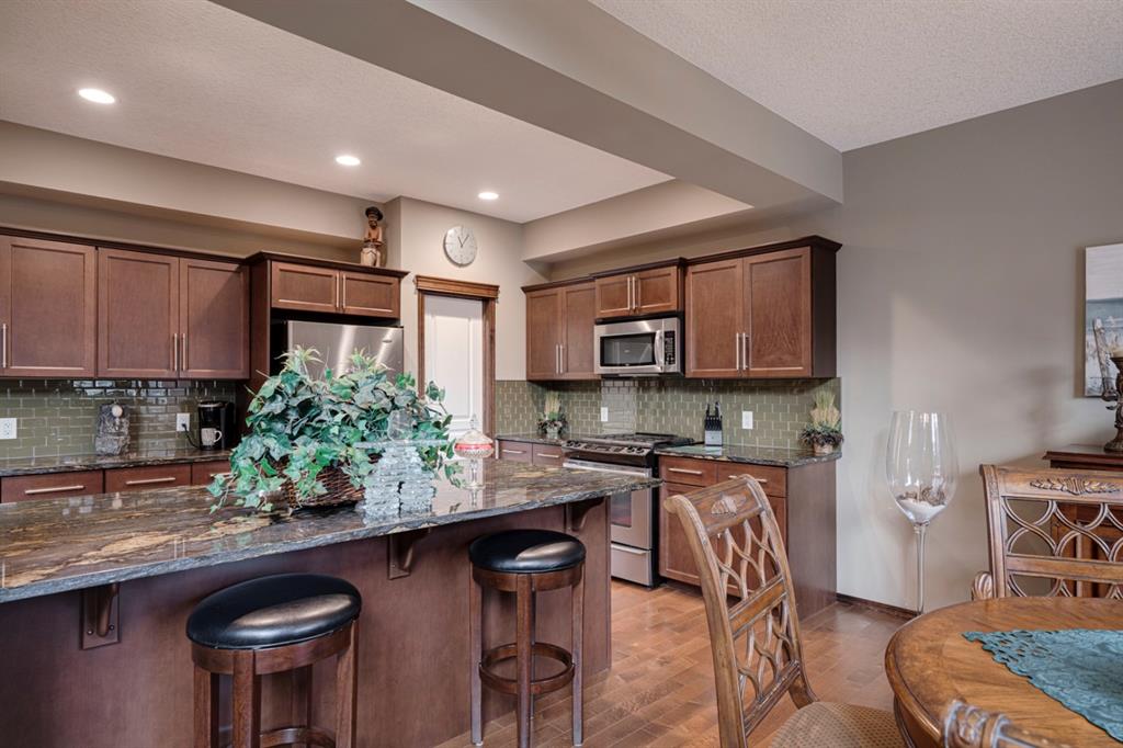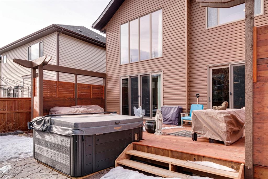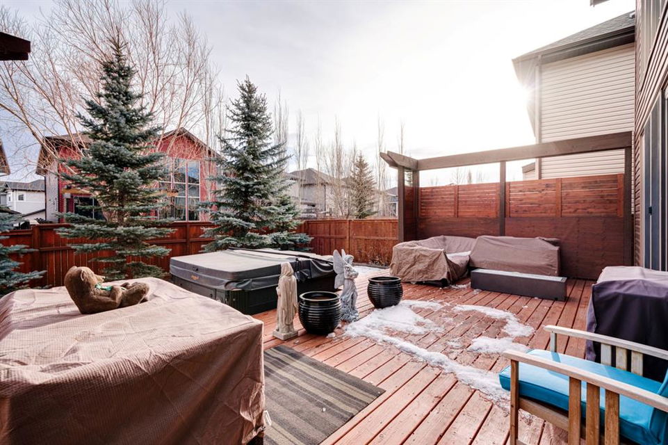 Auburn Bay – 46 Auburn Shores Way SE: Welcome to this 3 + 1 bedroom, 3.5 bathroom Cardel built 2 storey with a LEGAL basement suite. With over 3,300 sq ft of development this home has lots of room for the growing family. The main floor features an island kitchen with granite countertops, pantry and stainless steel appliances with gas range; breakfast nook with sliding doors to the large back deck; open to great room with 2 storey ceilings, dual patio doors to the deck and a stunning 2 storey stone gas fireplace; spacious den with glass doors and 2 pc bathroom. The upper level features a spacious primary bedroom with gas fireplace and glass feature wall, 4 pc ensuite with soaker tub, separate shower and walk-in closet; 2 additional good-sized bedrooms; bonus room with west-facing mountain views; laundry room with ample storage cabinets; 4 pc main bathroom. The recently completed fully developed lower level features a LEGAL basement suite with separate front entrance. The suite also includes a beautiful kitchen with apartment-sized stainless steel appliances; dining area; feature stone wall in kitchen and dining area; living room; bedroom; 3 pc bathroom with large, custom shower and stacked washer and dryer. Suite has a separate furnace and polished concrete floors throughout. Additional features include: upgraded 200 amp service; beautifully landscaped yard; 3 outdoor gas lines – 2 in back and one out front; full-width back deck with privacy walls and lower patio; large front concrete patio with lighted stone wall. Located steps away from Auburn Bay Lake which offers year-round activities. Close to South Health Campus, numerous restaurants, Cineplex Cinemas, YMCA + multiple parks and playgrounds in the neighbourhood. Quick access to Stoney Trail or QE II. Call for more info!
