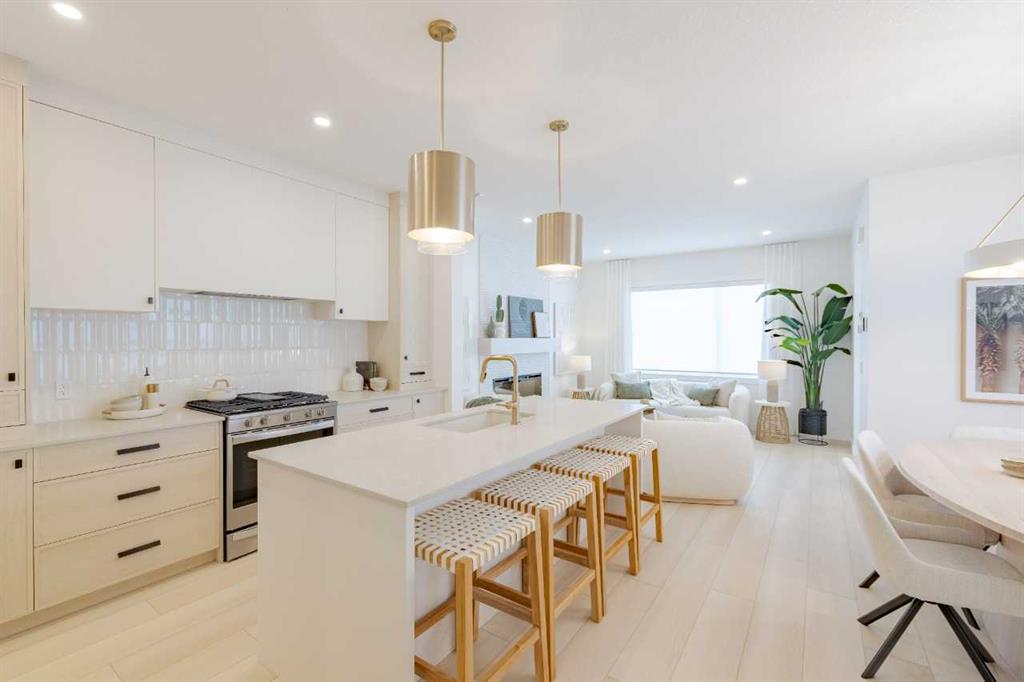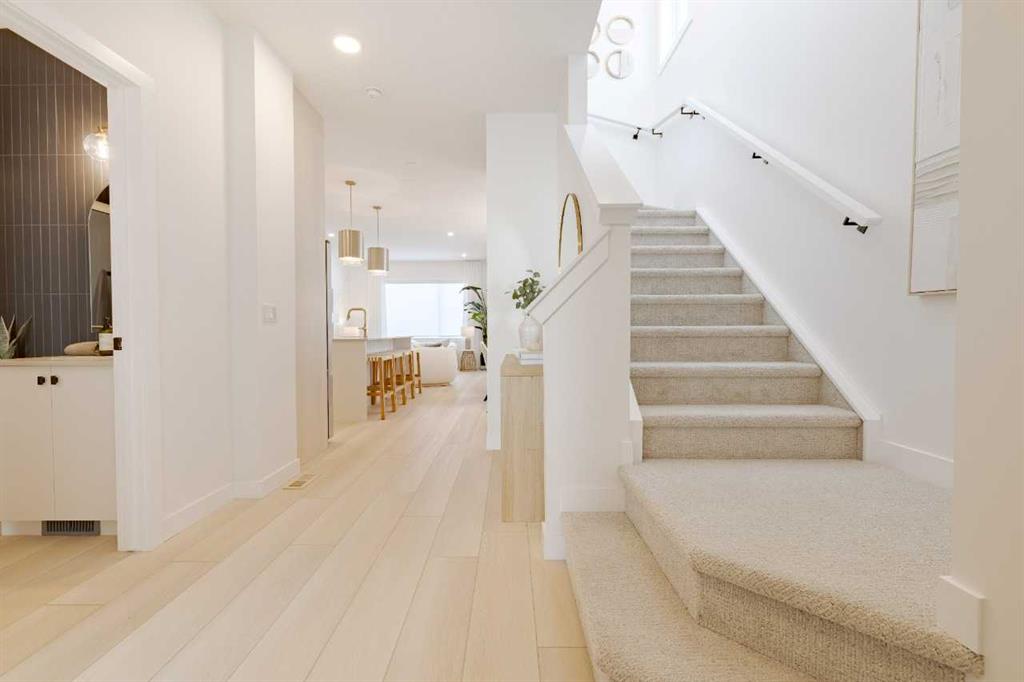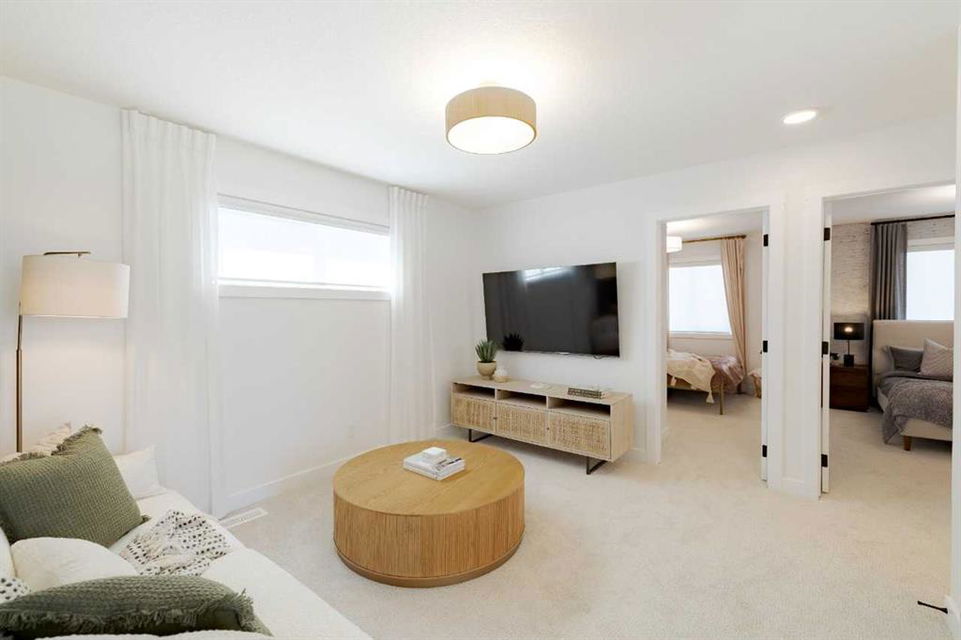 Shane Homes proudly presents the Vilano II, a well designed and highly customizable laned home in SE Calgary’s newest community of Rose Ranch. Offering 4 bedrooms and 3 full bathrooms, this home features a functional main floor bedroom conveniently located next to a full bath. The open concept main level showcases a bright living area, dining nook, and a modern kitchen with central island and walk in pantry, ideal for both everyday living and entertaining. Upstairs, you will find three additional bedrooms, a spacious family room, and a private owner’s bedroom complete with a walk in closet and an ensuite featuring dual vanities. A side by side upper floor laundry adds everyday convenience. The home also includes a side entrance and an undeveloped basement ready for potential future development. Built by Shane Homes. Photos are of a completed showhome and are for illustrative purposes only.