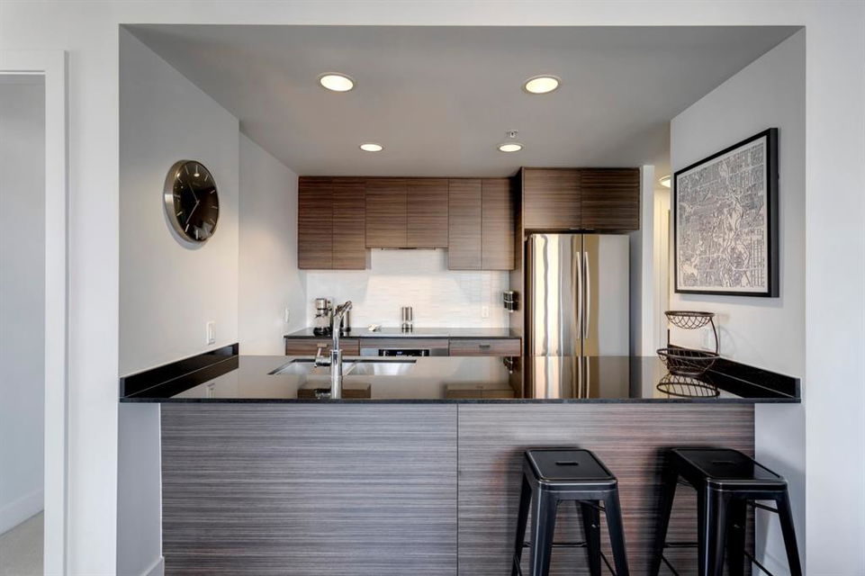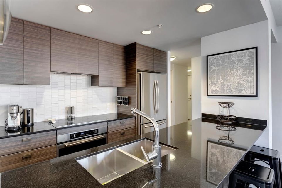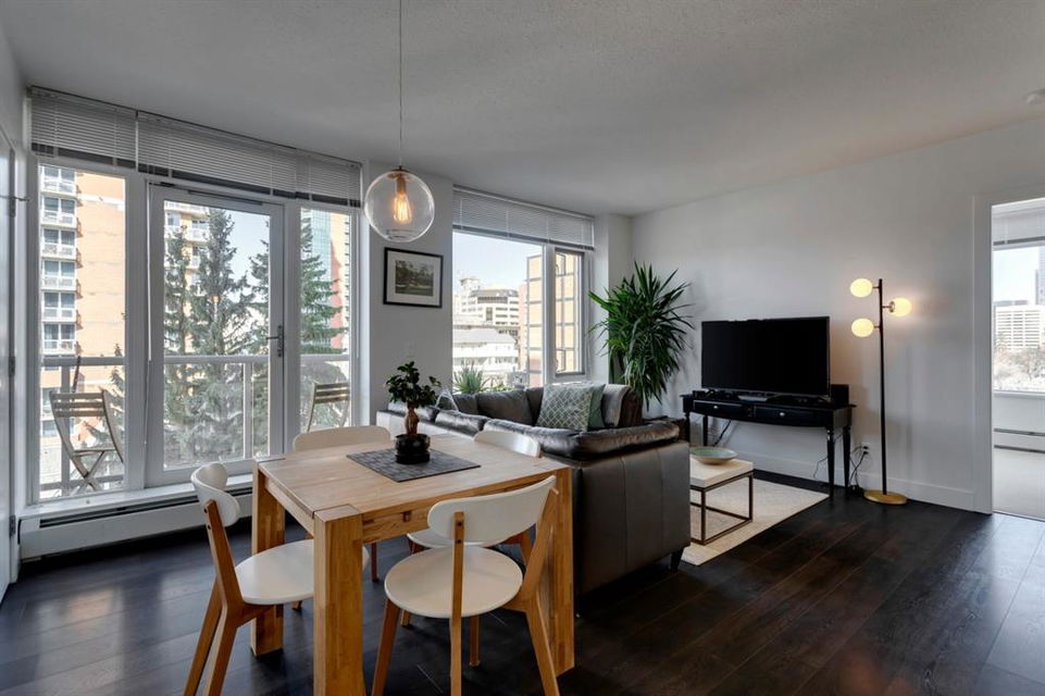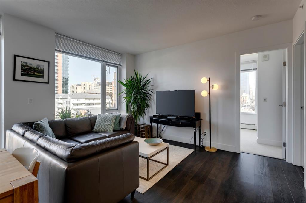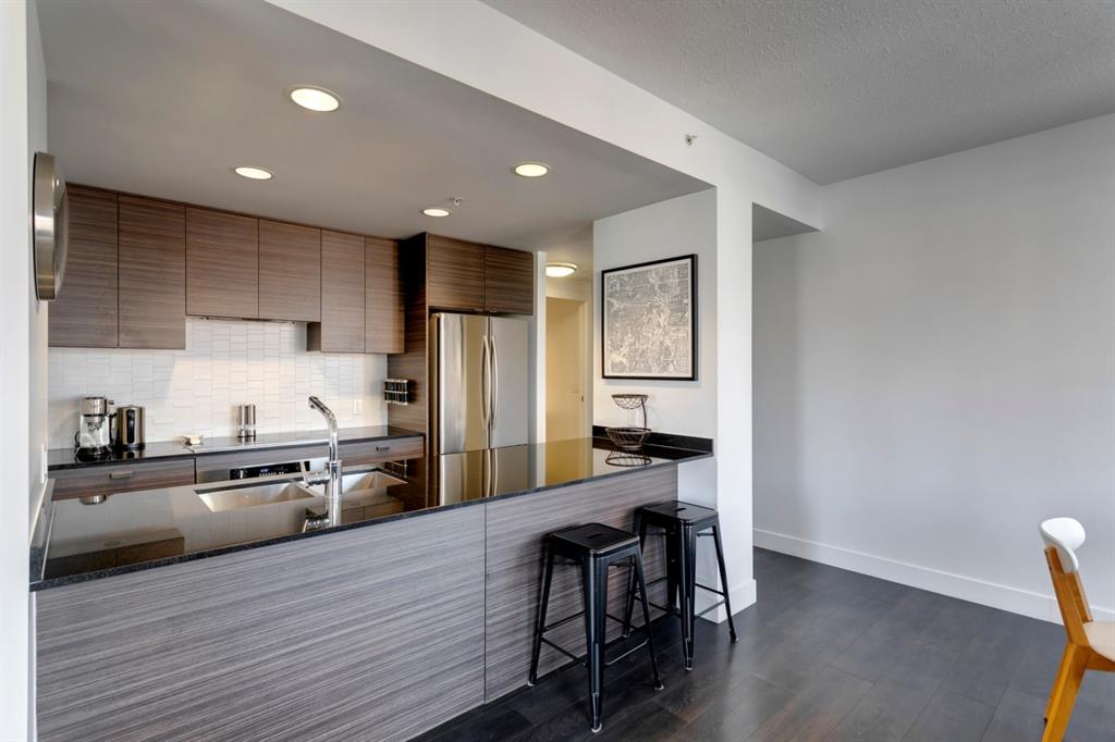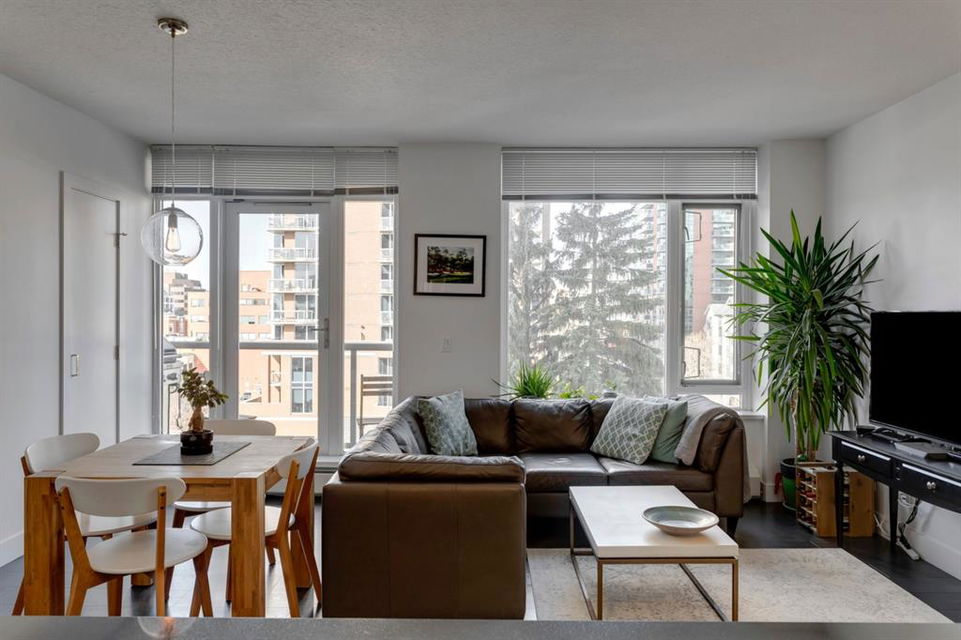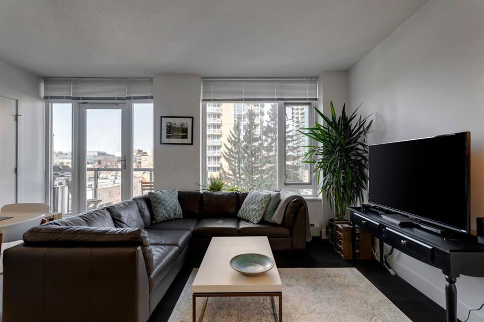 Beltline – #506, 1500 7 Street SW: Welcome to this west-facing 2 bedroom + 2 full bathroom CORNER UNIT in the Drake building. This open-concept floor plan features 802 sq ft of living space. The kitchen features granite countertops, breakfast bar with seating for 4 and stainless steel appliances; living room and dining area to the west facing balcony; primary bedroom with 4 pc ensuite; additional bedroom with plenty of light and views to the north and west from the many windows and 3 pc main bathroom. This unit also comes with titled underground parking and in-suite laundry. This property offers a fantastic location being steps away from trendy 17th Avenue and its many shops and restaurants; a short walk to downtown, plenty of public transportation, schools and parks. Call for more info.
