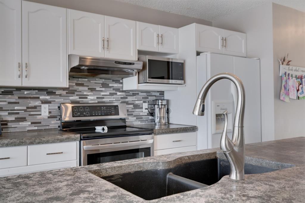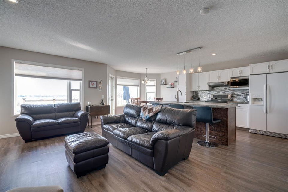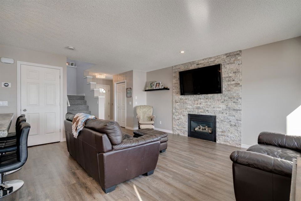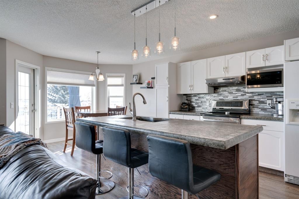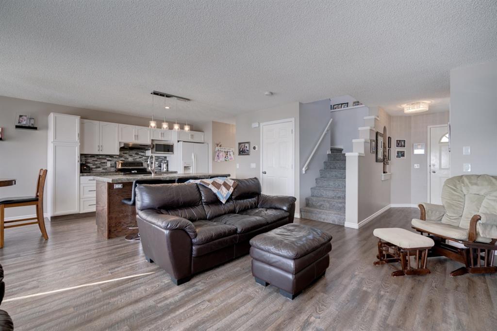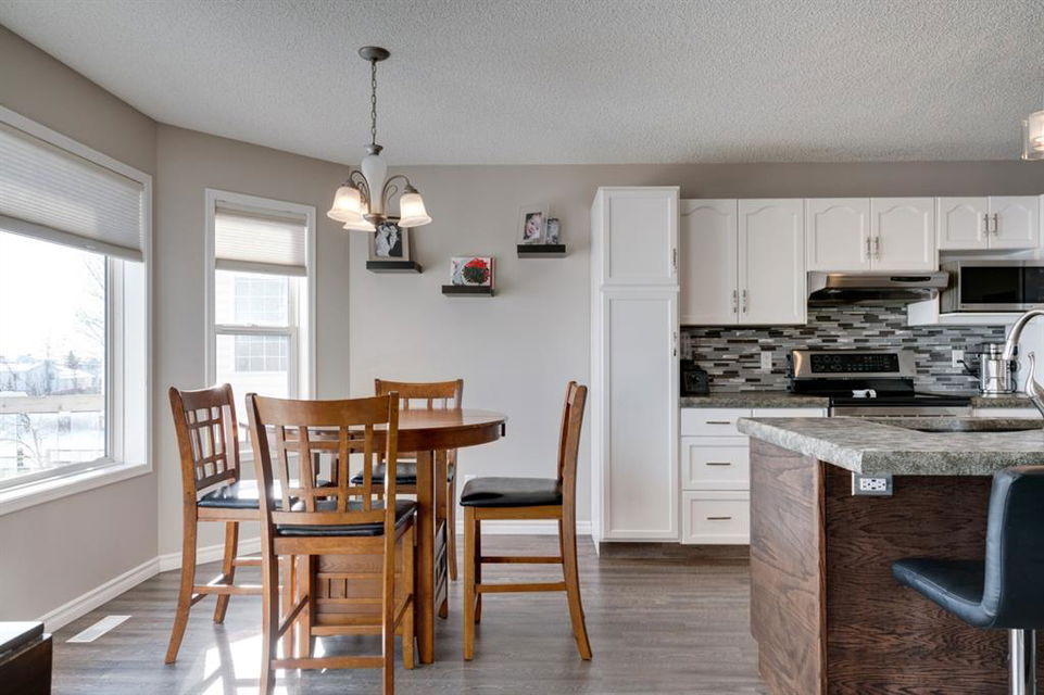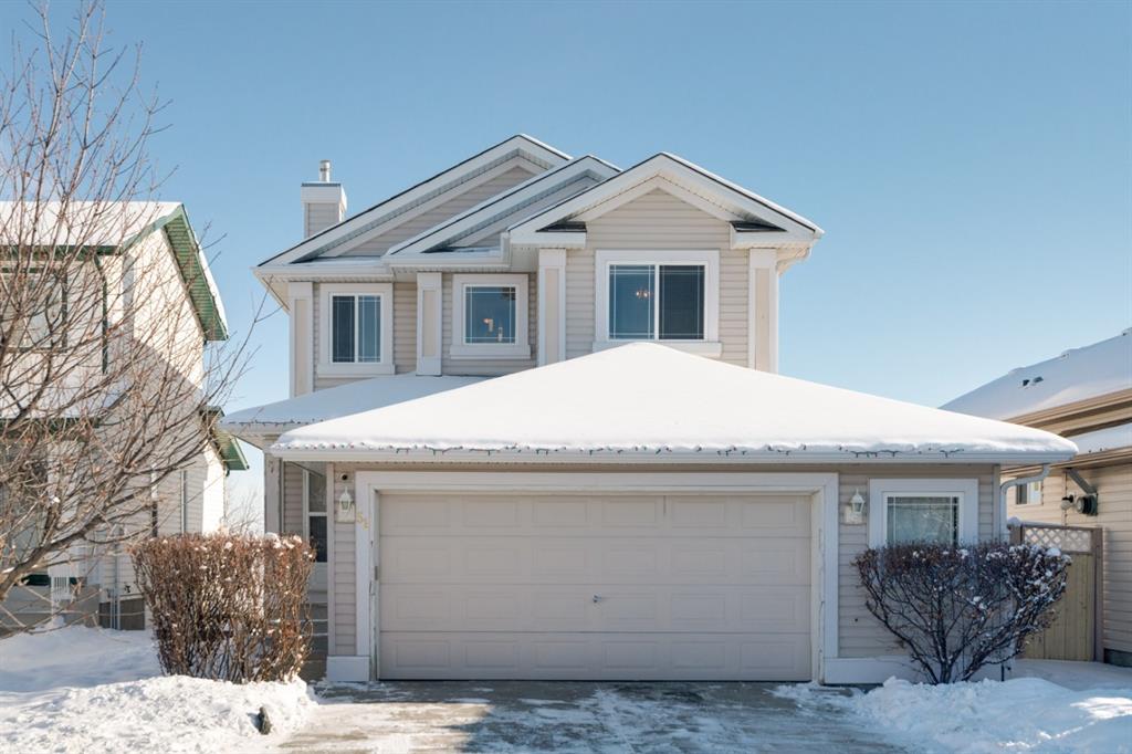 Coventry Hills – 51 Coverton Green NE: Welcome to this excellent family home situated on a quiet cul-de-sac location across the street from a playground and backing onto an unobstructed green space with views and walking paths. This two-storey home with 1,978 sqft of total development has 3 bedrooms, 3.5 bathrooms, a fully finished walk-out basement and oversized double car garage with space for a workshop. The open-concept main floor features a kitchen with center island, breakfast nook with a single French door to the recently updated deck; a family room with gas fireplace and 2 pc bathroom. The upper level has a master bedroom with views of the open green space, 4 pc ensuite with dual-head shower and walk-in closet; 2 additional good-sized bedrooms and 4 pc main bathroom with attached laundry room. The lower level walk-out is fully developed with a large rec room and 3 pc bathroom. Recent upgrades include carpet, deck, furnace, hot water tank, water softener and A/C among others. This home is close to all amenities including schools, parks, playgrounds, walking paths, shopping and access to major roadways. Call for more info.