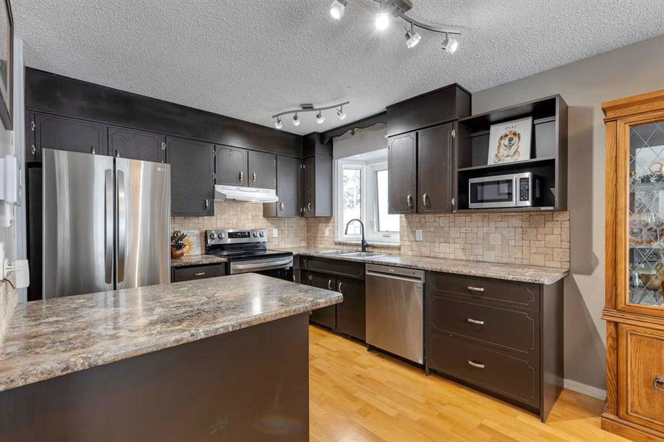 Marlborough – 5207 Marbank Drive NE: This bi-level home features 1,923 sq ft of development, 2 + 2 bedrooms, 2 full bathrooms and a double detached garage. The open main floor has a kitchen with stainless steel appliances, a peninsula with storage; a bright dining area, a large living room, a primary bedroom, an additional bedroom and a 4 pc main bathroom. The fully developed lower level has 2 additional bedrooms, a rec room which is currently used as a bedroom, 3 pc bathroom, and a spacious laundry room with kitchenette cabinets. Recent updates include new Lux Windows in 2020, Stainless steel appliances in 2023, roof on garage 2023 + more! This great home is situated on a 5,984 sq ft lot with a spacious backyard with a concrete patio, a detached double-car garage, and an asphalt parking pad to accommodate additional vehicles. Located near schools, playgrounds, restaurants, and shopping at the TransCanada Centre, with quick access to Highway 1, Deerfoot Trail (QE II), and Stoney Trail. Turn-key home. Quick possession available. Excellent Bi-level layout with stairs at entry leading to the main and lower level, ideal for access and future development. Call for more info!
