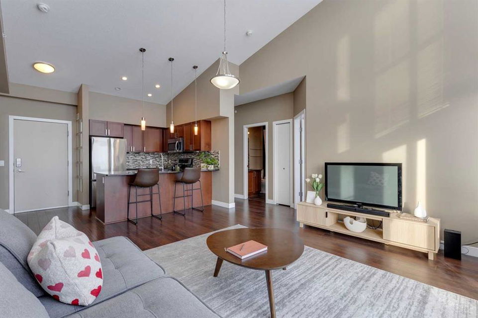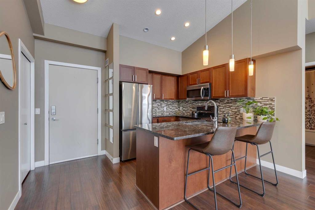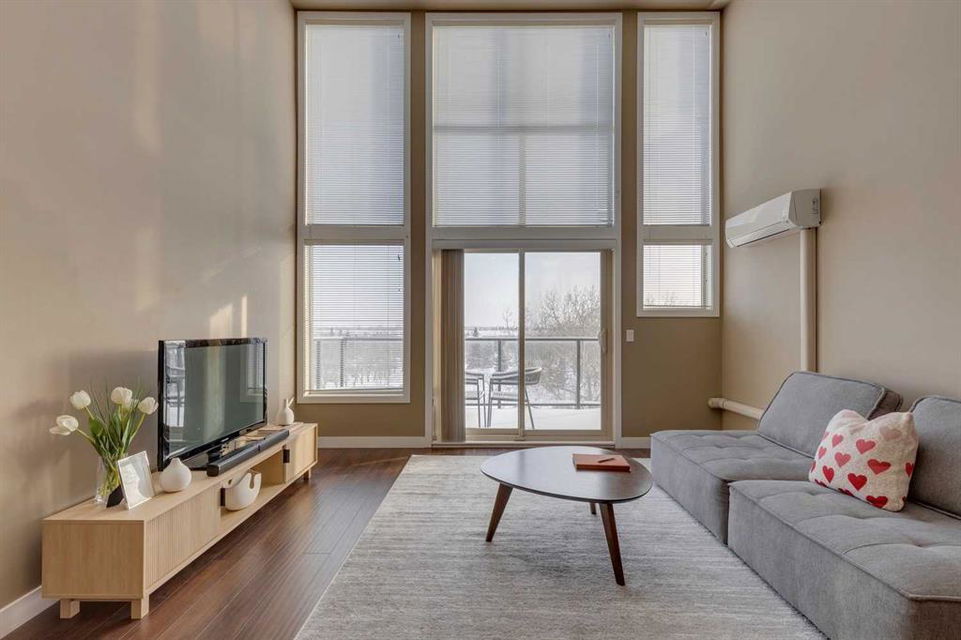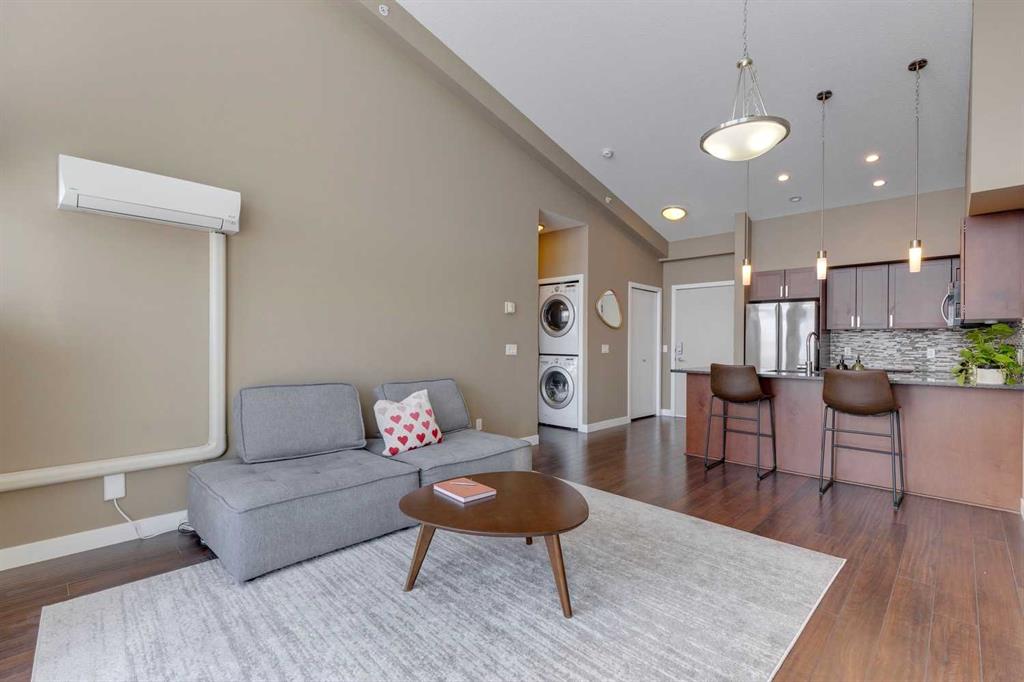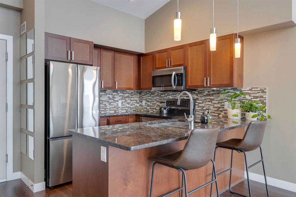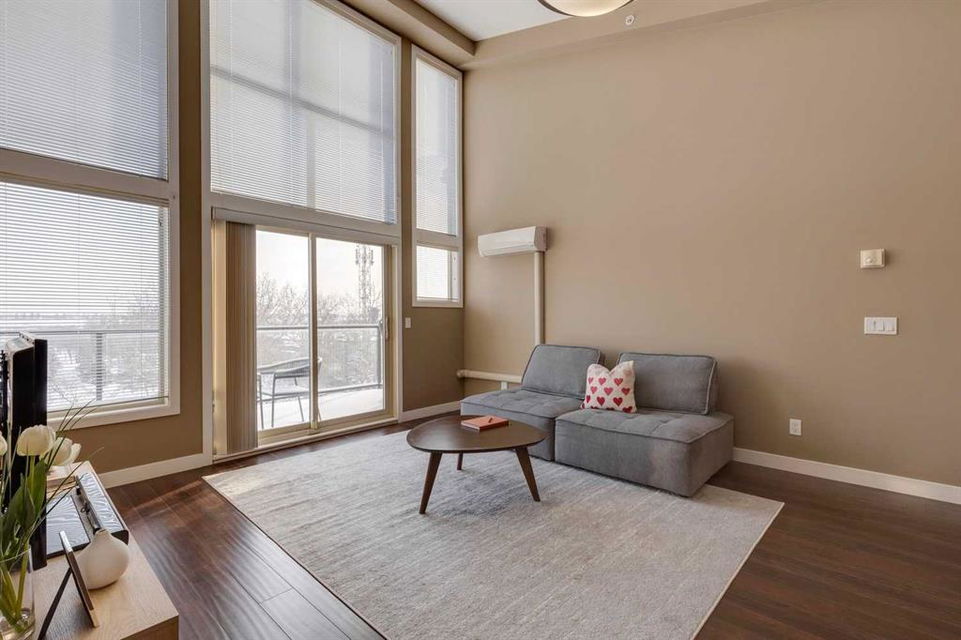 Highland Park – #532, 4303 1 Street NE: This exquisite vaulted top floor unit features 829 sq ft, 2 bedrooms, 2 full bathrooms and a den. Step into the living room, where vaulted ceilings create an airy, spacious atmosphere, complemented by an abundance of natural light that bathes the entire space. The open-concept layout, connecting the living room to the well-appointed kitchen with stainless steel appliances, granite countertops and breakfast bar provides seating for 3. The primary bedroom is a true retreat, featuring a walk-thru closet and an ensuite bathroom for a touch of luxury. The second bedroom is equally inviting, providing flexibility for guests or a home office. Additional features of this unit are an in-wall air conditioner (A/C), in-suite laundry, underground parking stall and storage locker. Located in Highland Park offering an excellent central location just steps away from a park, off-leash dog area, schools, and public transportation + quick access to major traffic routes. Call for more info!