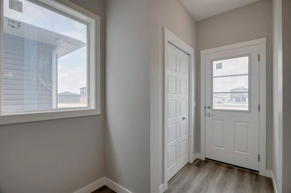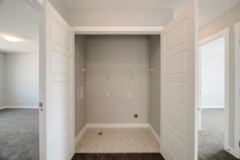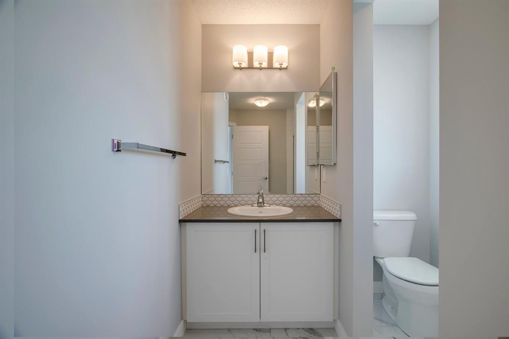 Cornerstone – 56 Cornerstone Park NE: Welcome to this 1,513 sq ft Whistler home built by Shane Homes. This 2-storey home features 3 bedrooms & 2.5 bathrooms with a gravel parking pad and a separate side entrance. The main floor features a kitchen with island, large walk-in pantry, Whirlpool S/S appliances; dining room with art niches, and living room. The second floor has a master bedroom with 3 pc ensuite & large walk-in closet; 2 additional bedrooms, 4 pc main bathroom, and side-by-side laundry. The basement remains unspoiled with additional access from the side entrance. This home comes standard with Alberta New Home Warranty. Located in Cornerstone with plenty of future parks, school spaces and LRT stations; excellent access to the airport, Stoney Trail and Deerfoot. Other Models Available through the showhome. Showhome Hours Mon-Thurs: 2 – 8 PM, Fri: Closed, Sat/Sun/Holiday: 12 – 5 PM. Property is 100% completed **Render from Elevation C.** Call for more info!