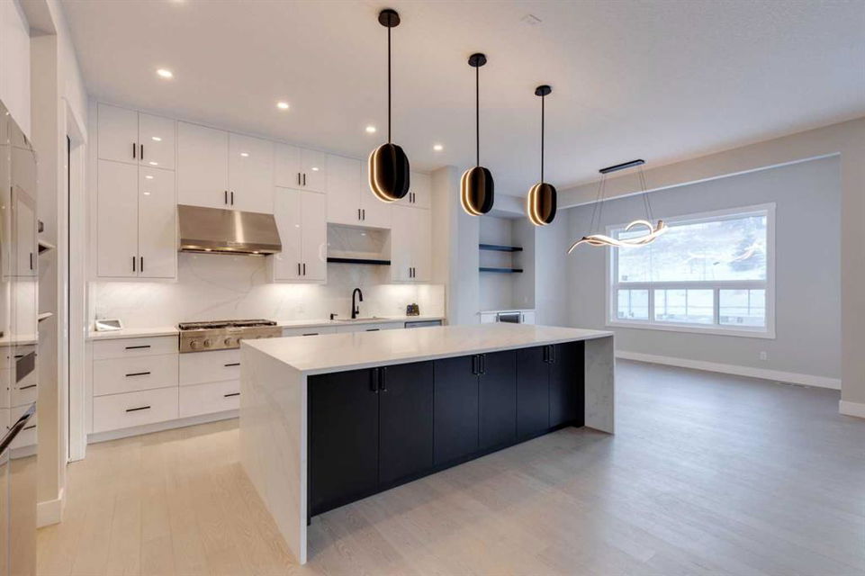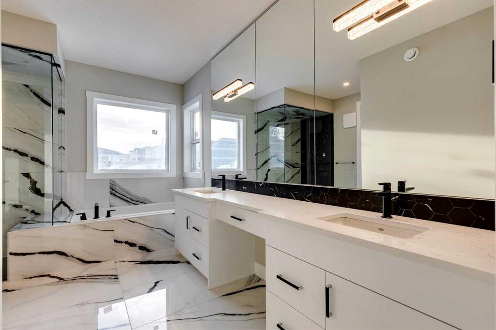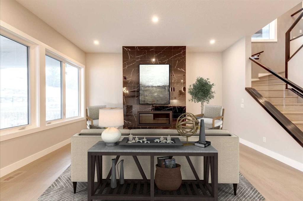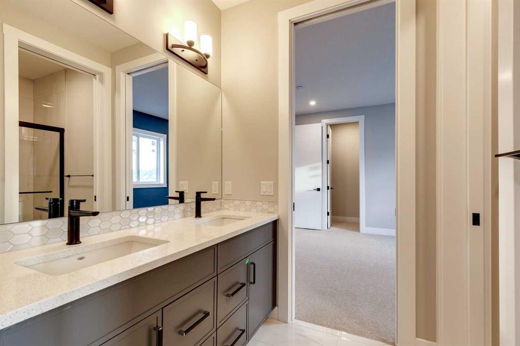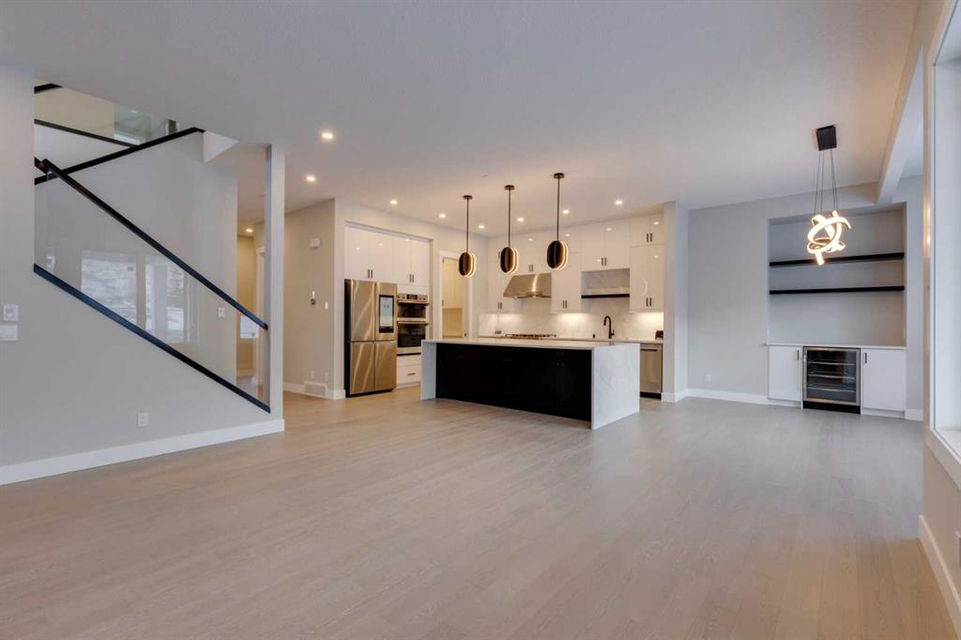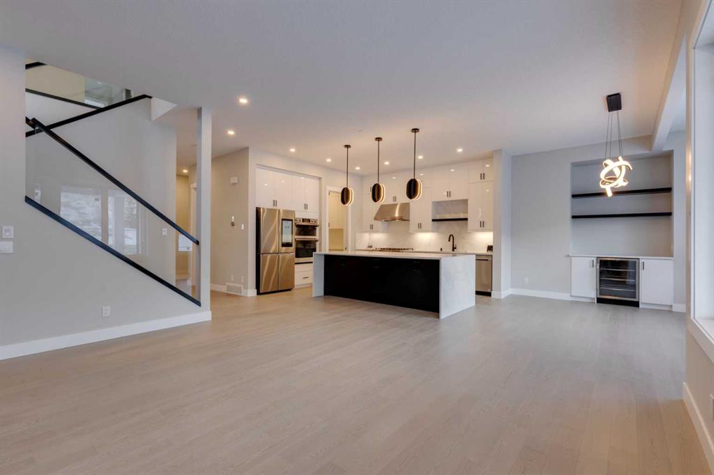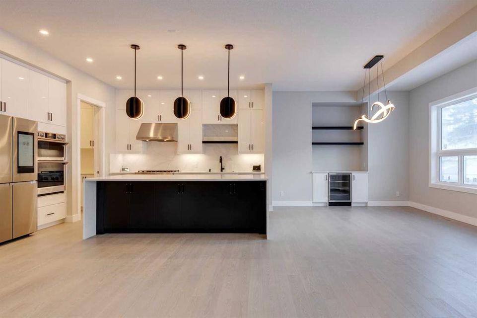 Hamptons – 61 Hampstead Mews NW: Fantastic opportunity to own a brand new Saffron model built by Shane Homes in Enclave at the Hamptons in the established neighbourhood of Hamptons. This fully developed home features over 4,400 sq ft of development, 4 + 1 bedrooms, 4.5 bathrooms, an attached double-car heated garage, and central air conditioning + many more upgrades. This home features a spacious main floor with hardwood floors throughout; a kitchen with a walk-through butler’s pantry, stainless steel appliances including refrigerator, built-in microwave combination wall oven, dishwasher, gas cooktop, and hood fan, a central island with waterfall countertops and seating for 5; a breakfast nook with built-in storage including lower cabinets, shelves and beverage fridge; a living room with southwest facing windows and tiled, electric fireplace with floating wood hearth; a lifestyle room which can be used as a formal dining room or den and a 2 piece powder room with built-in vanity. The upper level features a large primary bedroom with walk-in closet, a 6 pc ensuite including dual sinks with vanity table, soaker tub, tiled glass shower with steam shower system and toilet with separate door; 2 additional bedrooms separated with a 4 piece Jack and Jill bathroom, one of which has a walk-in closet; a 4th bedroom which includes a spacious walk-in closet and 3 piece ensuite with shower; a vaulted bonus room and a laundry room with built-in upper cabinets, folding counter and sink. The fully developed lower level includes a family room; a rec room with a built-in wet bar including beverage fridge, dishwasher, and microwave; a dedicated exercise room/gym area; a large 5th bedroom with walk-in closet and a 4 piece bathroom. The southwest-facing backyard includes a covered deck and backs onto a green belt with a walking path. This brand-new home built by Shane Homes is completed and is ready for possession in a mature neighbourhood. The sought-after community of Hamptons is close to many amenities including parks, playgrounds, tennis courts, hockey rink, Hamptons Golf Club, and access to Shaganappi Trail and Stoney Trail. Call for more info!