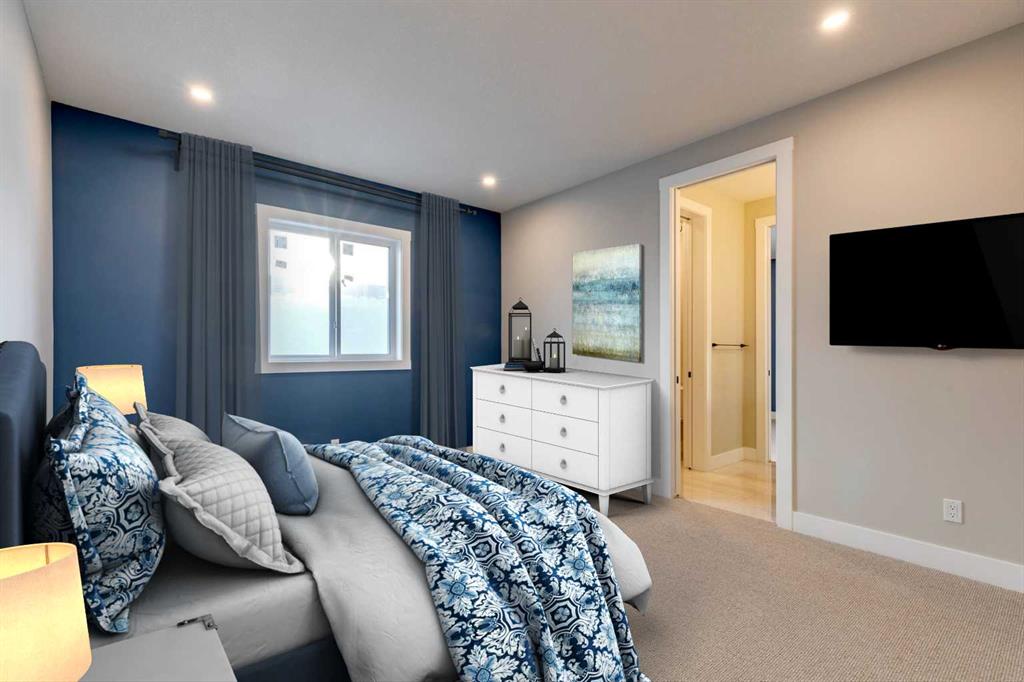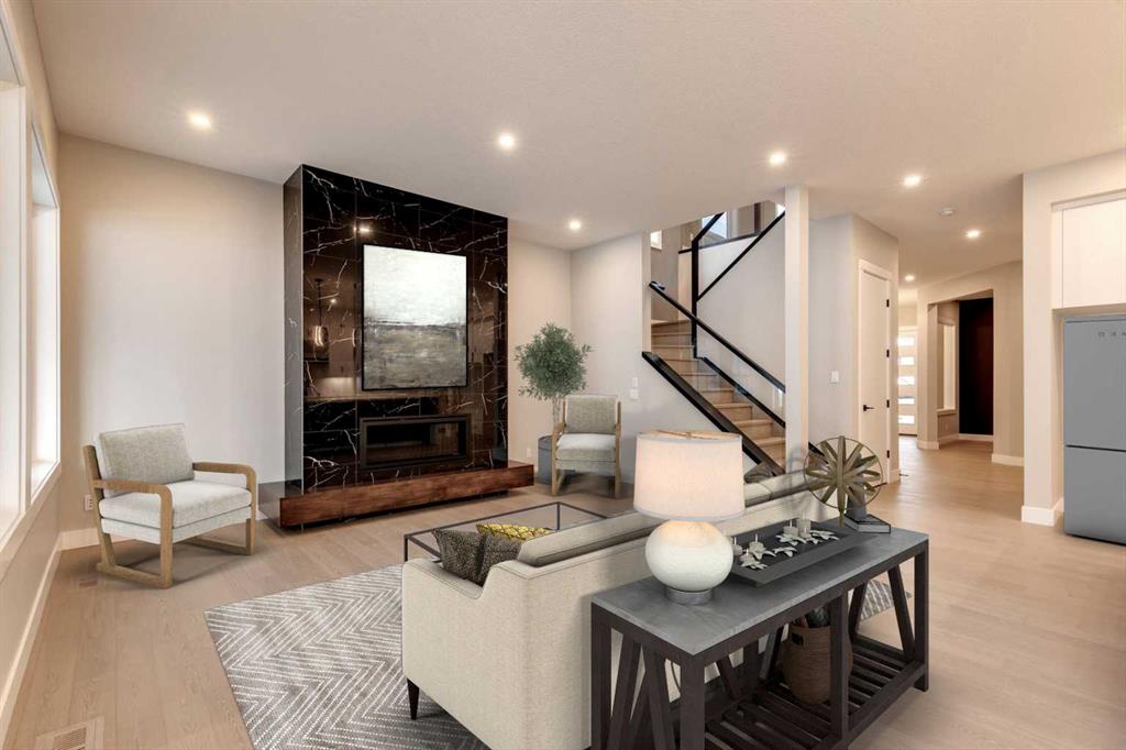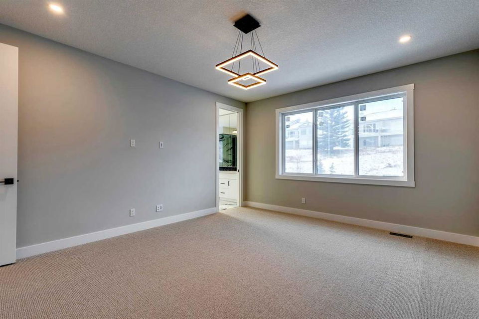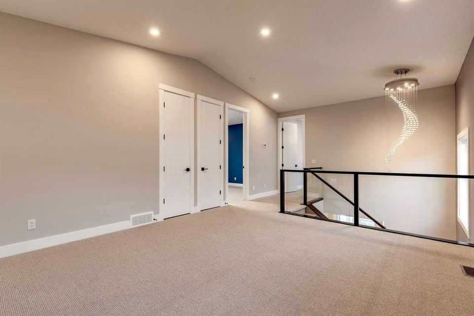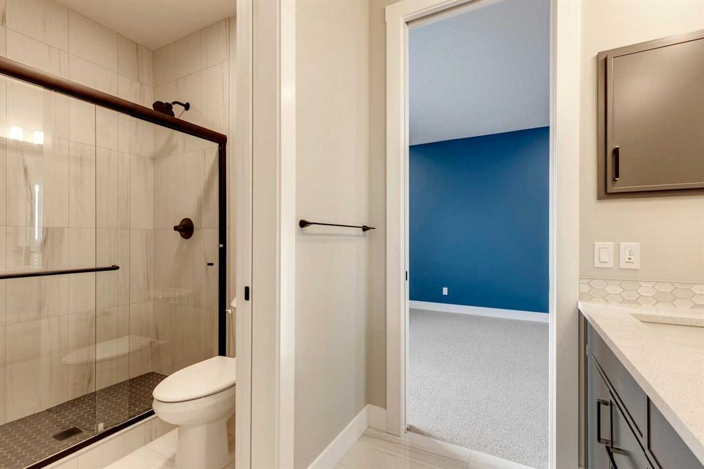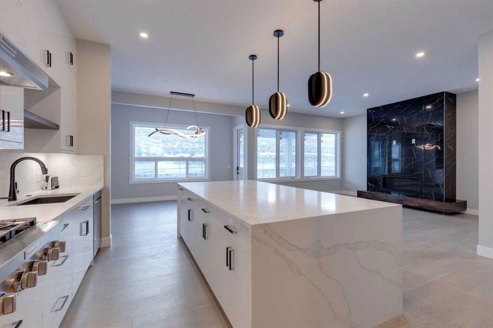 Hamptons – 61 Hampstead Mews NW: Fantastic opportunity to own a brand new Saffron model built by Shane Homes in Enclave at the Hamptons in the established neighbourhood of Hamptons. This fully developed home features over 4,400 sq ft of development, 4 + 1 bedrooms, 4.5 bathrooms, an attached double-car heated garage, and central air conditioning + many more upgrades. This home features a spacious main floor with hardwood floors throughout; a kitchen with a walk-through butler’s pantry, stainless steel appliances including refrigerator, built-in microwave combination wall oven, dishwasher, gas cooktop, and hood fan, a central island with waterfall countertops and seating for 5; a breakfast nook with built-in storage including lower cabinets, shelves and beverage fridge; a living room with southwest facing windows and tiled, electric fireplace with floating wood hearth; a lifestyle room which can be used as a formal dining room or den and a 2 piece powder room with built-in vanity. The upper level features a large primary bedroom with walk-in closet, a 6 pc ensuite including dual sinks with vanity table, soaker tub, tiled glass shower with steam shower system and toilet with separate door; 2 additional bedrooms separated with a 4 piece Jack and Jill bathroom, one of which has a walk-in closet; a 4th bedroom which includes a spacious walk-in closet and 3 piece ensuite with shower; a vaulted bonus room and a laundry room with built-in upper cabinets, folding counter and sink. The fully developed lower level includes a family room; a rec room with a built-in wet bar including beverage fridge, dishwasher, and microwave; a dedicated exercise room/gym area; a large 5th bedroom with walk-in closet and a 4 piece bathroom. The southwest-facing backyard includes a covered deck and backs onto a green belt with a walking path. This brand-new home built by Shane Homes is completed and is ready for possession in a mature neighbourhood. The sought-after community of Hamptons is close to many amenities including parks, playgrounds, tennis courts, hockey rink, Hamptons Golf Club, and access to Shaganappi Trail and Stoney Trail. Call for more info!