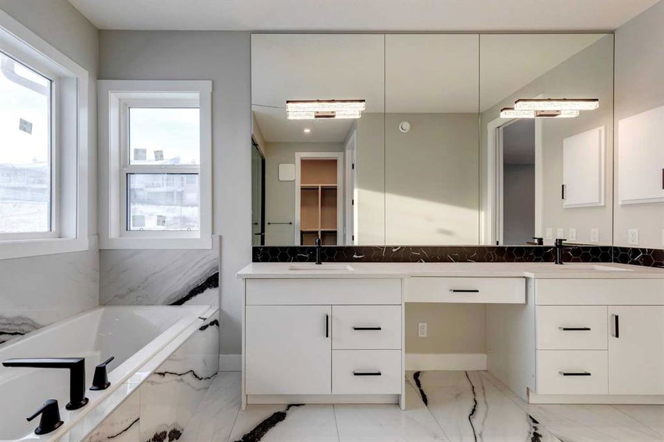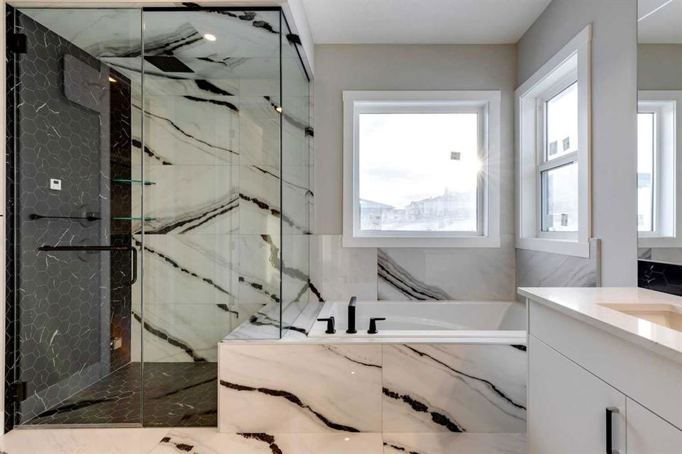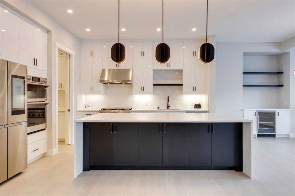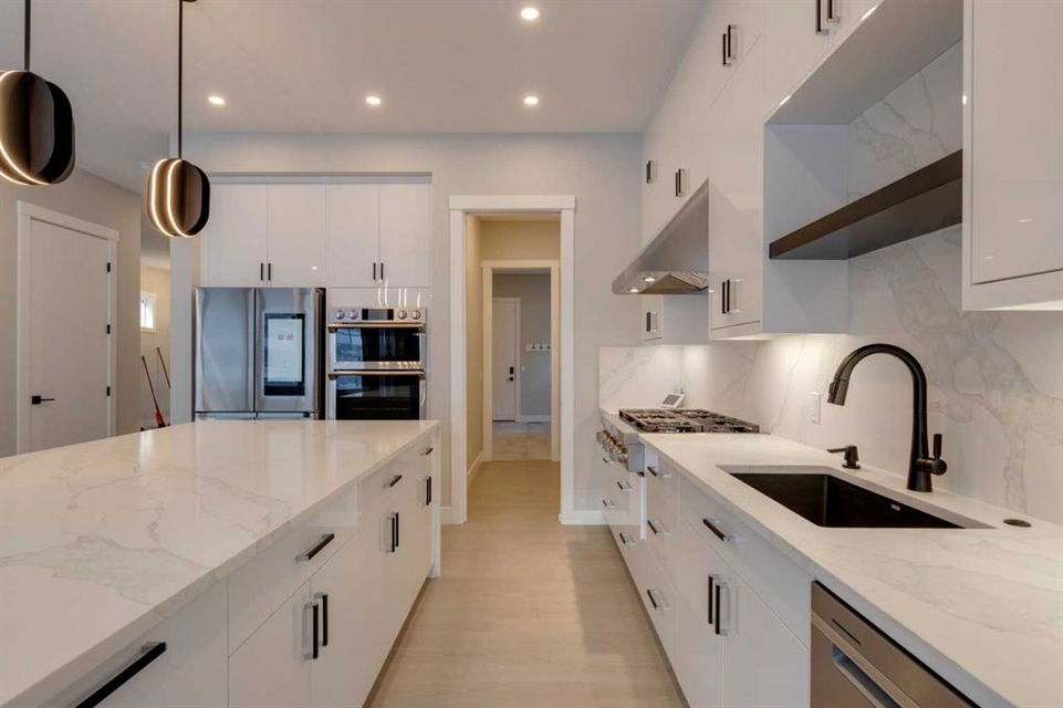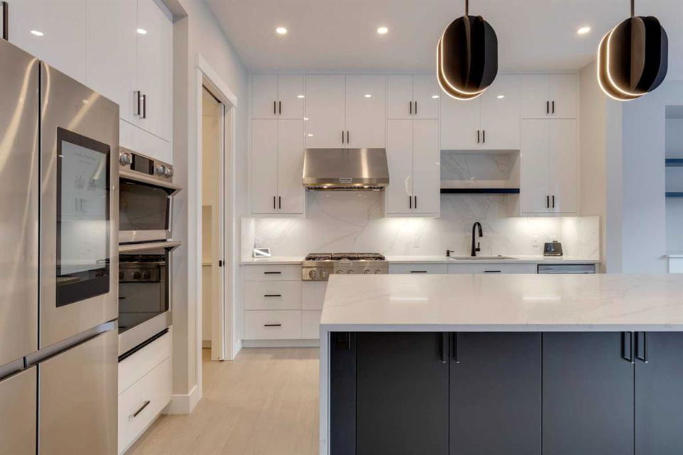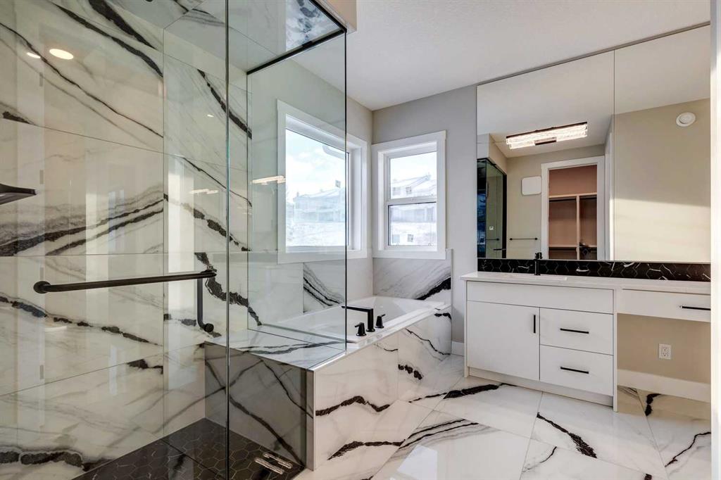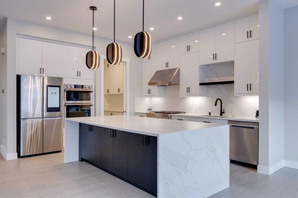 Hamptons – 61 Hampstead Mews NW: Fantastic opportunity to own a brand new Saffron model built by Shane Homes in Enclave at the Hamptons in the established neighbourhood of Hamptons. This fully developed home features over 4,400 sq ft of development, 4 + 1 bedrooms, 4.5 bathrooms, an attached double-car heated garage, and central air conditioning + many more upgrades. This home features a spacious main floor with hardwood floors throughout; a kitchen with a walk-through butler’s pantry, stainless steel appliances including refrigerator, built-in microwave combination wall oven, dishwasher, gas cooktop, and hood fan, a central island with waterfall countertops and seating for 5; a breakfast nook with built-in storage including lower cabinets, shelves and beverage fridge; a living room with southwest facing windows and tiled, electric fireplace with floating wood hearth; a lifestyle room which can be used as a formal dining room or den and a 2 piece powder room with built-in vanity. The upper level features a large primary bedroom with walk-in closet, a 6 pc ensuite including dual sinks with vanity table, soaker tub, tiled glass shower with steam shower system and toilet with separate door; 2 additional bedrooms separated with a 4 piece Jack and Jill bathroom, one of which has a walk-in closet; a 4th bedroom which includes a spacious walk-in closet and 3 piece ensuite with shower; a vaulted bonus room and a laundry room with built-in upper cabinets, folding counter and sink. The fully developed lower level includes a family room; a rec room with a built-in wet bar including beverage fridge, dishwasher, and microwave; a dedicated exercise room/gym area; a large 5th bedroom with walk-in closet and a 4 piece bathroom. The southwest-facing backyard includes a covered deck and backs onto a green belt with a walking path. This brand-new home built by Shane Homes is completed and is ready for possession in a mature neighbourhood. The sought-after community of Hamptons is close to many amenities including parks, playgrounds, tennis courts, hockey rink, Hamptons Golf Club, and access to Shaganappi Trail and Stoney Trail. Call for more info!