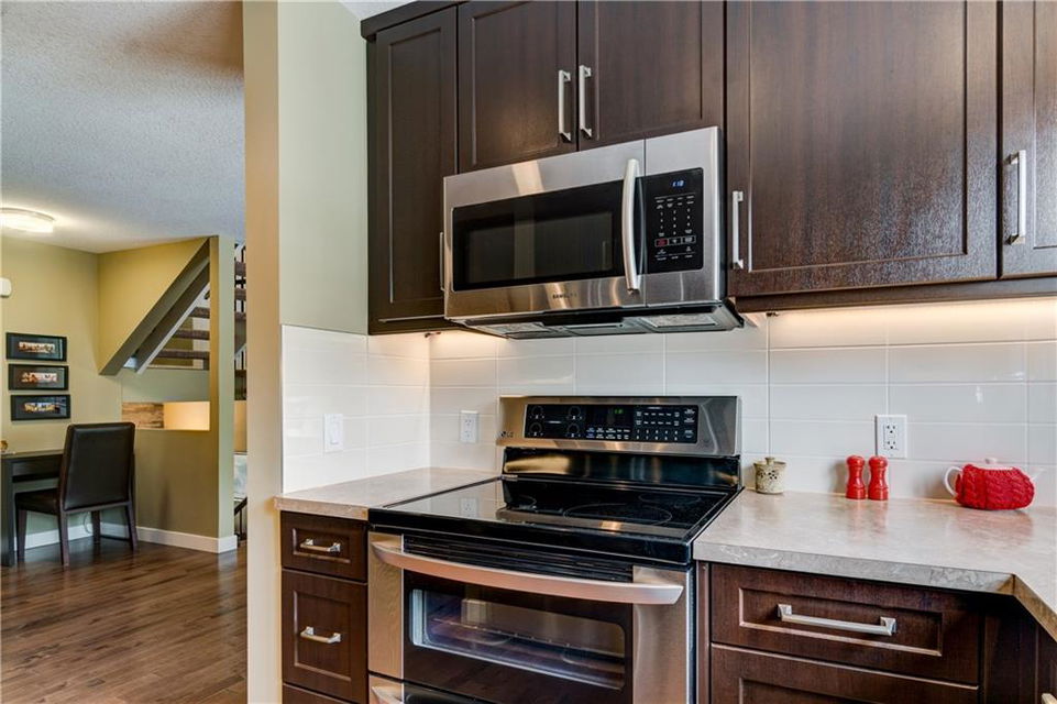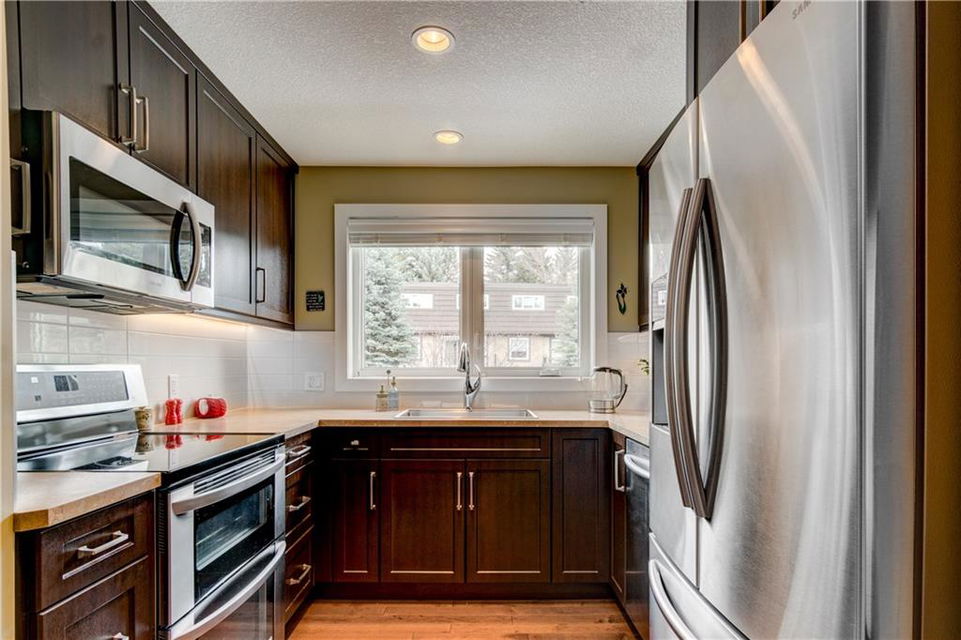 Lakeview – #618, 3130 66 Avenue SW: This 5 level split townhouse in desirable Lakeview with over 2,000 sq ft of development has been FULLY RENOVATED throughout leaving no area untouched including windows, kitchen, bathrooms & flooring just to list a few. Spacious front entrance leads up to the main floor living room with wood burning fireplace & access to the large south facing patio. Steps up to the the dining room, kitchen with S/S appliances, lots of counter & storage space & 2 pc bathroom. The upper level has the large master bedroom with 3 pc ensuite. Top floor of the home has 2 bedrooms & 4 pc bathroom. Basement has family room, laundry room & ample storage under the stairs & in the laundry room. Single car attached garage is heated & finished with an epoxy floor coating. Condo fees include WATER, SEWER & HEAT. This property is close to schools, shopping, playground, public transit, quick commute to downtown & minutes from North Glenmore park. Call today for more info.