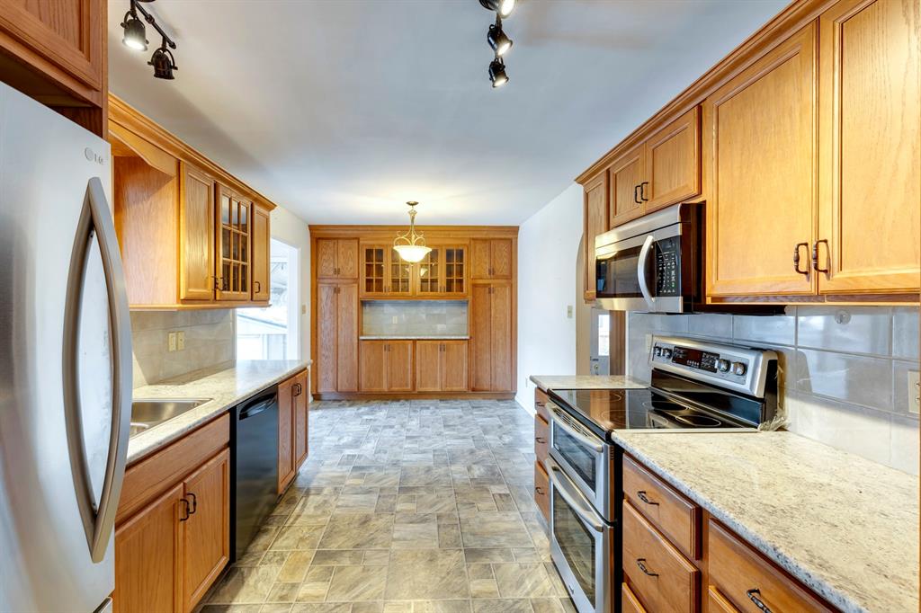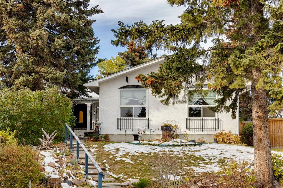 Huntington Hills – 640 Hunterfield Place NW: Don’t miss this rare opportunity to own a 0.25-acre lot in NW Huntington Hills! This original-owner bungalow is located on a quiet cul-de-sac location and situated on a MASSIVE 10,774 sq foot pie-shaped lot. The 1,466 sq ft main floor features a living room with a wood-burning fireplace; formal dining room; updated galley-style kitchen (renovated in 2014) with dining area, built-in cabinets for additional storage, and access to the heated sunroom with views of the expansive northwest-facing backyard; primary bedroom with 2 pc ensuite, 2 additional bedrooms and 4 pc main bathroom. The fully developed 1,095 sq ft lower level features a spacious family room with wood burning fireplace, a 4th bedroom, a den area, a playroom and a large mechanical room with a washer and dryer and lots of room for storage. The huge backyard is a gardener’s dream with a large deck and patio, and mature landscaping. Double detached garage and a gravel pad for additional parking with ample space to build an additional or larger garage. Recent upgrades include: a new hot water tank in 2021 and a furnace in 1996. This family home is located steps away from all major public transport routes, parks, schools, and minutes away from Nose Hill Park, downtown, and Deerfoot Trail. Walk to Centre Street and shopping – Superstore and Beddington Towne Centre. With this square footage and lot size, this property offers endless possibilities and awaits your personal touch – live, renovate or flip!! Call for more info!