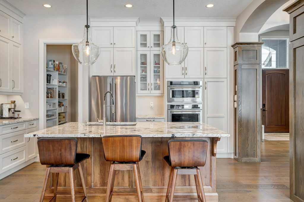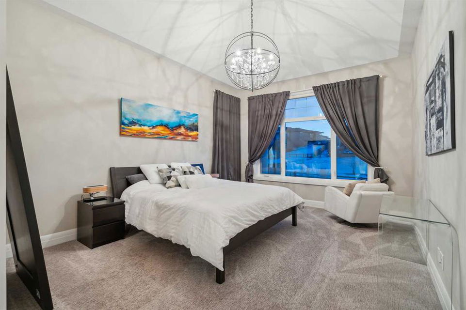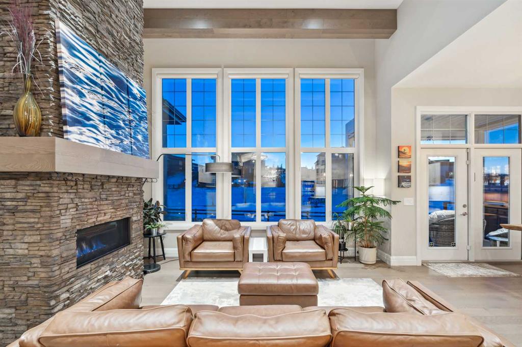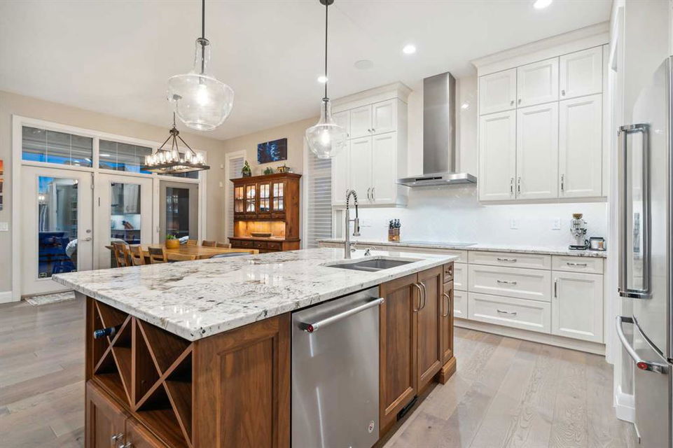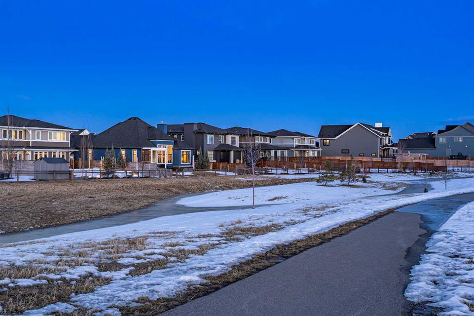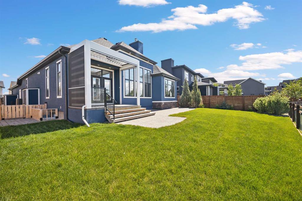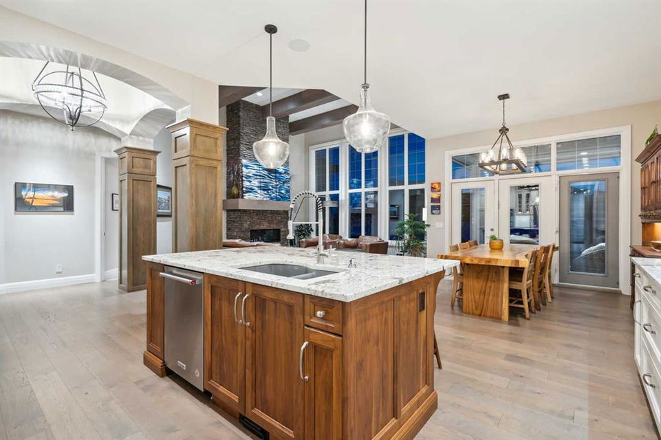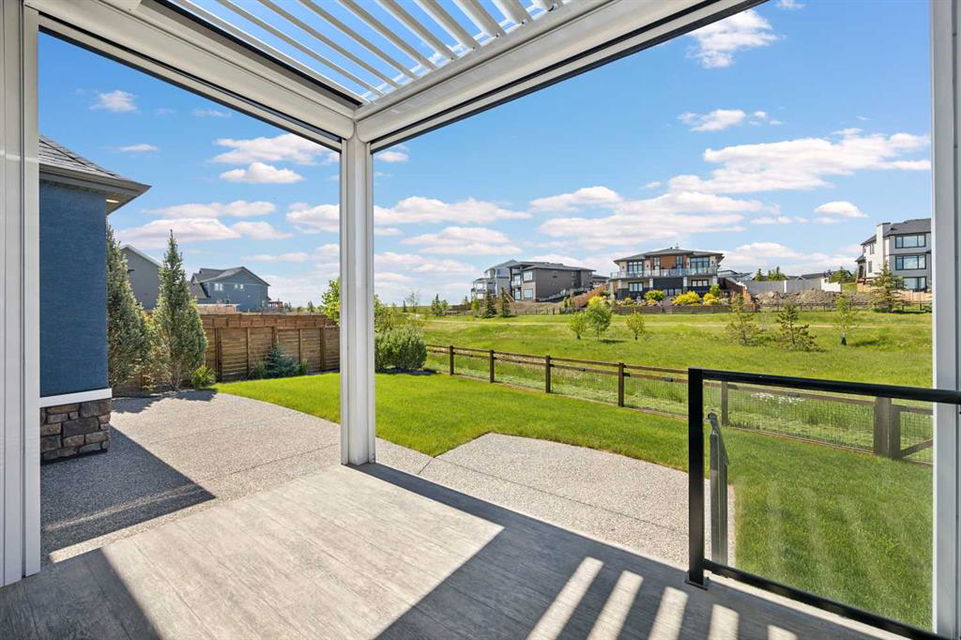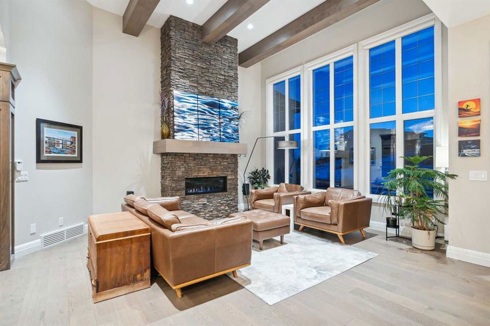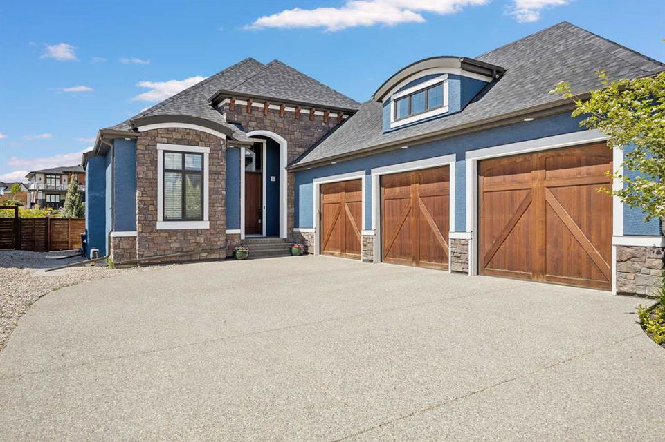 If you are looking for Amazing Stary Nights and Big Sky Days you’ve found just the place! Just on the outskirts of Calgary you’ll find the award winning Lakeside Community of Harmony and this is definitely a place you’ll want to call home. This Elegant Bungalow has everything you’re looking for and is is lovingly appointed for even the most discerning buyers. It is immediately apparent upon entering that this well laid out home is something a cut above the rest while remaining cozy and inviting. The craftsmanship and care is evident from the expansive ceilings throughout (10′ to a lofty 14 feet!) with dropped beams and sawn oak columns, engineered hardwood floors, oversized triple pane windows and doors, storage built-ins, full height cabinetry and so much more. Come on in through the stunning foyer to the beautiful chef inspired kitchen with walnut island and graceful white cabinetry that provides ample storage and elegance flowing into the living and dining area to create a space for the entire family to chill, laugh and enjoy. The main floor setup features a spa like ensuite and primary suite that is private, expansive and bathed in West sunshine. Don’t forget to check out the amazing walk-in closet as the built-in organizers even light up your collection! The ensuite is almost too good to be true with an inviting soaker tub, double sink vanity and oversized shower with bench seat. Take your pick; use the front room as a quiet office or if you need another bedroom on this level that works too. While the beauty of this house is catching your eye don’t miss out on the amazingly functional design at its core. From the Triple Garage you’ll enter a spacious mudroom complete with storage and built-in benches, a laundry room that has more hidden gems than you can handle and pantry complete with full height storage and flow through access to the kitchen. Don’t forget this triple side drive garage has ample storage and shop area to baby your baby as well! On the lower level you will be pleasantly surprised by the sit-up wet bar and wine room, along with a Theatre room and expansive Rec Room as entertaining and gaming here takes on a life of its own. The Theatre Room doubles as a cozy Library or leave the barn doors open and have a playoff Hockey party! Need some more bedrooms? Well you have them in spades as the lower level has 2 massive bedrooms complete with designer closets and an oversized bathroom to share. Situated backing onto the greenbelt pathway you will love going for walks or chatting with the wonderful neighbours who all take so much pride in this wonderful neighbourhood. The deck is full enclosed with screen shades and louvred roof to keep warm and dry. It is evident when you finally get to check out all the community amenities that you are home! Speaking about those… Clubhouse, Lake, Beach, Golf, Playgrounds, Parks, you absolutely have to check it all out as Harmony was created to become one of Canadas Best Neighbourhood’s!