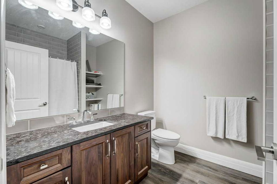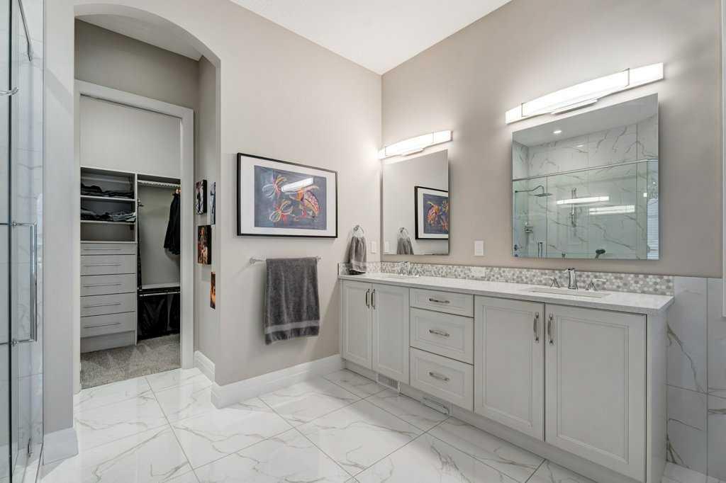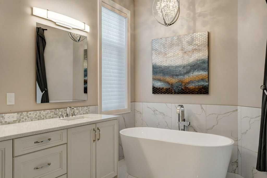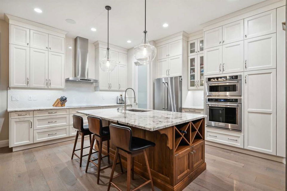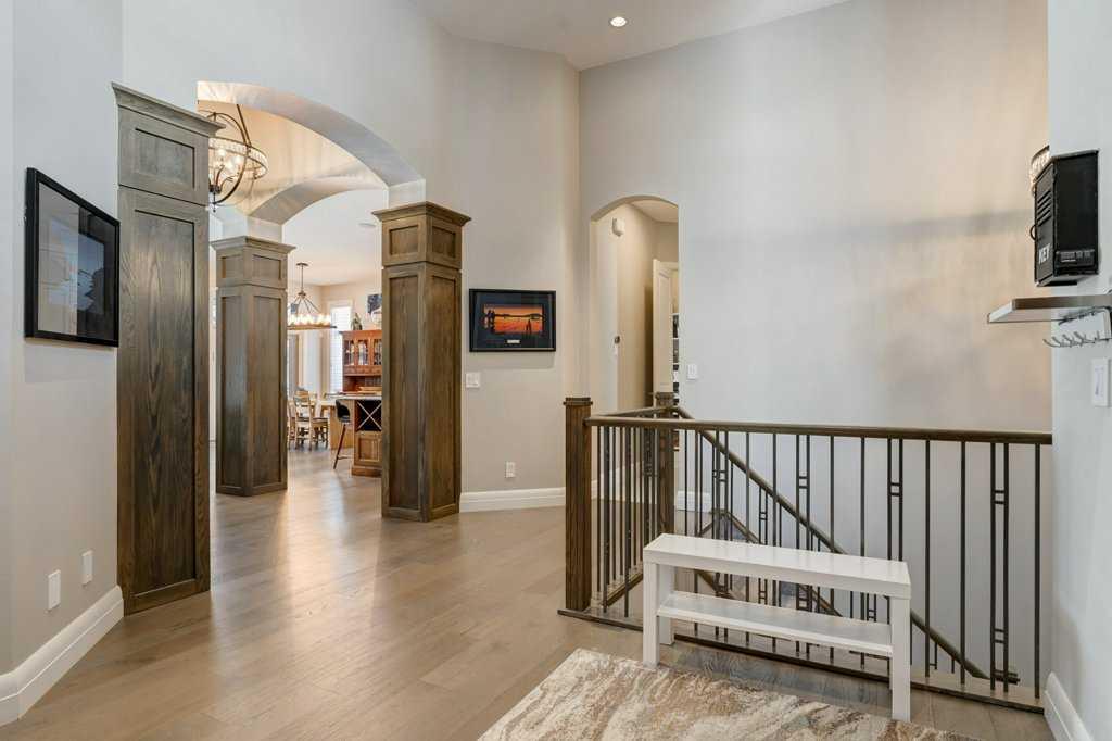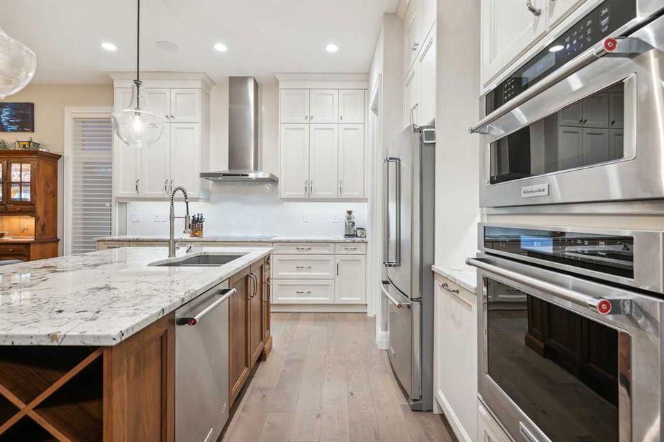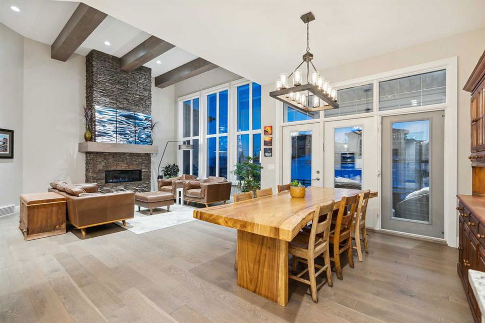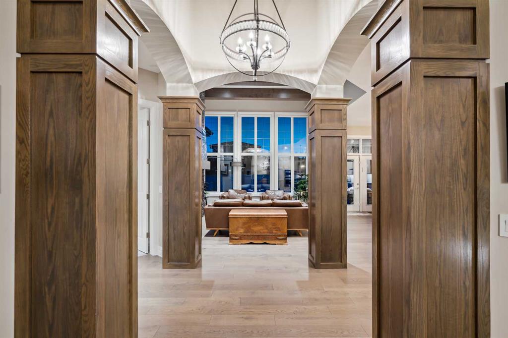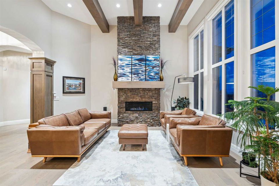 If you are looking for Amazing Stary Nights and Big Sky Days you’ve found just the place! Just on the outskirts of Calgary you’ll find the award winning Lakeside Community of Harmony and this is definitely a place you’ll want to call home. This Elegant Bungalow has everything you’re looking for and is is lovingly appointed for even the most discerning buyers. It is immediately apparent upon entering that this well laid out home is something a cut above the rest while remaining cozy and inviting. The craftsmanship and care is evident from the expansive ceilings throughout (10′ to a lofty 14 feet!) with dropped beams and sawn oak columns, engineered hardwood floors, oversized triple pane windows and doors, storage built-ins, full height cabinetry and so much more. Come on in through the stunning foyer to the beautiful chef inspired kitchen with walnut island and graceful white cabinetry that provides ample storage and elegance flowing into the living and dining area to create a space for the entire family to chill, laugh and enjoy. The main floor setup features a spa like ensuite and primary suite that is private, expansive and bathed in West sunshine. Don’t forget to check out the amazing walk-in closet as the built-in organizers even light up your collection! The ensuite is almost too good to be true with an inviting soaker tub, double sink vanity and oversized shower with bench seat. Take your pick; use the front room as a quiet office or if you need another bedroom on this level that works too. While the beauty of this house is catching your eye don’t miss out on the amazingly functional design at its core. From the Triple Garage you’ll enter a spacious mudroom complete with storage and built-in benches, a laundry room that has more hidden gems than you can handle and pantry complete with full height storage and flow through access to the kitchen. Don’t forget this triple side drive garage has ample storage and shop area to baby your baby as well! On the lower level you will be pleasantly surprised by the sit-up wet bar and wine room, along with a Theatre room and expansive Rec Room as entertaining and gaming here takes on a life of its own. The Theatre Room doubles as a cozy Library or leave the barn doors open and have a playoff Hockey party! Need some more bedrooms? Well you have them in spades as the lower level has 2 massive bedrooms complete with designer closets and an oversized bathroom to share. Situated backing onto the greenbelt pathway you will love going for walks or chatting with the wonderful neighbours who all take so much pride in this wonderful neighbourhood. The deck is full enclosed with screen shades and louvred roof to keep warm and dry. It is evident when you finally get to check out all the community amenities that you are home! Speaking about those… Clubhouse, Lake, Beach, Golf, Playgrounds, Parks, you absolutely have to check it all out as Harmony was created to become one of Canadas Best Neighbourhood’s!