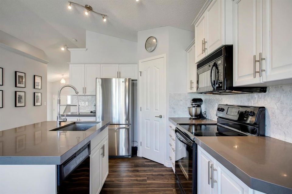 Coventry Hills – 69 Covehaven Gardens NE: Welcome to this renovated 1,112 sq ft bungalow in popular Coventry Hills with an attached double car garage located on a quiet street. The vaulted main floor features a bright kitchen with quartz countertops, marble backsplash and island; breakfast nook with access to the deck; living room with gas fireplace, master bedroom with walk-in closet and access to the 5 pc bathroom; and additional bedroom. The lower level walk-out 945 sq ft basement features a large wet bar with ample seating and beverage fridge, large family room, flex area, bright 3rd bedroom, 3 pc bathroom with a fully-tiled shower; and laundry area. This home will not disappoint. Show well. Tastefully updated and is just steps away from schools, parks, grocery stores, shopping and transport. Call for more info.