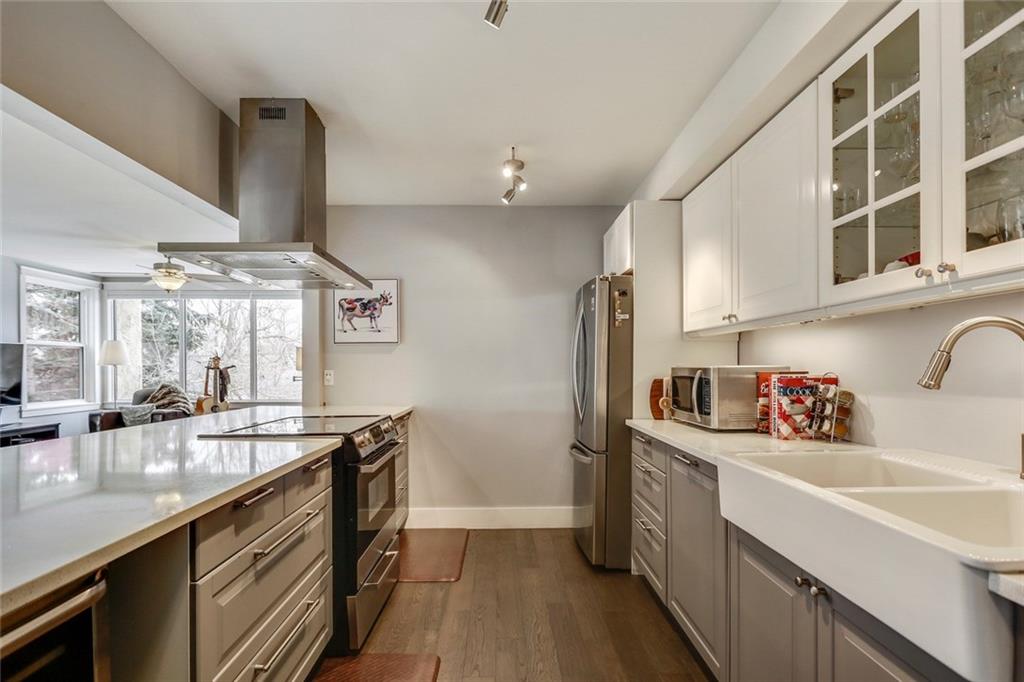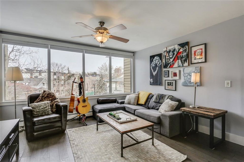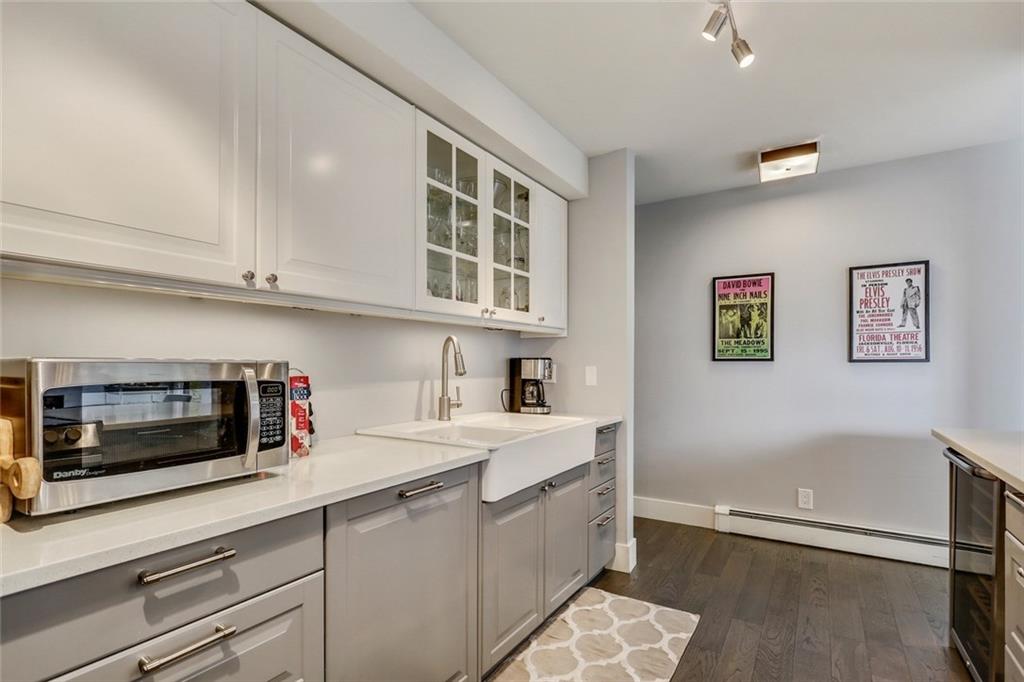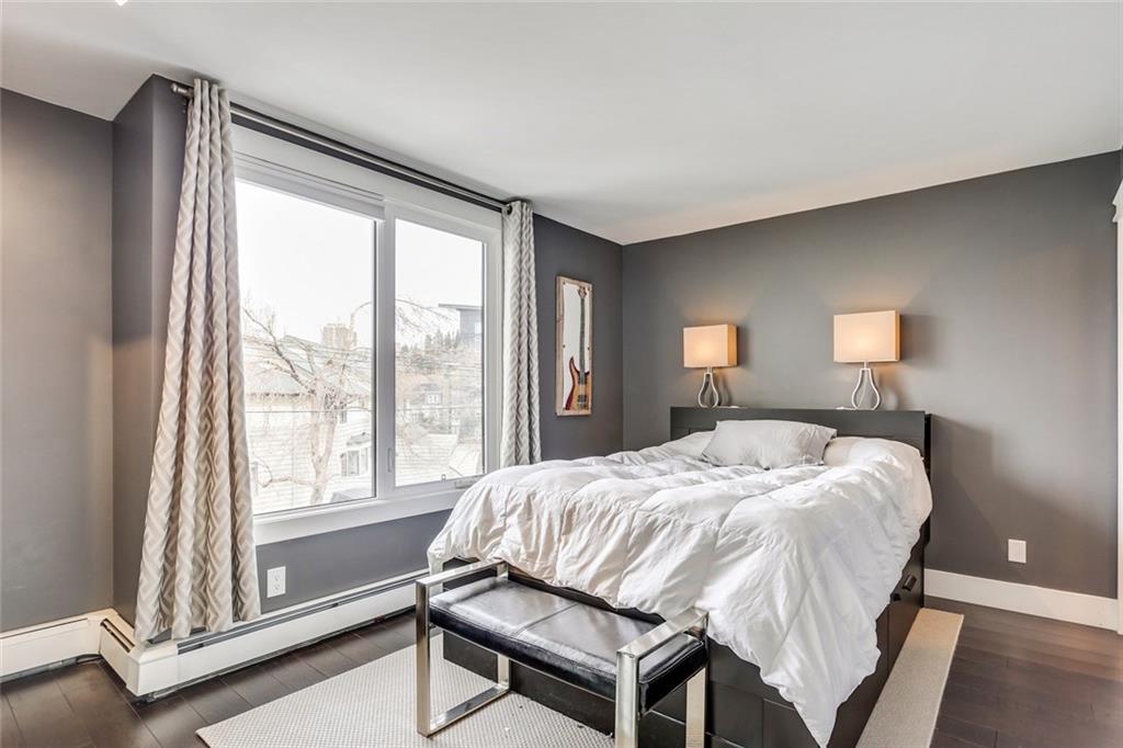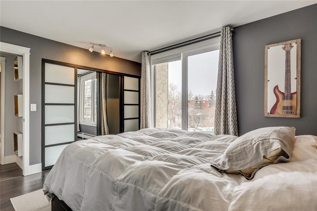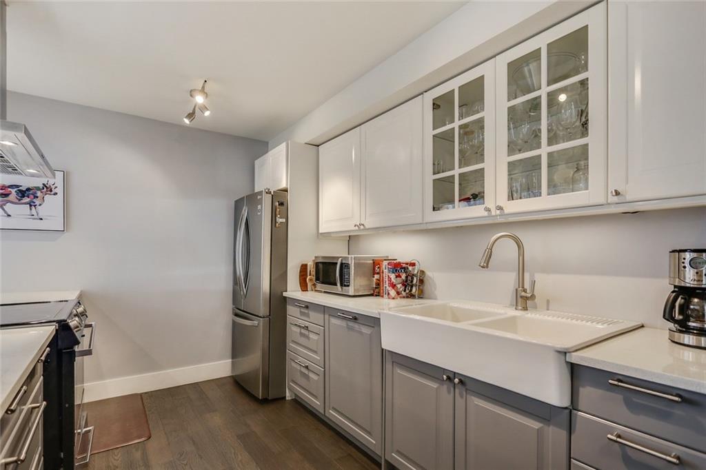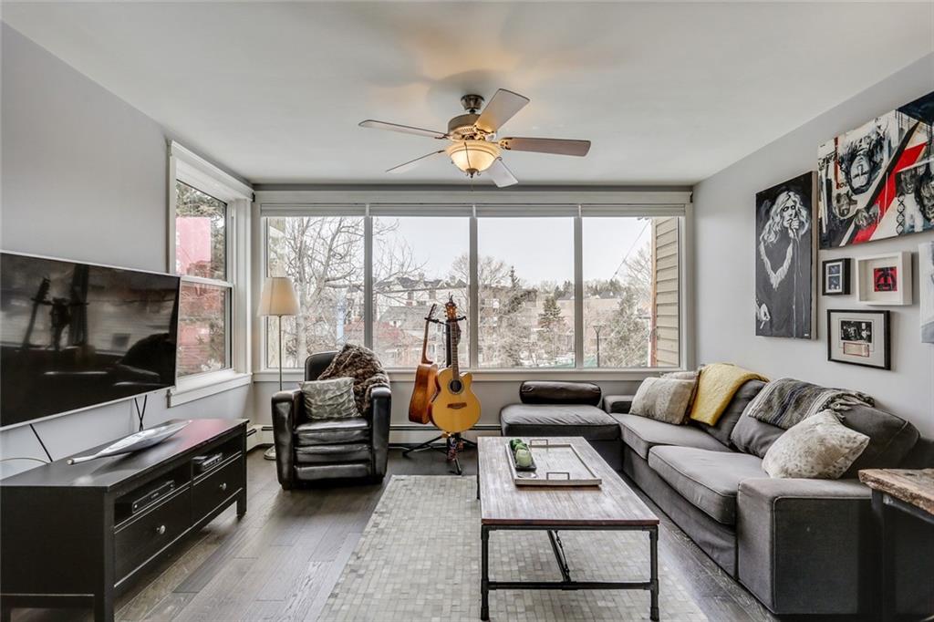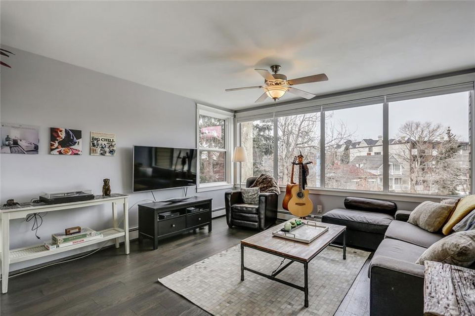 Sunnyside – #7, 906 4 Avenue NW: Welcome to this beautifully renovated 2 bedroom, 1.5 bath 3rd floor unit in Sunbow Terrace. This 1,051 sqft unit features a bright, open living room with lots of windows and natural light, dining room with gas fireplace and sliding doors to SE facing balcony. Modern kitchen with quartz countertops, eating bar and stainless steel appliances including a wine fridge. Located in Sunnyside steps away from all the trendy shops & restaurants in Kensington, C-Train Station & Riley Park. Great opportunity to move into a turn key unit in a great location. Call today for more info!