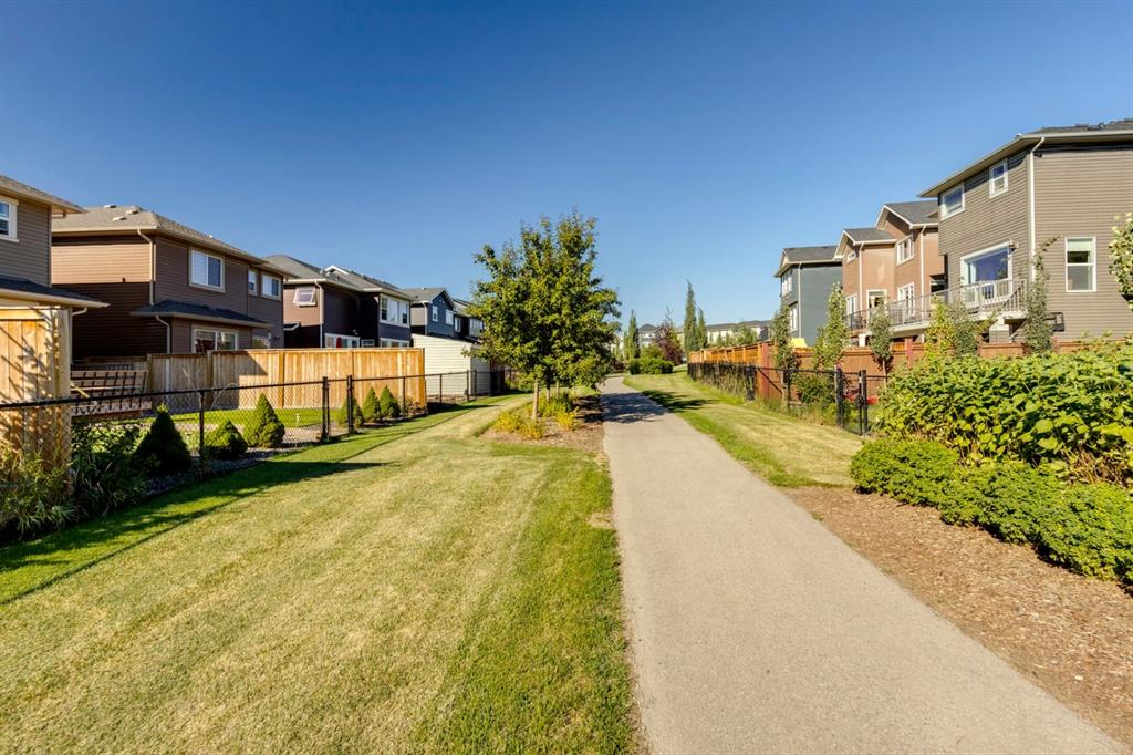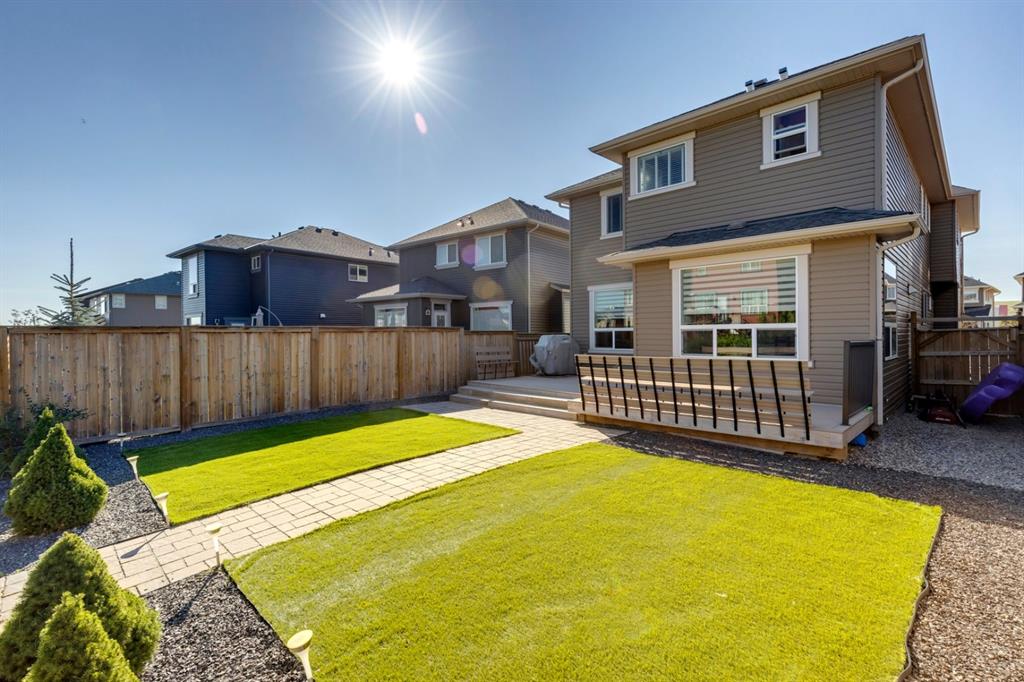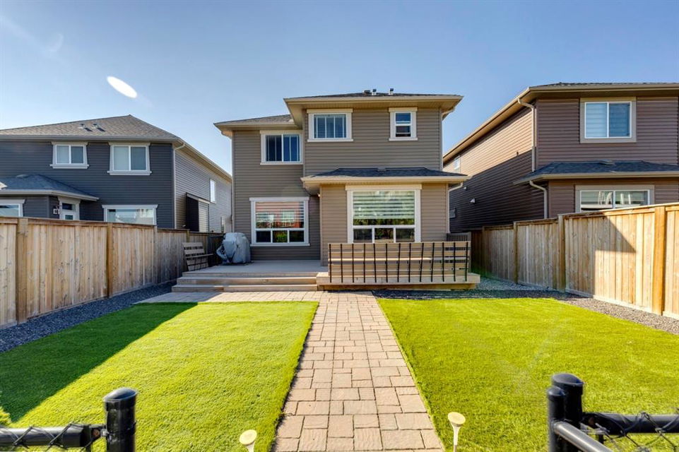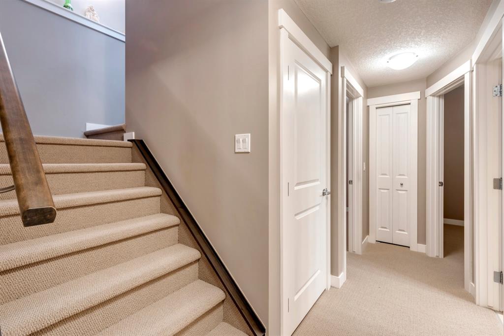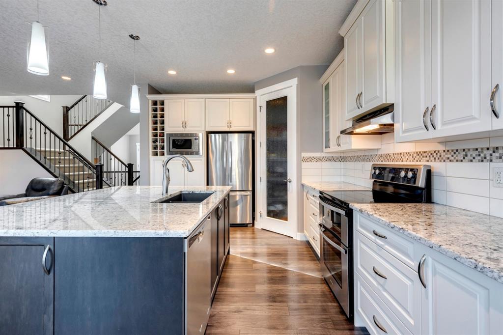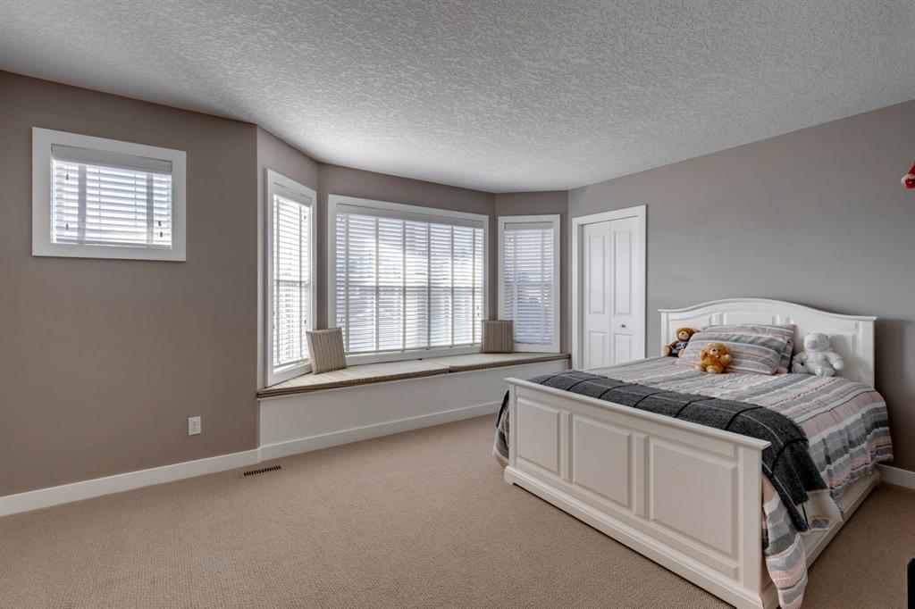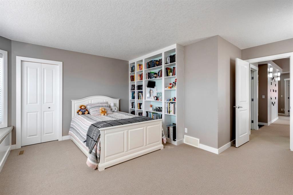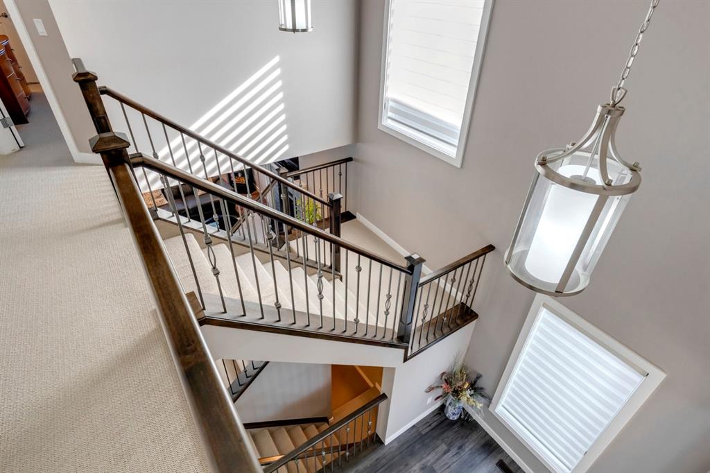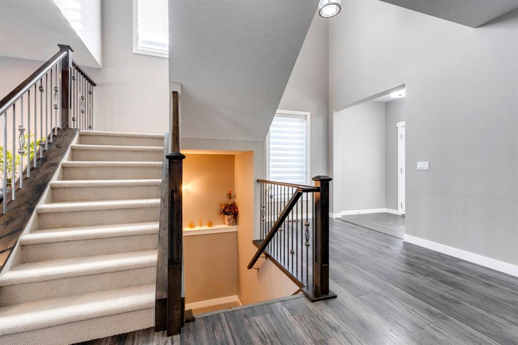 Nolan Hill – 71 Nolancliff Crescent NW: Welcome to this meticulously maintained fully-developed 3 + 2 bedroom estate home built by Shane Homes. This home has over 3,400 sq ft of total development situated on a conventional lot backing onto a walking path in Nolan Hill. The bright main floor features a spacious foyer that is open to above; kitchen with two-tone cabinets, stainless steel appliances, corner pantry, granite countertops, and island with seating for 3 and a large breakfast nook with access to the backyard; living room with gas fireplace; den with dual pocket doors; 2 pc powder room and laundry room. The upper level features a large primary bedroom with 5 pc ensuite with granite countertops, dual sinks, soaker tub, separate shower, and vanity; 2 additional bedrooms both with walk-in closets, one with built-in desk, shelves, & window seat with storage; bonus room with rough-in for future wet bar; 4 pc main bathroom. The builder-developed lower level features a large family room; rec room or games area, 2 additional bedrooms, and 4 pc bathroom. The low-maintenance yard includes a double car garage, composite deck with turf, and quick access to the walking path behind the home. This home shows 10/10 & pride of ownership is evident. The homeowners hand-selected many builder upgrades during the design process including larger garage & foyer, executive kitchen package + much more. Located in Nolan Hill close to green space, playgrounds, shops, eateries, and close to many major roads. A must-see! You won’t be disappointed. Call for more info!