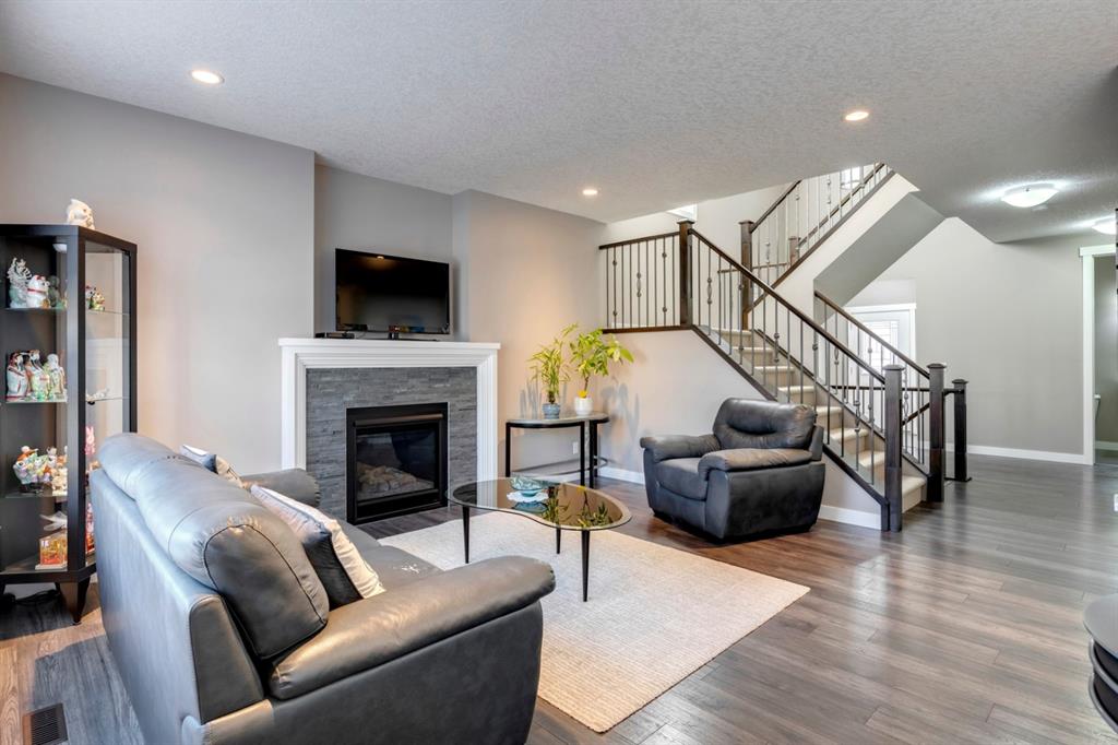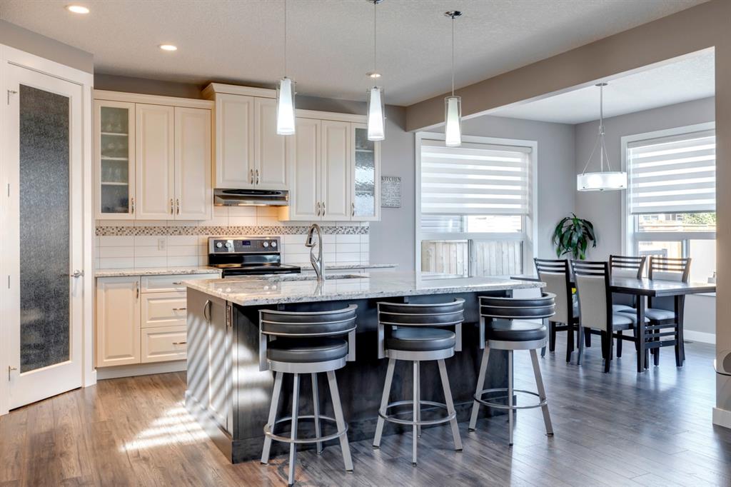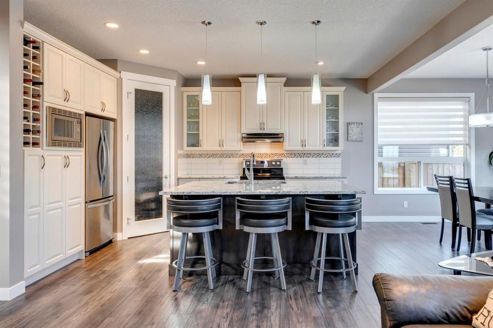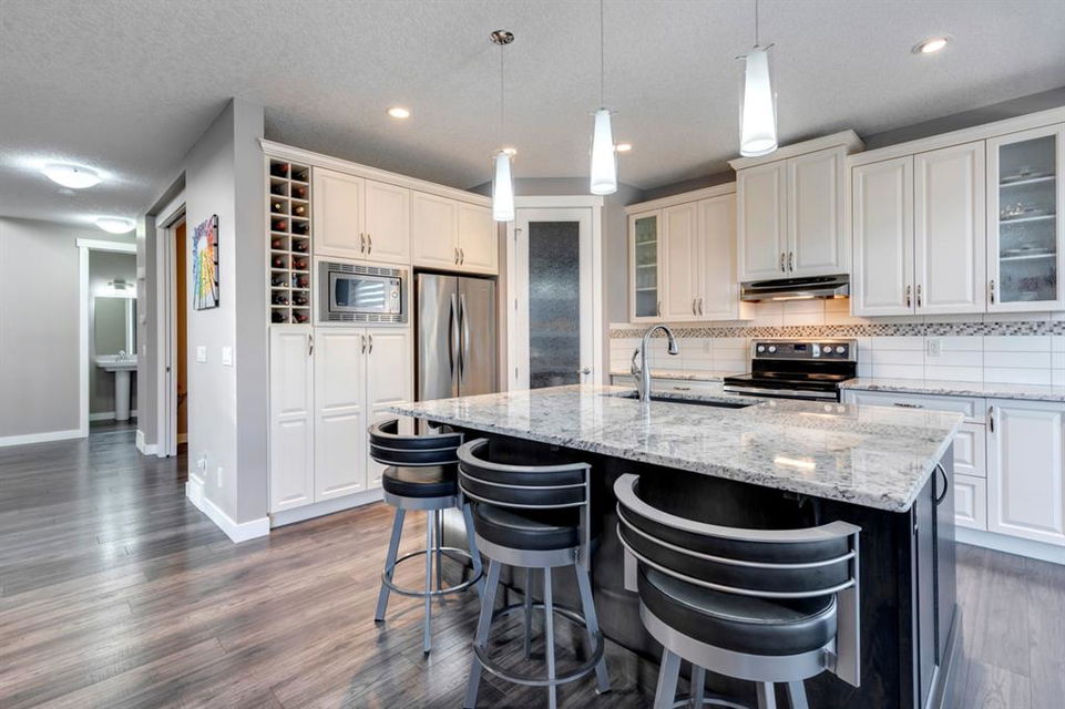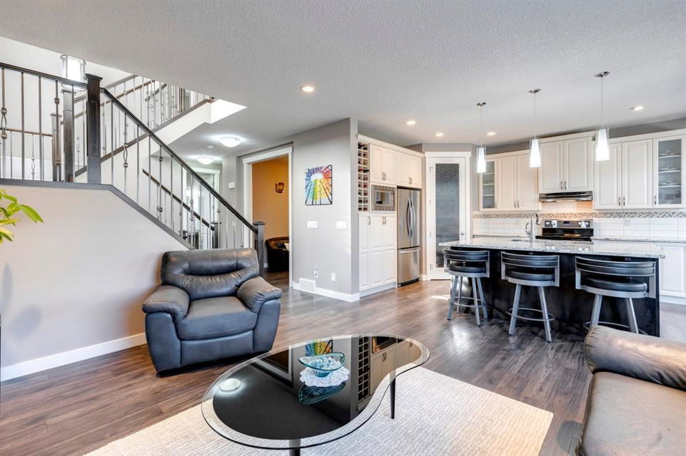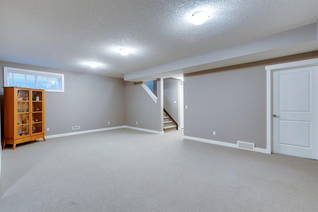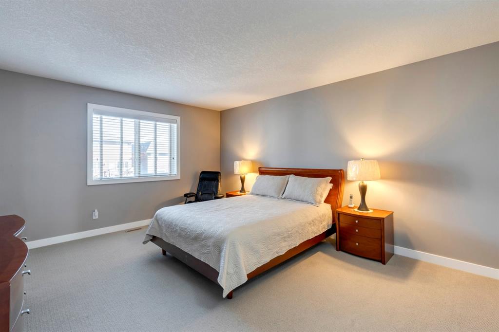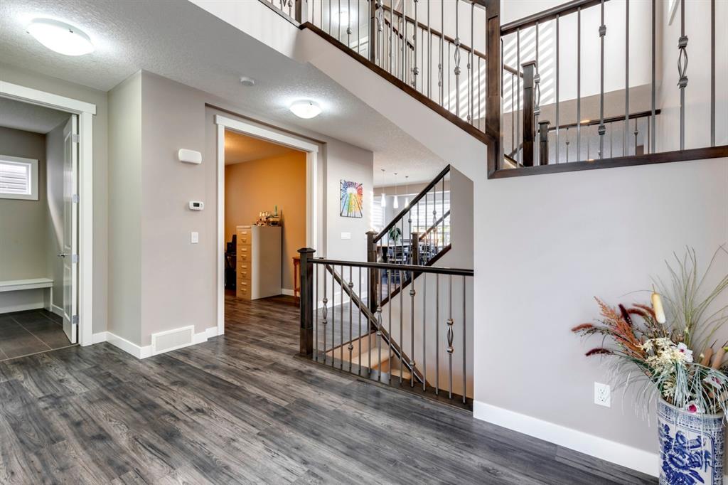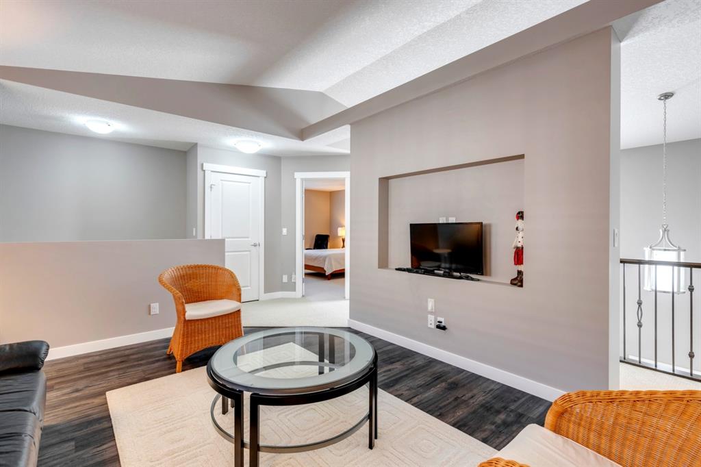 Nolan Hill – 71 Nolancliff Crescent NW: Welcome to this meticulously maintained fully-developed 3 + 2 bedroom estate home built by Shane Homes. This home has over 3,400 sq ft of total development situated on a conventional lot backing onto a walking path in Nolan Hill. The bright main floor features a spacious foyer that is open to above; kitchen with two-tone cabinets, stainless steel appliances, corner pantry, granite countertops, and island with seating for 3 and a large breakfast nook with access to the backyard; living room with gas fireplace; den with dual pocket doors; 2 pc powder room and laundry room. The upper level features a large primary bedroom with 5 pc ensuite with granite countertops, dual sinks, soaker tub, separate shower, and vanity; 2 additional bedrooms both with walk-in closets, one with built-in desk, shelves, & window seat with storage; bonus room with rough-in for future wet bar; 4 pc main bathroom. The builder-developed lower level features a large family room; rec room or games area, 2 additional bedrooms, and 4 pc bathroom. The low-maintenance yard includes a double car garage, composite deck with turf, and quick access to the walking path behind the home. This home shows 10/10 & pride of ownership is evident. The homeowners hand-selected many builder upgrades during the design process including larger garage & foyer, executive kitchen package + much more. Located in Nolan Hill close to green space, playgrounds, shops, eateries, and close to many major roads. A must-see! You won’t be disappointed. Call for more info!