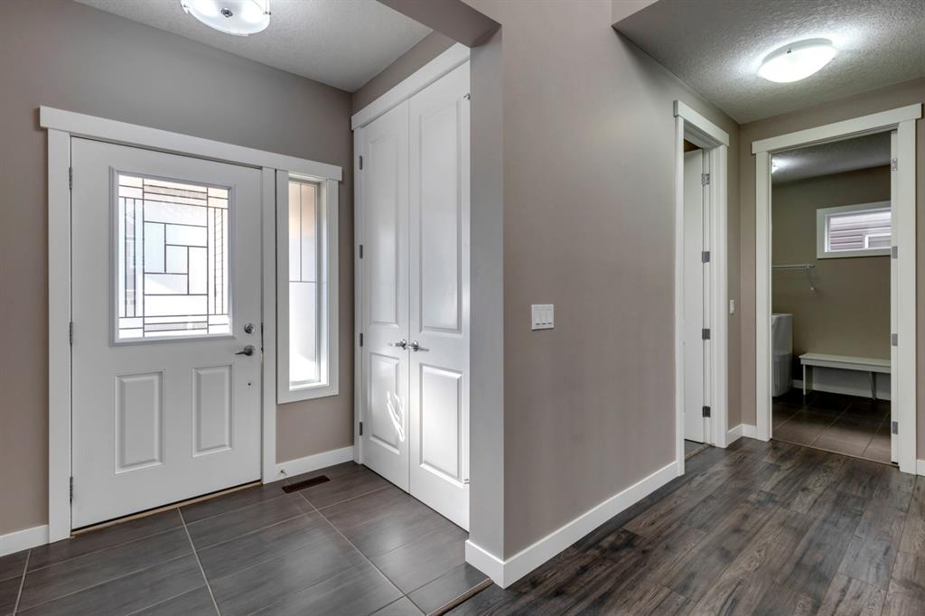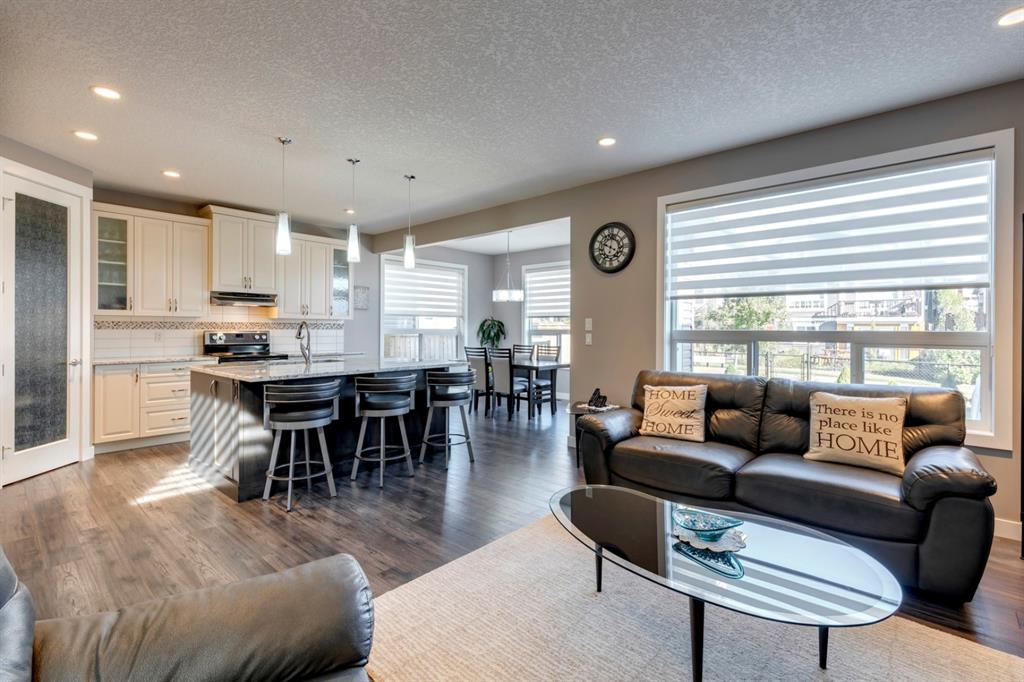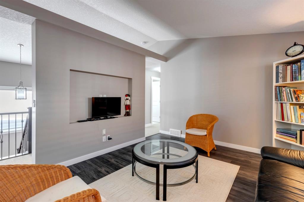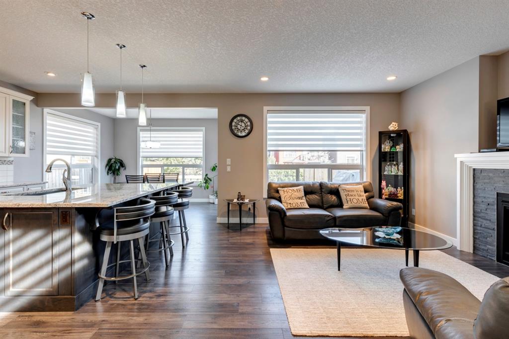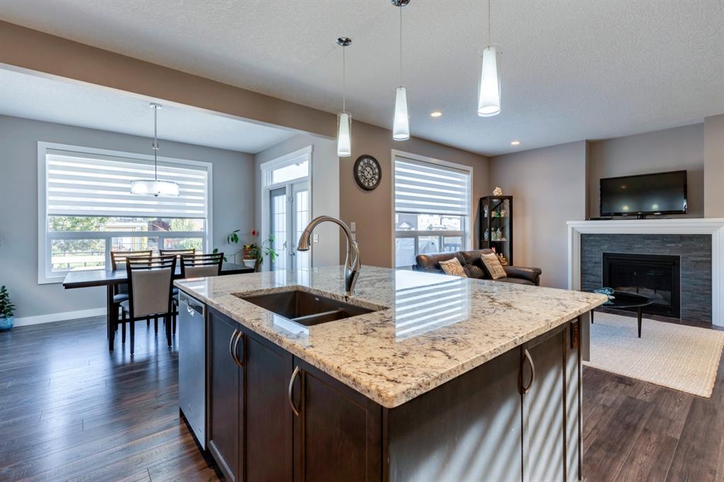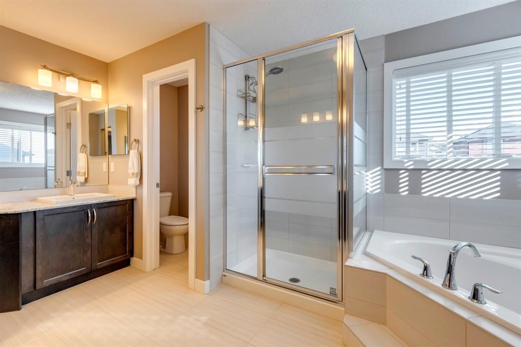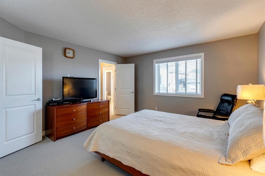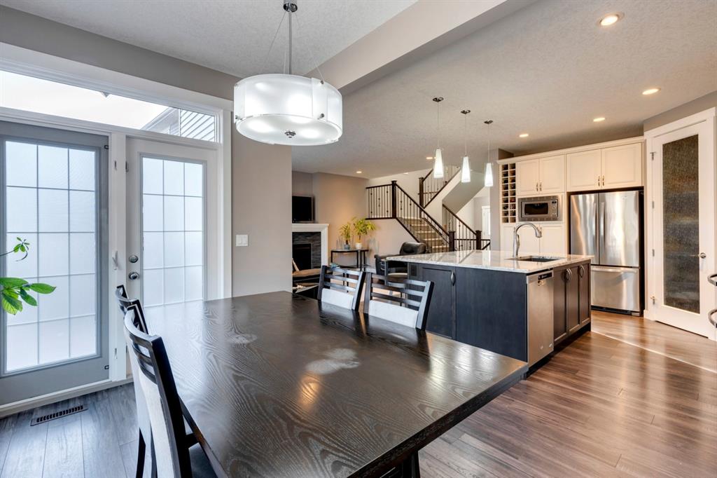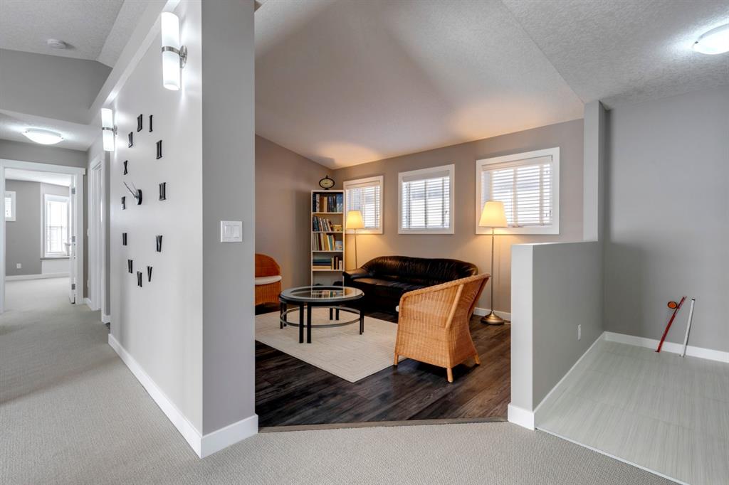 Nolan Hill – 71 Nolancliff Crescent NW: Welcome to this meticulously maintained fully-developed 3 + 2 bedroom estate home built by Shane Homes. This home has over 3,400 sq ft of total development situated on a conventional lot backing onto a walking path in Nolan Hill. The bright main floor features a spacious foyer that is open to above; kitchen with two-tone cabinets, stainless steel appliances, corner pantry, granite countertops, and island with seating for 3 and a large breakfast nook with access to the backyard; living room with gas fireplace; den with dual pocket doors; 2 pc powder room and laundry room. The upper level features a large primary bedroom with 5 pc ensuite with granite countertops, dual sinks, soaker tub, separate shower, and vanity; 2 additional bedrooms both with walk-in closets, one with built-in desk, shelves, & window seat with storage; bonus room with rough-in for future wet bar; 4 pc main bathroom. The builder-developed lower level features a large family room; rec room or games area, 2 additional bedrooms, and 4 pc bathroom. The low-maintenance yard includes a double car garage, composite deck with turf, and quick access to the walking path behind the home. This home shows 10/10 & pride of ownership is evident. The homeowners hand-selected many builder upgrades during the design process including larger garage & foyer, executive kitchen package + much more. Located in Nolan Hill close to green space, playgrounds, shops, eateries, and close to many major roads. A must-see! You won’t be disappointed. Call for more info!