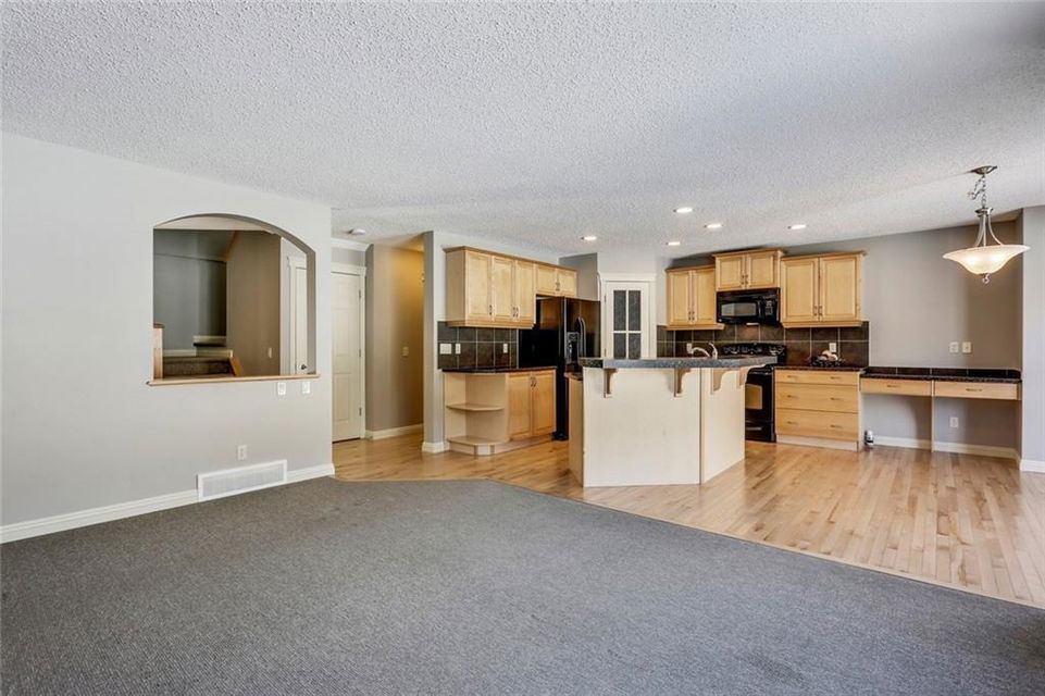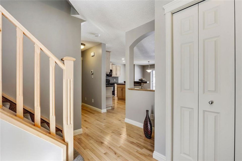 Sunlight streams in through large windows all throughout this clean, freshly painted Jayman MasterBuilt home. The main level is cheerful and inviting with maple flooring and cabinetry. A full pantry and an island with an eating bar provide ample prep and storage space, perfect for cooking large meals. Access to the deck from the dining area is great for grilling and entertaining. A credenza here is a perfect spot to set up the home office. The spacious living room features a fireplace to relax by in the evenings. Upstairs, a unique layout has a split staircase leading either to the sun-drenched bonus room or the bedrooms. A well appointed master includes a large ensuite complete with a separate shower and soaker tub, as well as a hidden walk-in closet with built in shelving. The massive yard backs onto another row of yards, which creates a safe and quiet space to enjoy year round. Located in a circle block off the Main Street, this area is peaceful with green space, parks and pathways just steps away.
