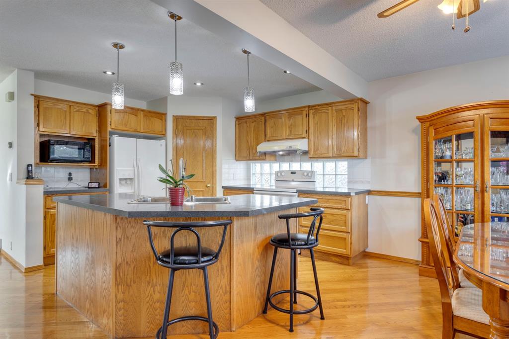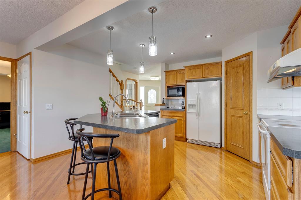 Monterey Park – 7209 California Boulevard NE: Welcome to this well-maintained fully developed 4 + 1 bedroom home. This rare 4 bedroom above grade home has over 3,100 sq ft of total development in popular Monterey Park. The bright main floor features a spacious foyer; kitchen with island with seating for 3; breakfast nook with access to the backyard and back lane; family room with gas fireplace and built-in shelves/storage; living room with south-facing windows and formal dining area; 2 pc powder room and laundry room. The 4-bedroom upper level features a large primary bedroom with space for a den/flex area with built-in desk and shelves, walk-in closet, 4 pc ensuite with jet tub and separate shower with door; 3 additional bedrooms 2 of which have walk-in closets, one with built-in desk and shelves; 4 pc main bathroom. The fully developed lower level features a family room, den/flex area which can be used for a kid’s play area or home office; 5th bedroom with access to the lower level 4 pc bathroom. The yard includes an oversized front double-car garage, deck, and storage shed. Built by Cedarglen Homes, this property shows pride of ownership throughout. Recent upgrades include a new hot water tank in 2016 and a furnace motor in 2018. Located in Monterey Park close to parks, playgrounds, shops, and quick access to many major roads (Stoney Trail, Highway 1, and McKnight Blvd). A must-see! You won’t be disappointed. Call for more info!