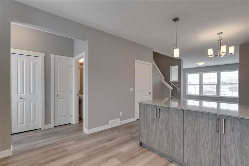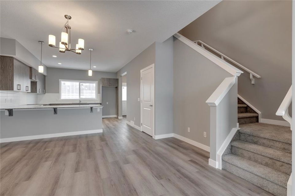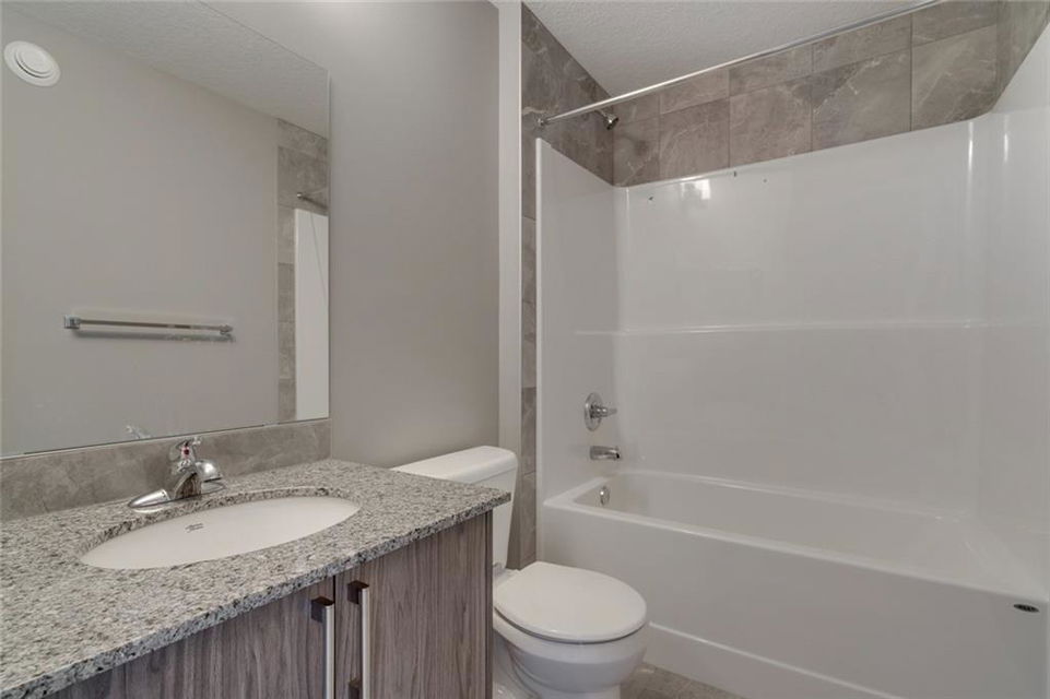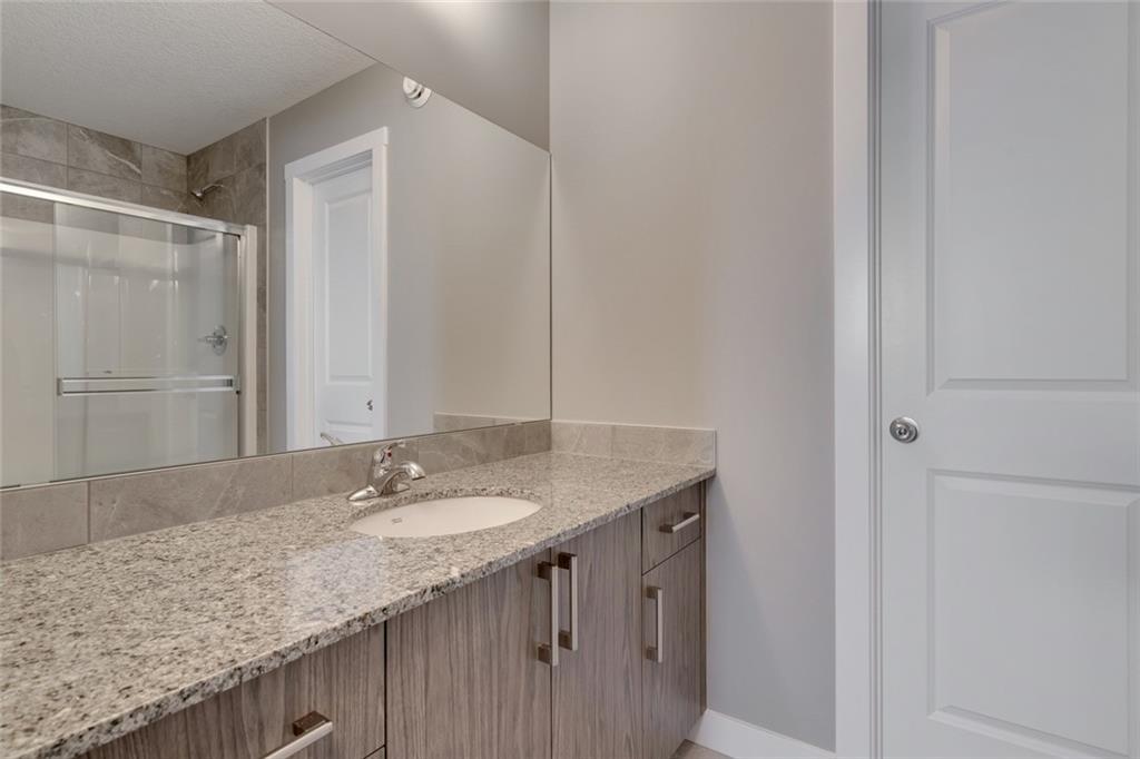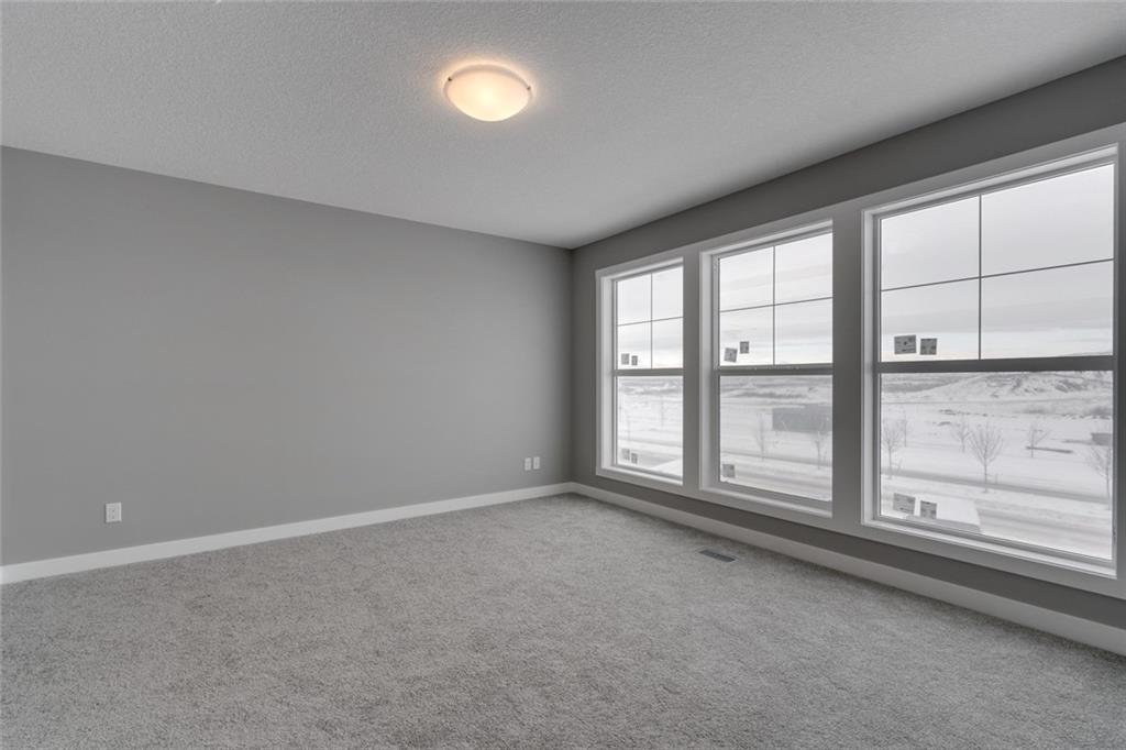 Cornerstone – 762 Cornerstone Boulevard NE: Welcome to this 1,424 sq ft Turin II built by Shane Homes with NO CONDO FEES. The home features 3 bedrooms & 2.5 bathrooms with a double detached garage. The main floor features a U-shaped kitchen with granite countertops, Whirlpool S/S appliances; dining area, living room, and 2 pc bathroom. The second floor has a master bedroom with 3 pc ensuite & walk-in closet; 2 additional bedrooms, 4 pc main bathroom, and stacked laundry. The basement remains unspoiled. This home includes front and rear landscaping, fenced backyard with patio. Located in Cornerstone with plenty of future parks, school spaces and LRT stations; excellent access to the airport, Stoney Trail and Deerfoot. Other Models Available through the showhome (838 Cornerstone Blvd NE). Showhome Hours Mon-Thurs: 2 – 8 PM, Fri: Closed, Sat/Sun/Holiday: 12 – 5 PM. Call for more info!
