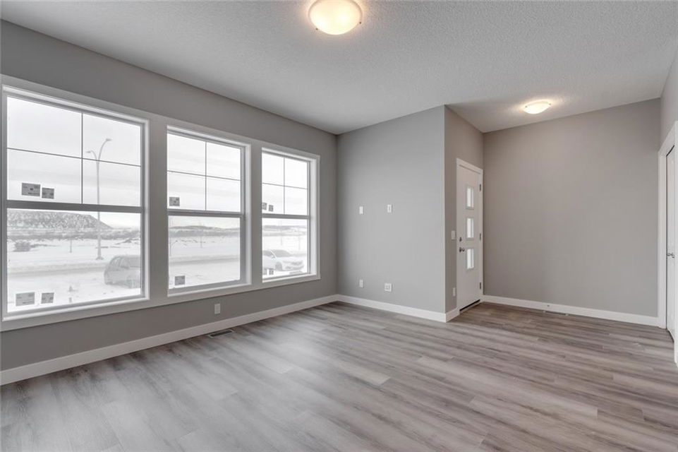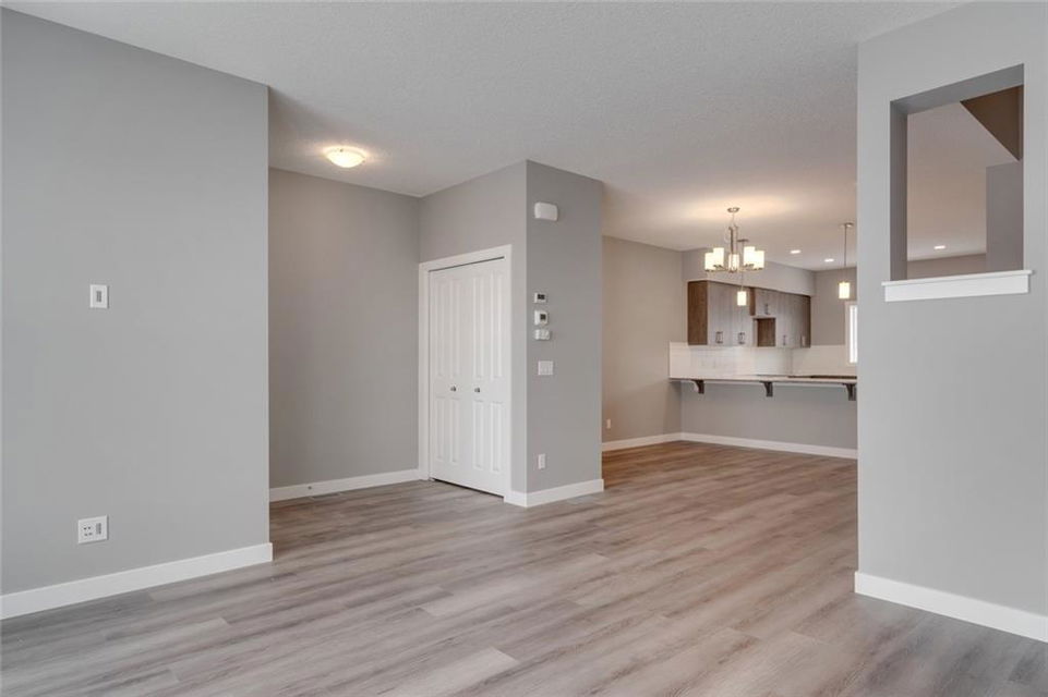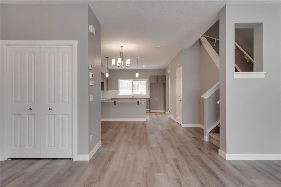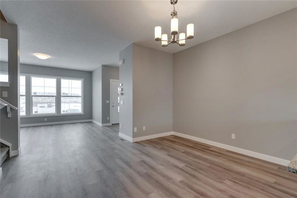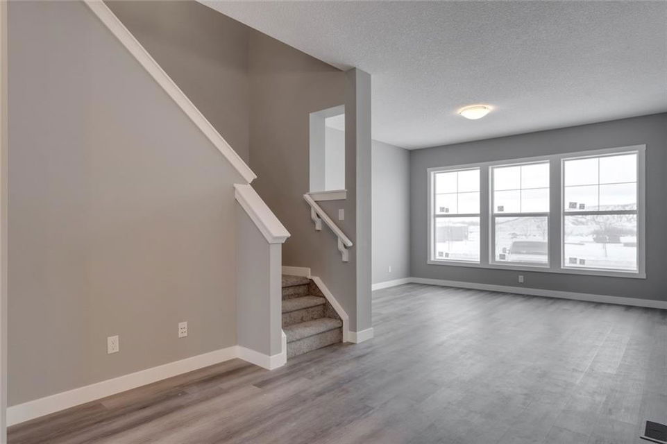 Cornerstone – 762 Cornerstone Boulevard NE: Welcome to this 1,424 sq ft Turin II built by Shane Homes with NO CONDO FEES. The home features 3 bedrooms & 2.5 bathrooms with a double detached garage. The main floor features a U-shaped kitchen with granite countertops, Whirlpool S/S appliances; dining area, living room, and 2 pc bathroom. The second floor has a master bedroom with 3 pc ensuite & walk-in closet; 2 additional bedrooms, 4 pc main bathroom, and stacked laundry. The basement remains unspoiled. This home includes front and rear landscaping, fenced backyard with patio. Located in Cornerstone with plenty of future parks, school spaces and LRT stations; excellent access to the airport, Stoney Trail and Deerfoot. Other Models Available through the showhome (838 Cornerstone Blvd NE). Showhome Hours Mon-Thurs: 2 – 8 PM, Fri: Closed, Sat/Sun/Holiday: 12 – 5 PM. Call for more info!