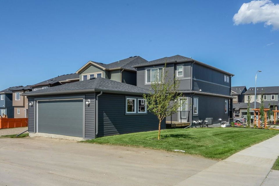 Here is your chance to own a beautifully upgraded, award-winning Pacesetter homes former show home. Ideally located on a corner lot on a quiet street and boasting curb appeal with a front veranda. Inviting open concept main floor offers gorgeous laminate flooring throughout. Front living room features large windows allowingplenty of natural sunlight and a lovely tiled fireplace. The kitchen features elegant quartz counter tops, maple cabinetry, a corner pantry and stainless steel appliances. Upper level has a spacious master suite complete with a walk-in closet and 4 pce ensuite. 2 more good sized bedrooms and a laundry closet finish off the upstairs. Nomore scraping windows as this home is complete with a double detached garage. Evanston is a great place to call home with local community amenities like restaurants and shopping. Just a few minutes from the house, schools and quick access to major routes and airport.Comes complete with all the art work and show home accessories making decorating a breeze. Just bring your furniture and move in. Make this house “Home” today!***Visit Show home for key at 109 Evanston Hill NW to view SATURDAYS AND SUNDAYS 12-5.***