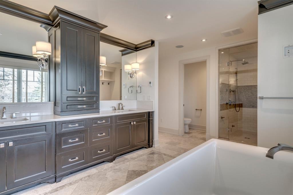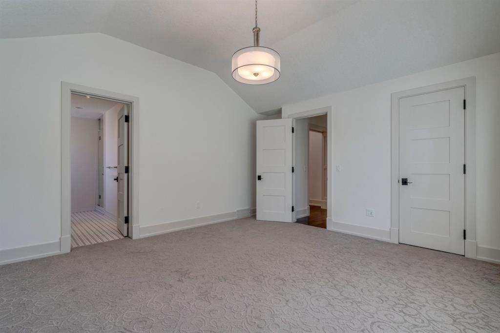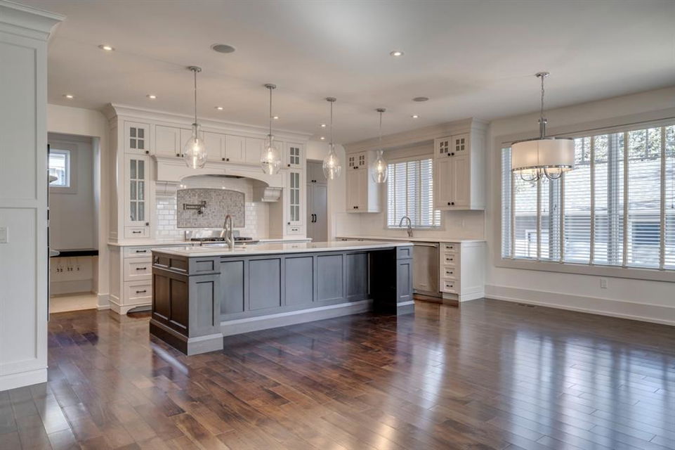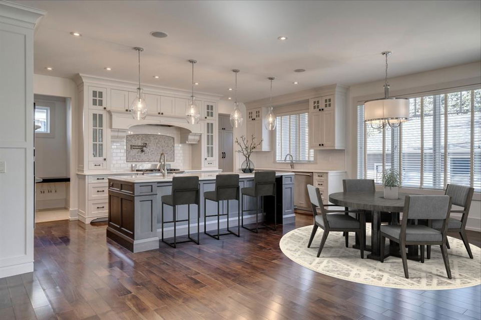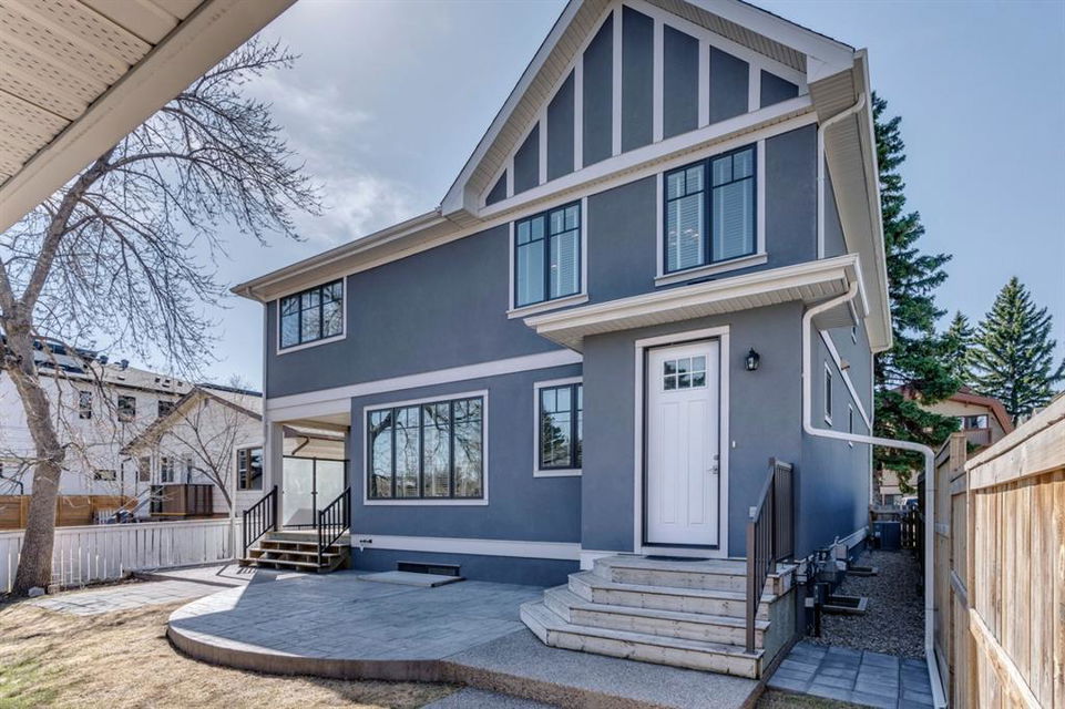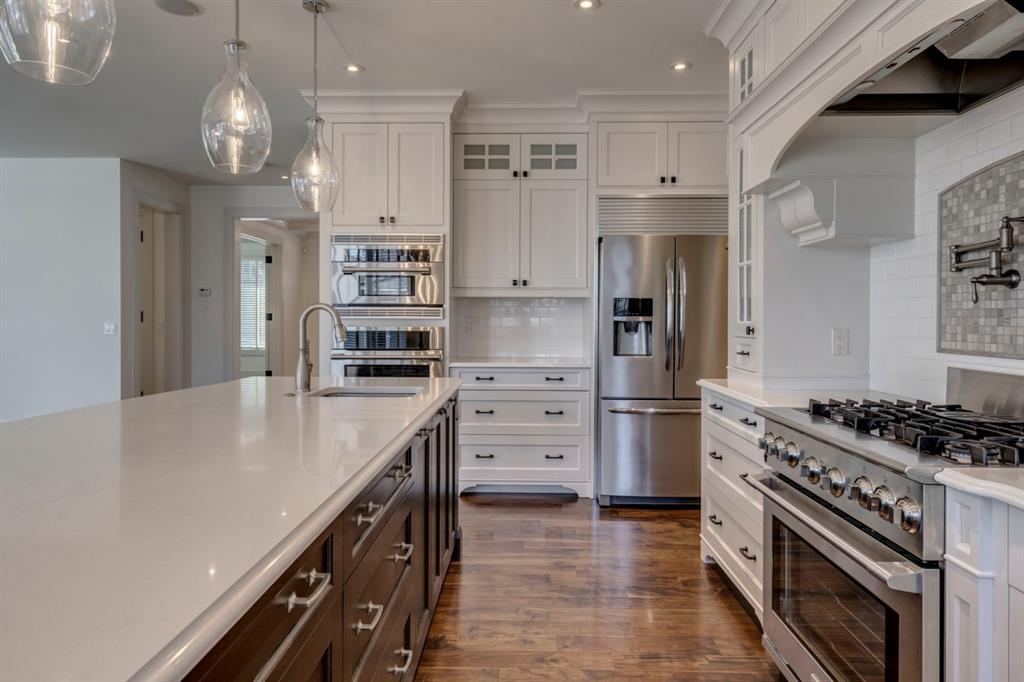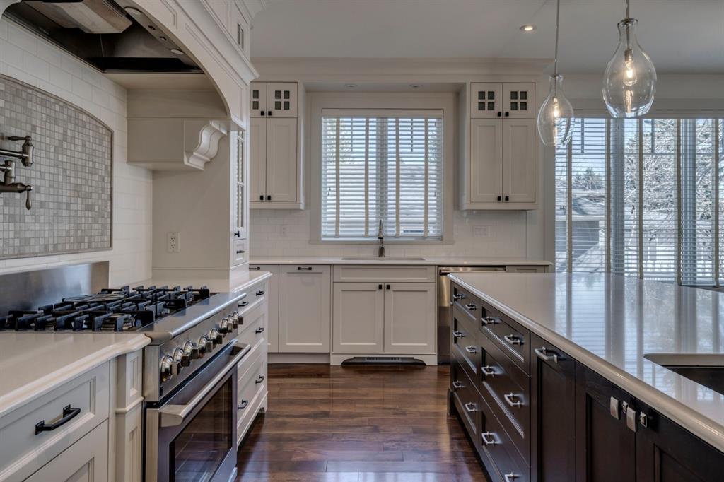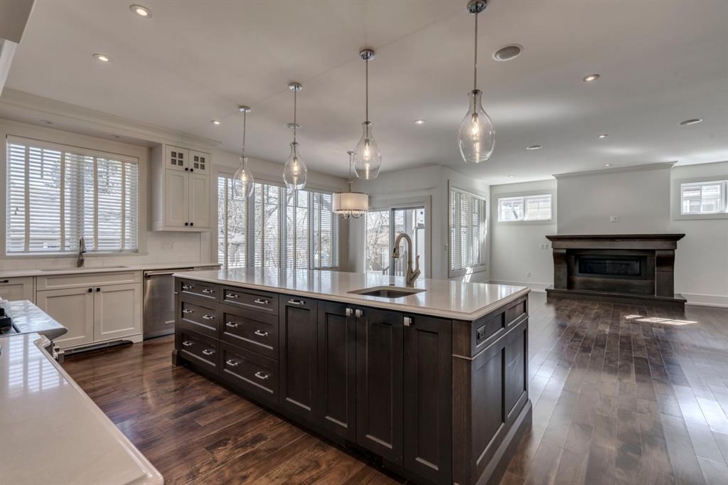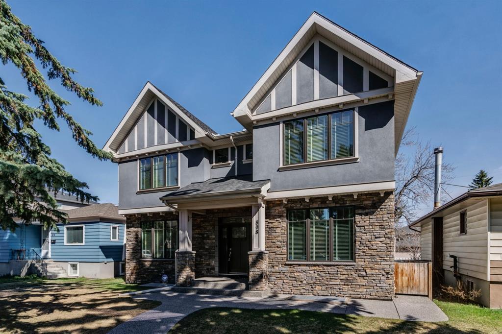 Mount Pleasant – 808 24 Avenue NW: Welcome to this fully developed infill situated on a 46’ x 120’ lot in the desirable community of Mount Pleasant. This executive family home boasts over 4,800 sq ft of total development with 3 large bedrooms above grade with 2 additional on the lower level, 4.5 bathrooms and a triple car garage. The main floor greets you with an expansive foyer and center hall; a large dream kitchen with island with seating for 4, stainless steel appliances with pot filler over the 6-burner gas range, vegetable sink, butler’s pantry with sink, dishwasher and beverage fridge; breakfast nook with backyard access; living room with gas fireplace; large den with plenty of built-ins; formal dining room and 2 pc bathroom. The upper level features a large primary bedroom with vaulted ceilings, fireplace, beverage station, walk-in closet with organizers, 5 pc spa ensuite with soaker tub, large shower, dual vanities and bench seating; 2 additional bedrooms – each with a walk-in closet and ensuite; laundry room with sink and storage. The fully-developed lower level has a spacious rec room with gas fireplace and wet bar complete with a beverage fridge and dishwasher; 2 additional bedrooms, 4 pc bathroom and ample storage throughout. This gorgeous family home has large rooms and attention to detail throughout the home, loads of built-ins, central air conditioning and fully wired for sound. Lovely treed yard, fully landscaped and fenced with a concrete patio. Enjoy inner city living – just steps to Confederation Park, minutes to downtown, SAIT, and U of C. Call now – this home shows pride of ownership, you will not be disappointed.