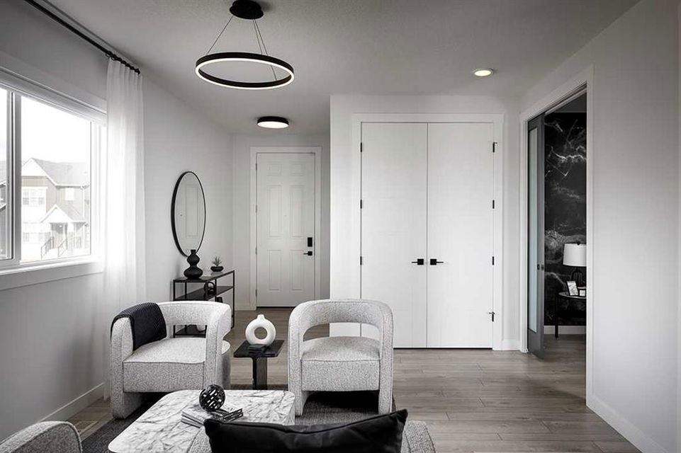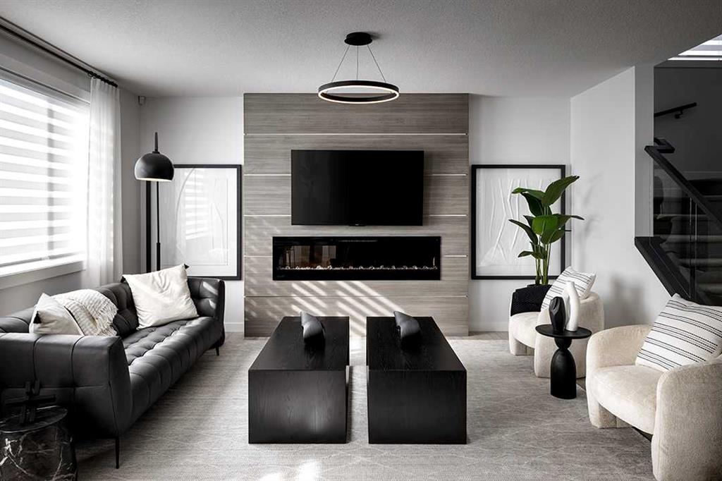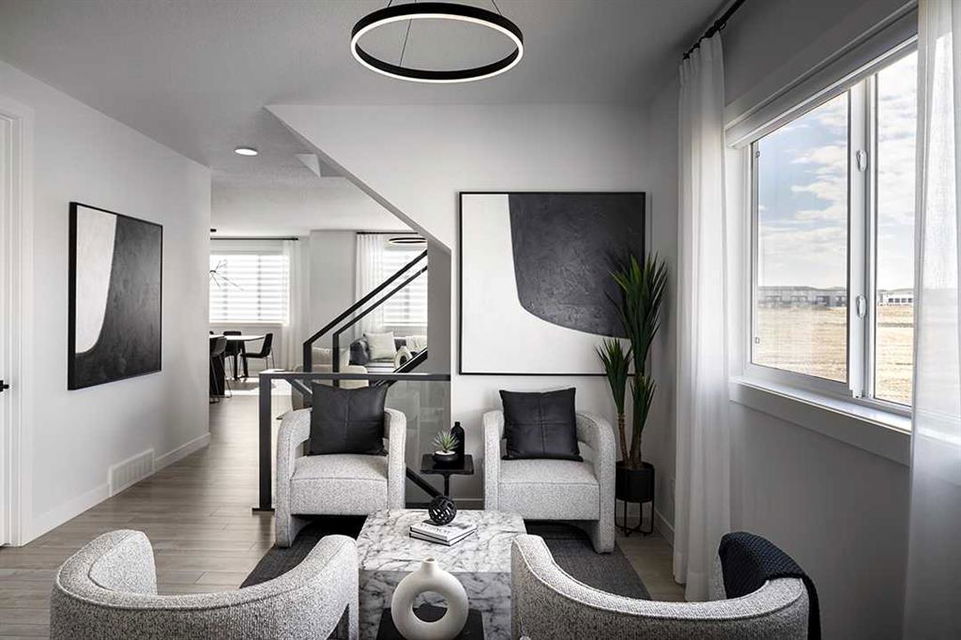 Discover the Saffron II by Shane Homes, a stunning pre-construction opportunity that redefines modern living with style and functionality. This home offers a super kitchen option, spice kitchen option, and potential basement development preparation on a traditional lot, making it as versatile as it is elegant. Step inside to an inviting foyer that opens to a cozy sitting area and a central lifestyle room, creating a warm and welcoming atmosphere. The heart of the home features a super kitchen with a spacious island, built-in appliances, and an optional spice kitchen. The kitchen flows seamlessly into a bright dining nook and a living room with an electric fireplace, perfect for gatherings. Upstairs, a central family room anchors four bedrooms, including a luxurious rear owner’s bedroom with a five-piece ensuite and walk-in closet, a second bedroom with its own ensuite, and a well-designed main bath for the remaining bedrooms. Images are representative and subject to change. Photos are representative.
